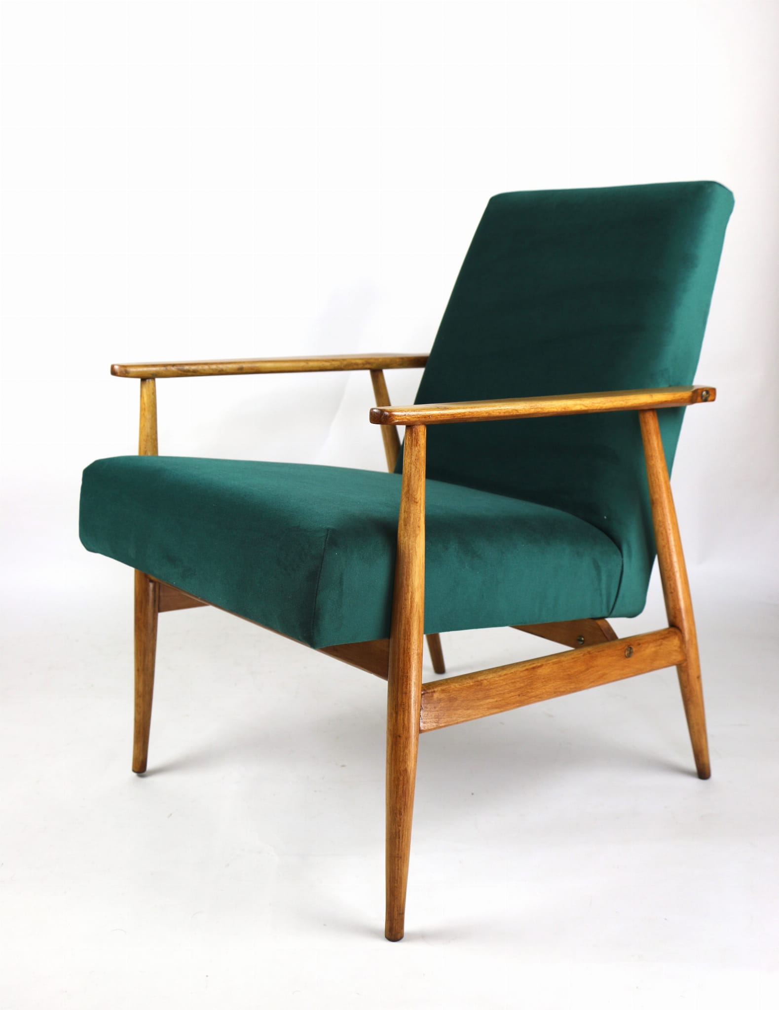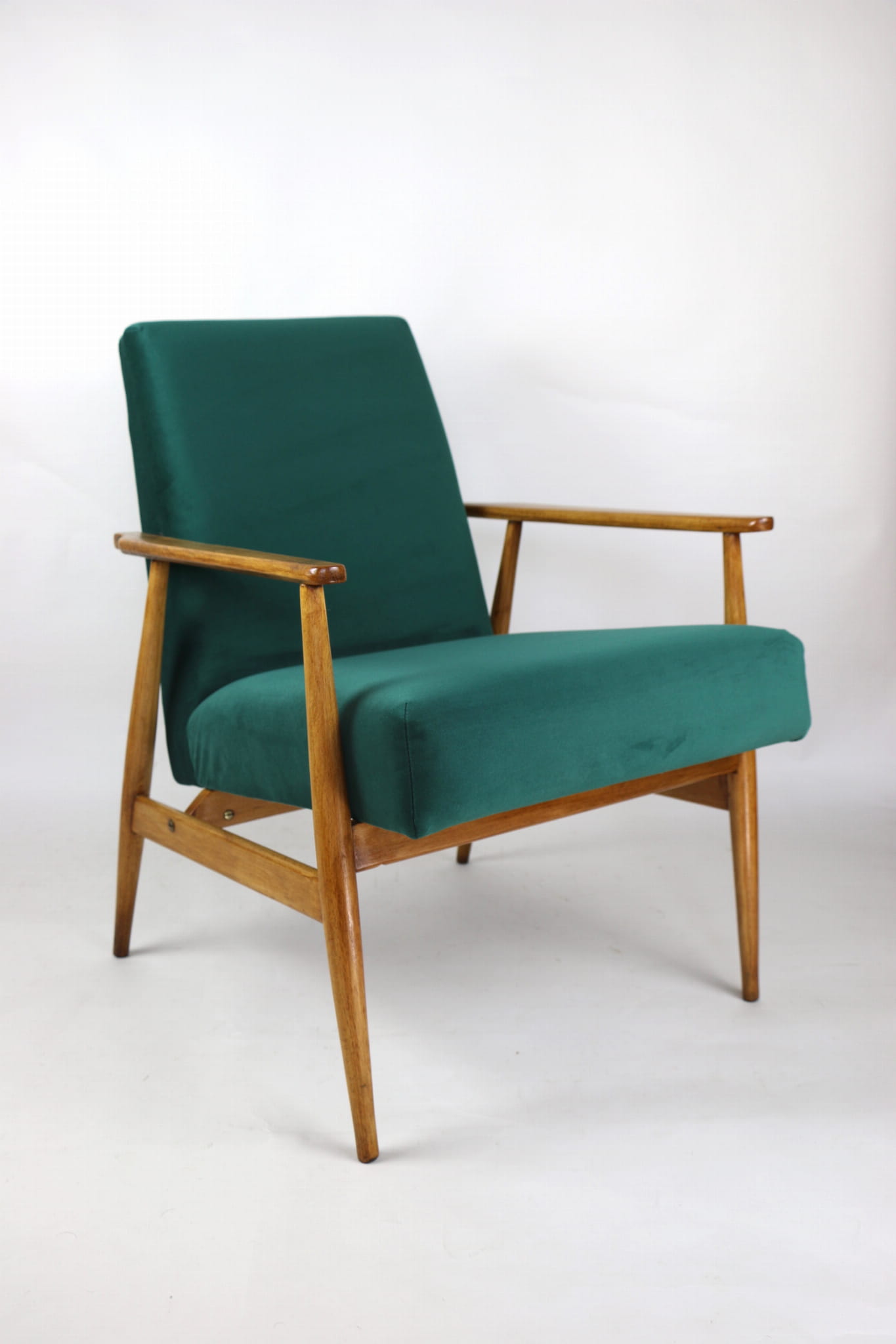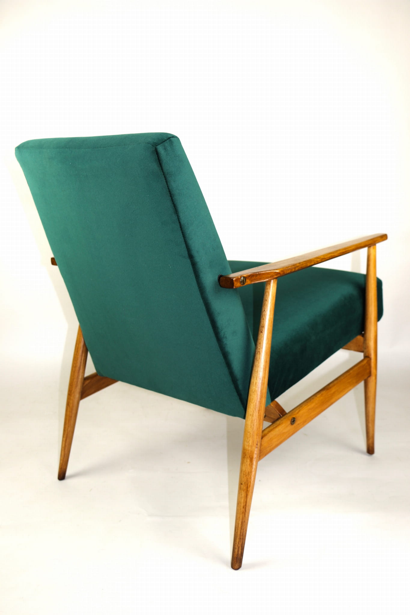 Odrestaurowany fotel "Lis" w pięknym zielonym kolorze.