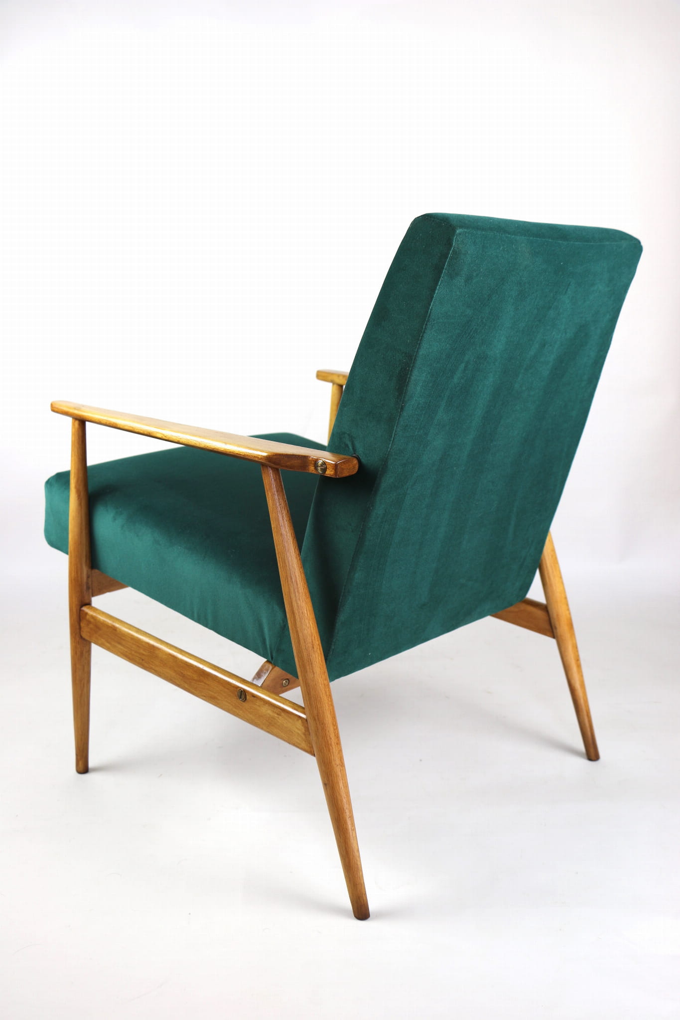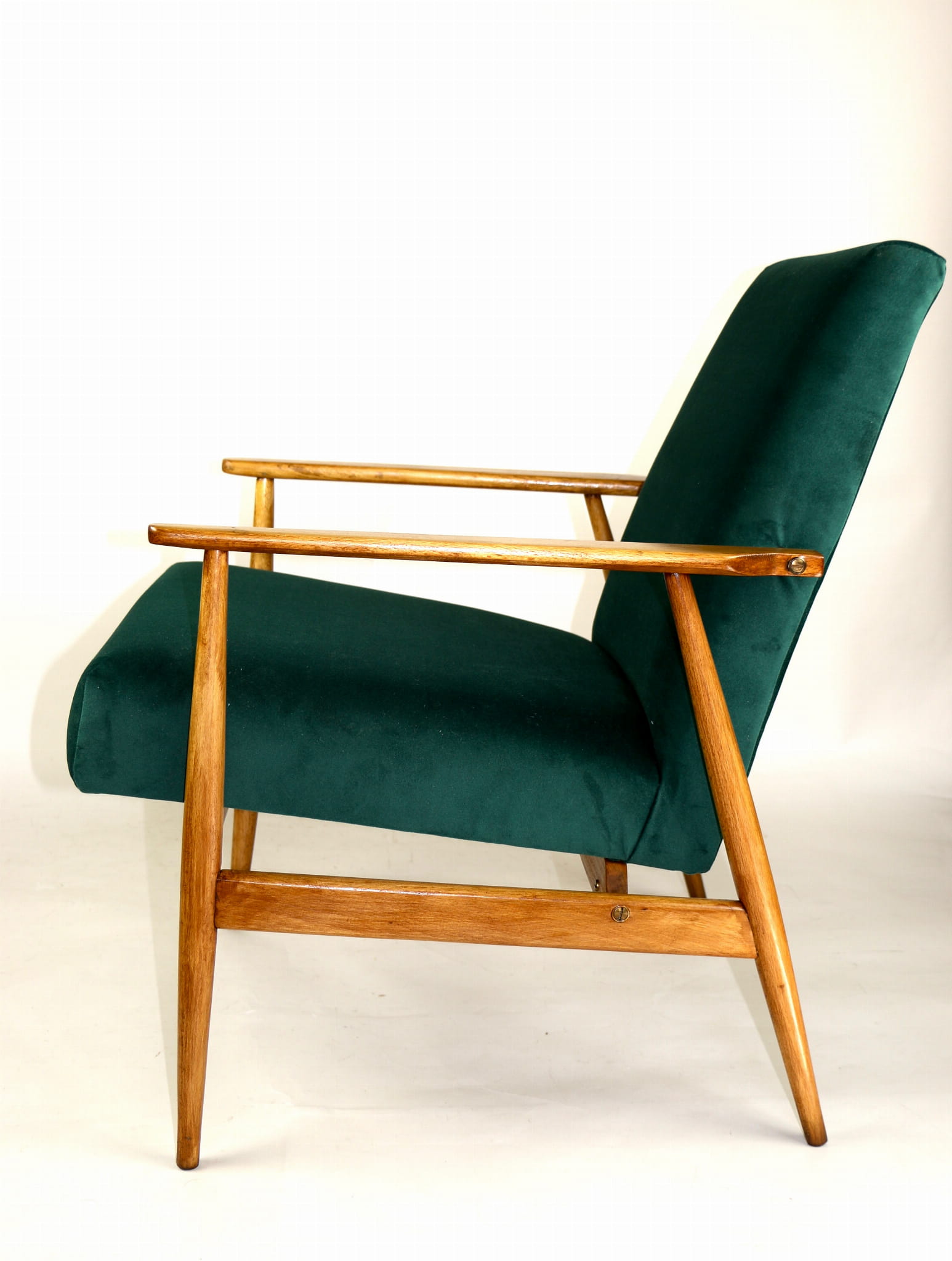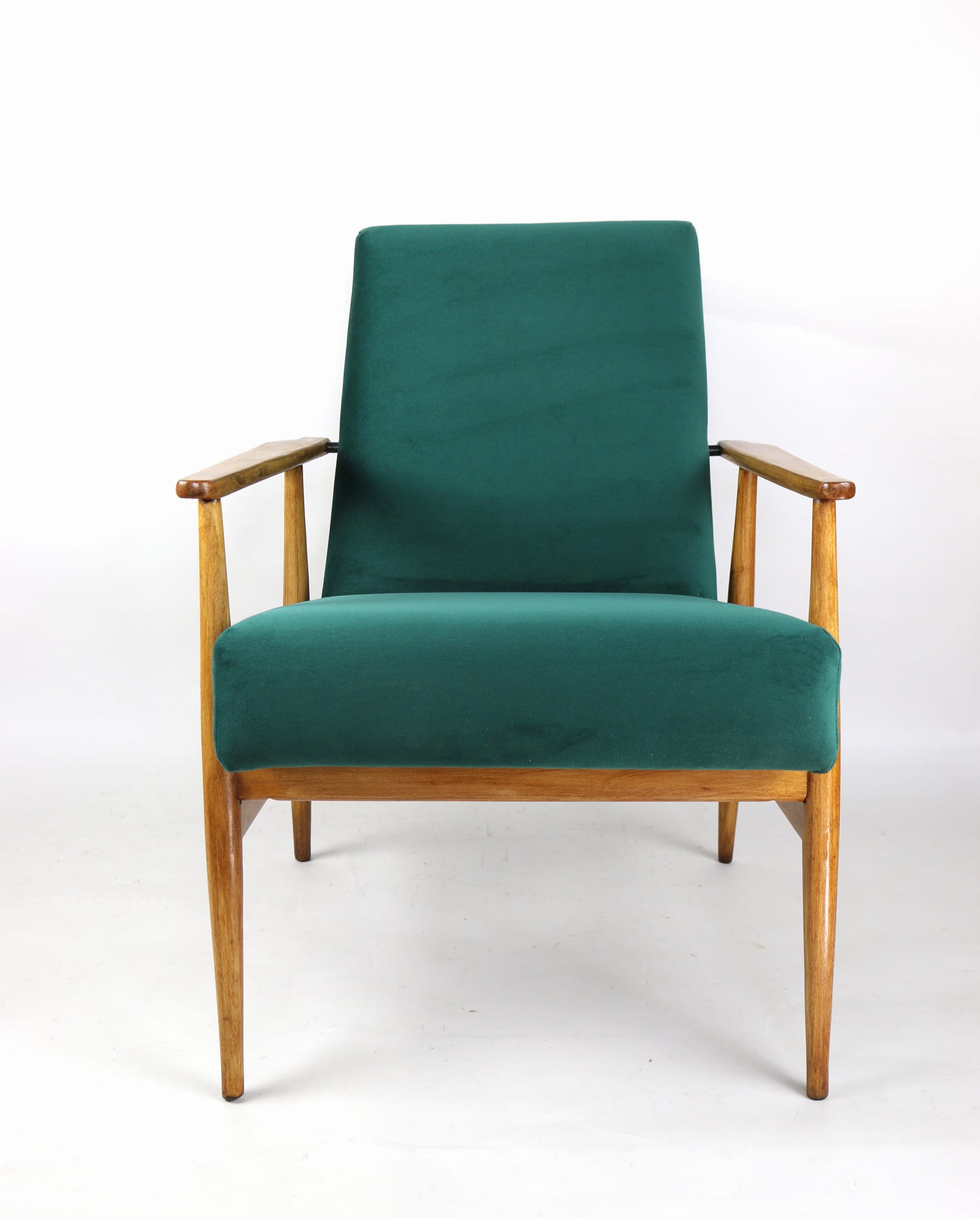 Odrestaurowany fotel "Lis" w pięknym zielonym kolorze.