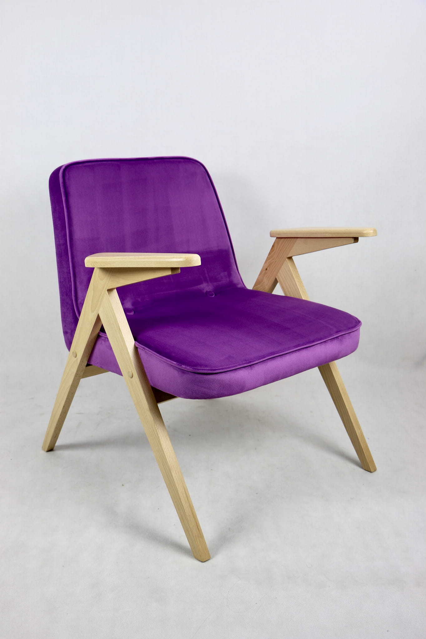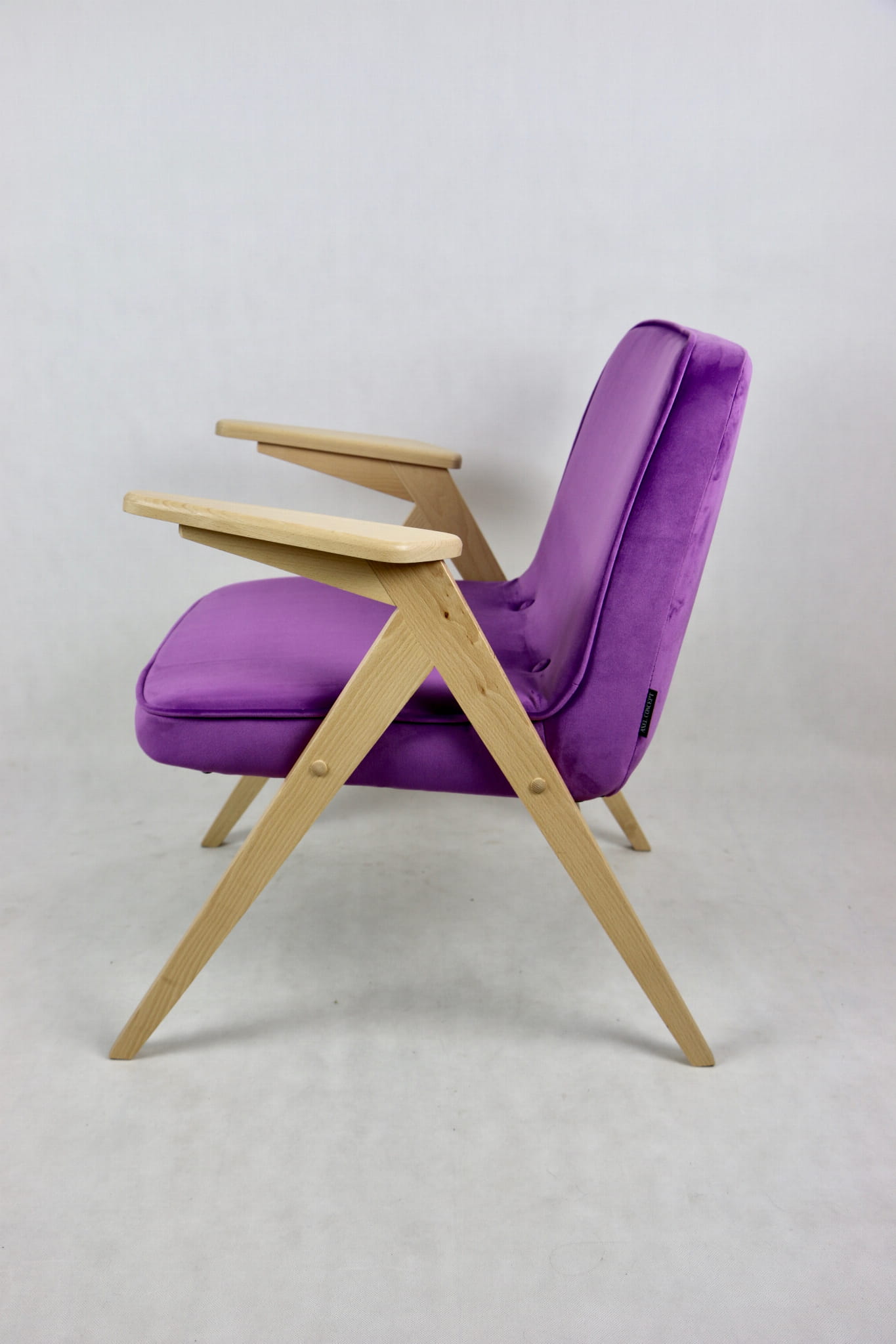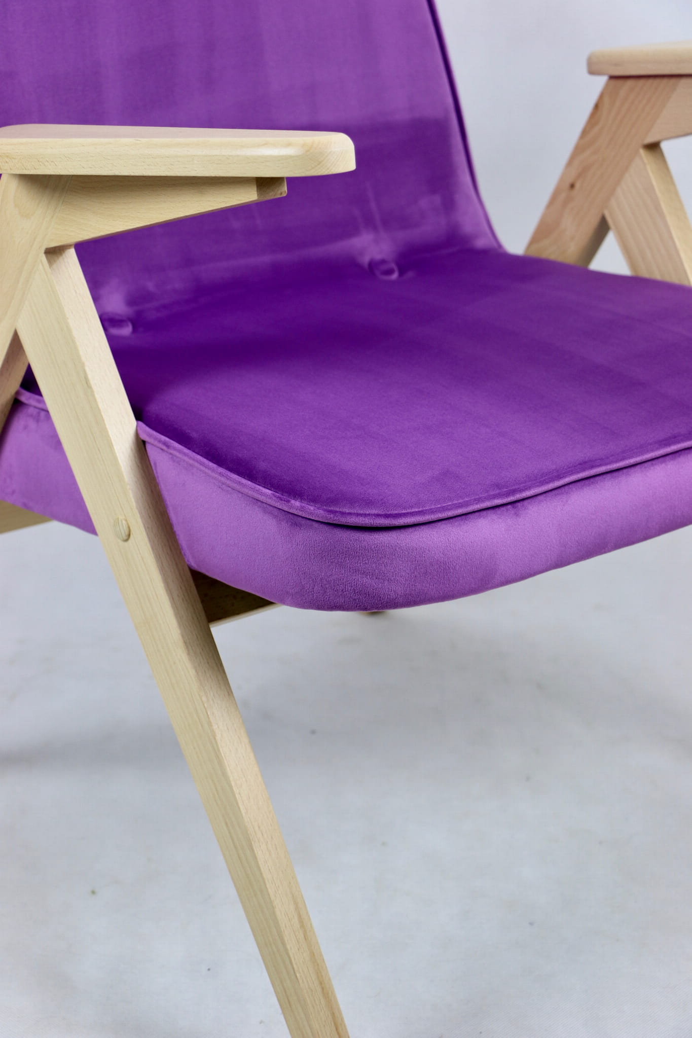 Fotel Bunny Zajączek, lata 70 fioletowy projekt J.Chierowski