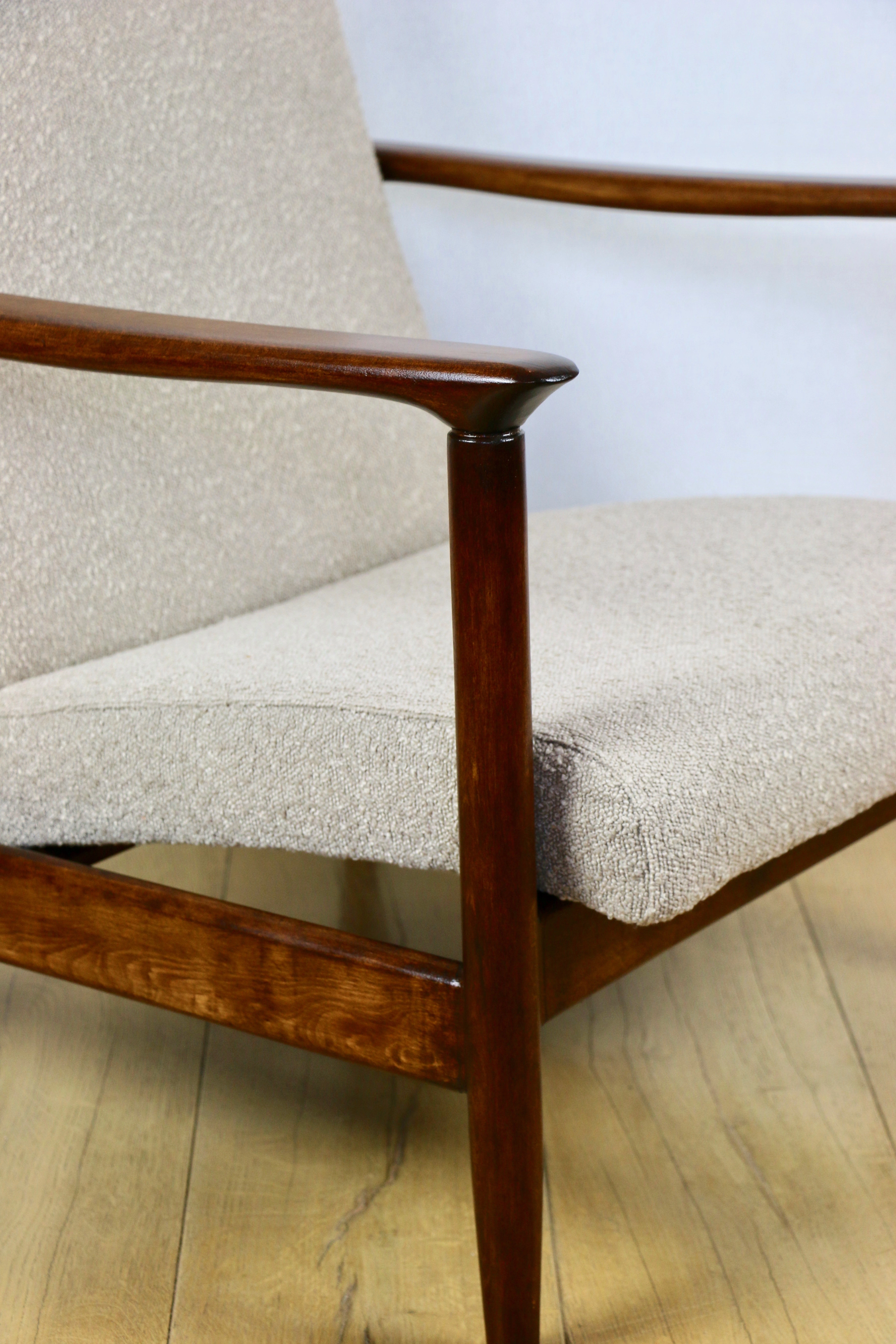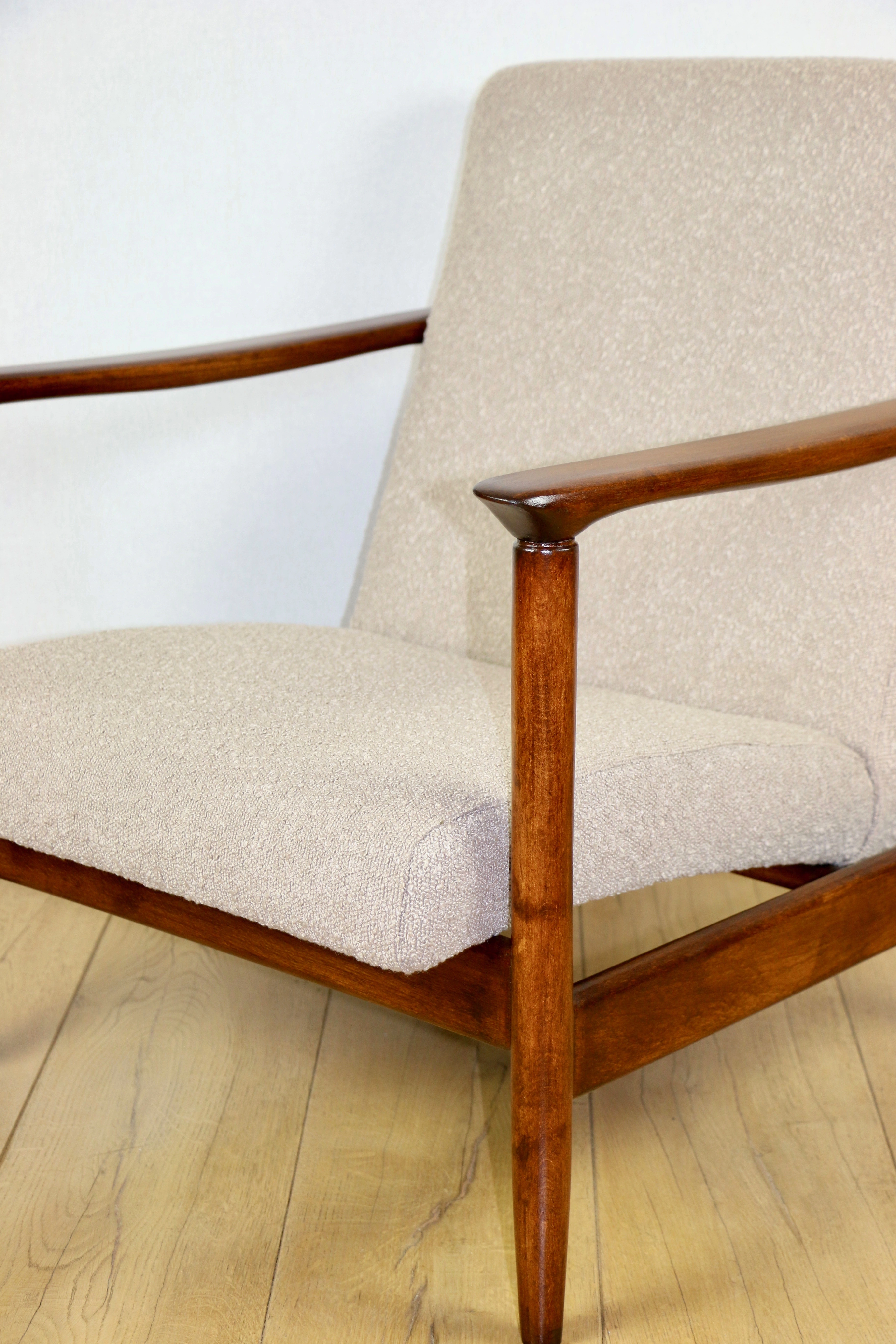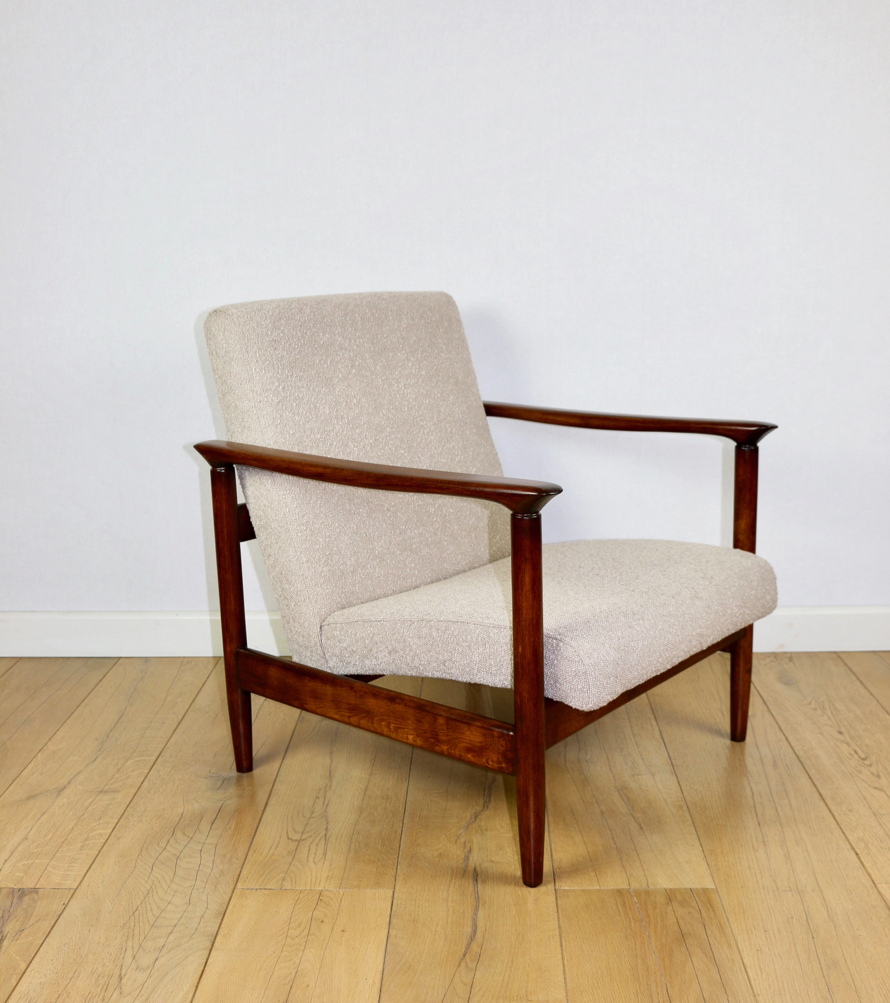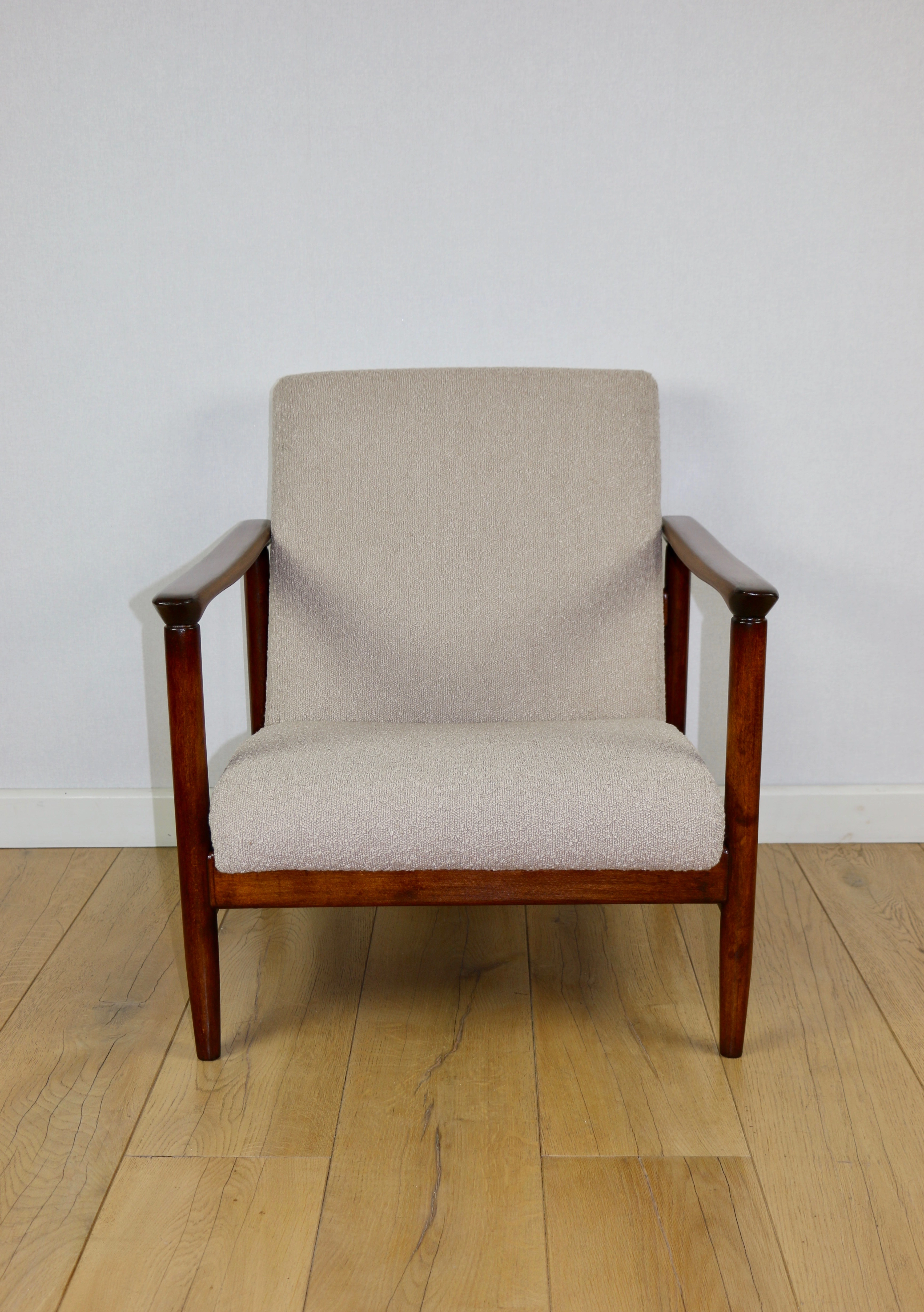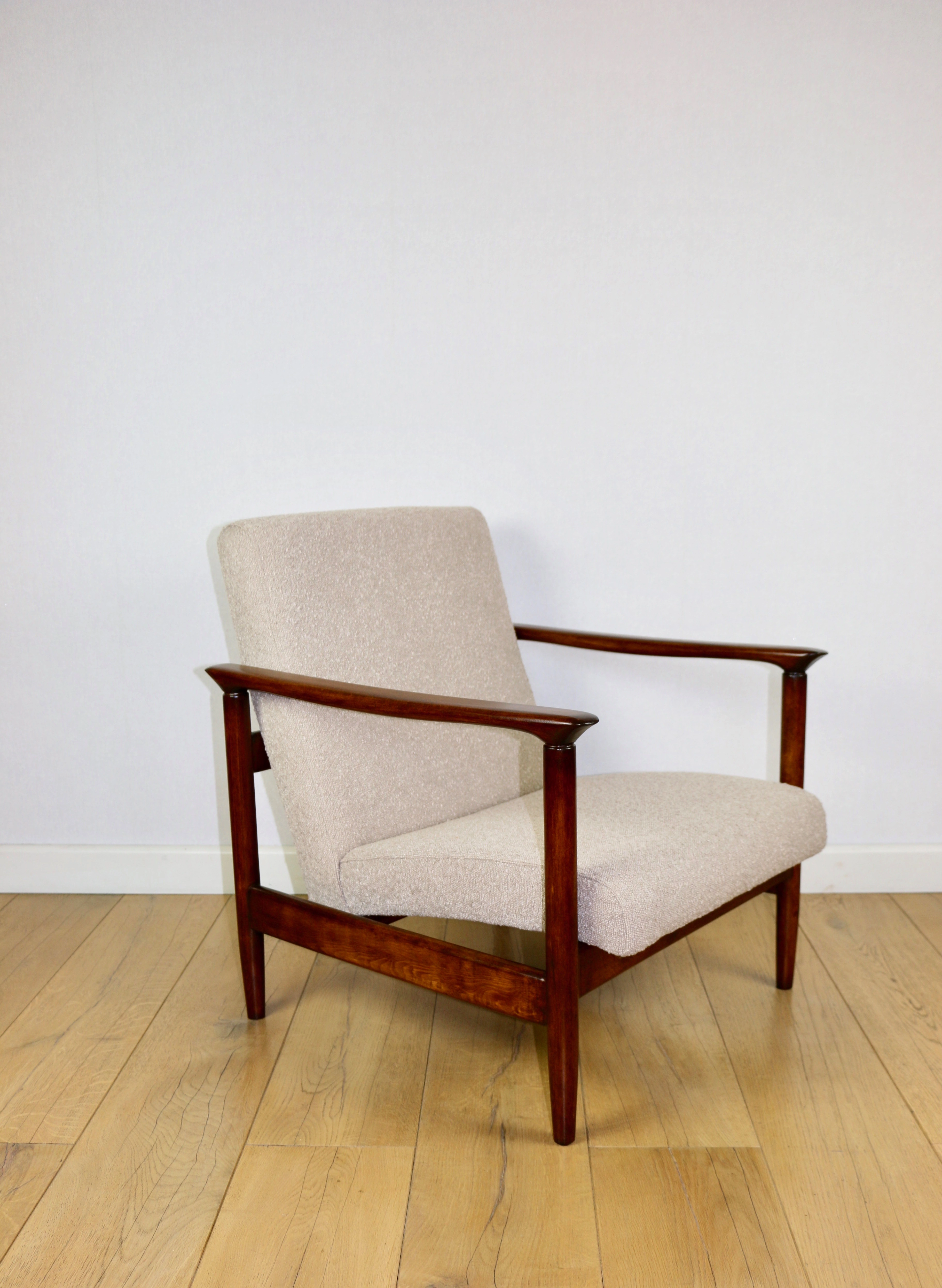 Fotel GFM-142, proj. Edmund Homa z lat 70 beżowy boucle ciemne drewno- dostępne 2 sztuki