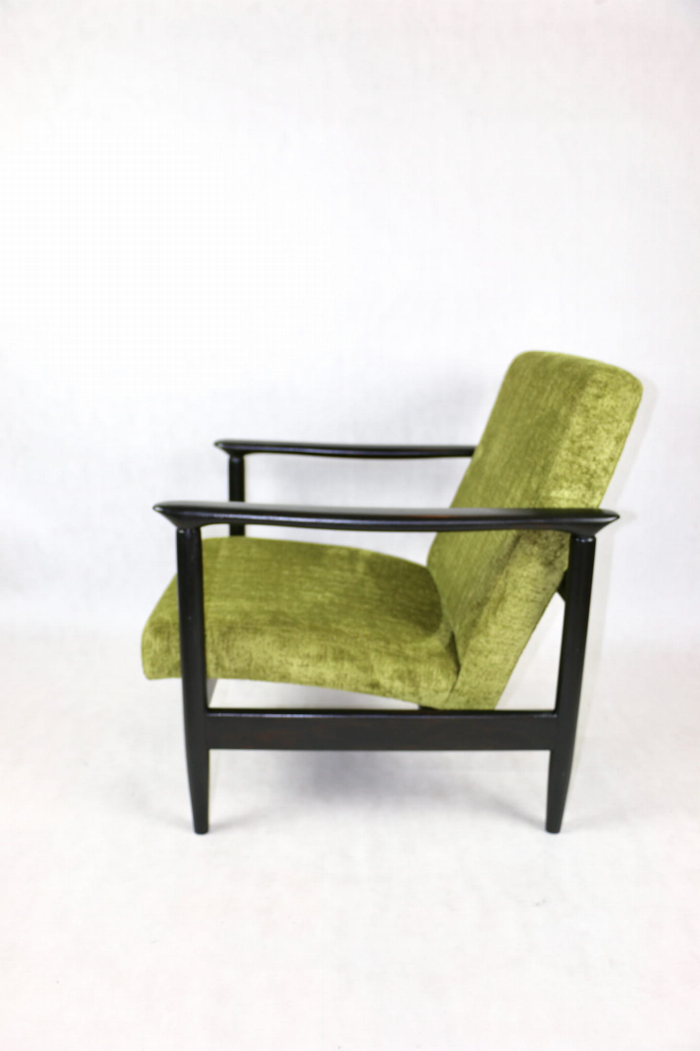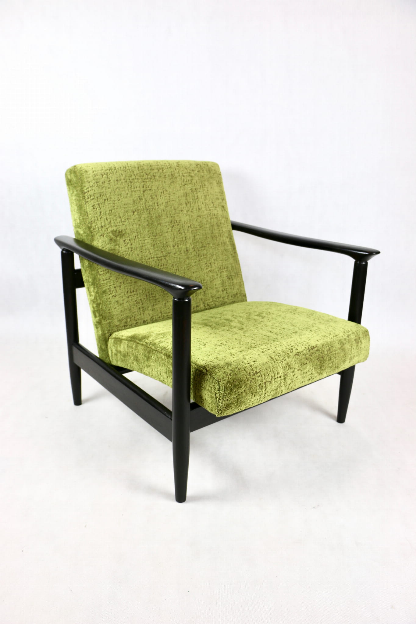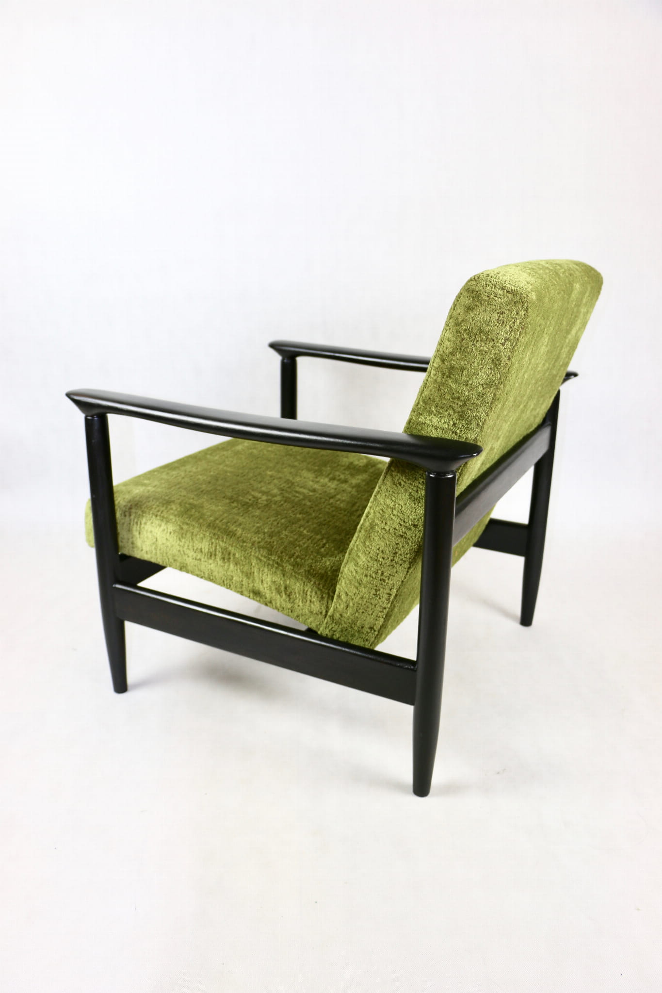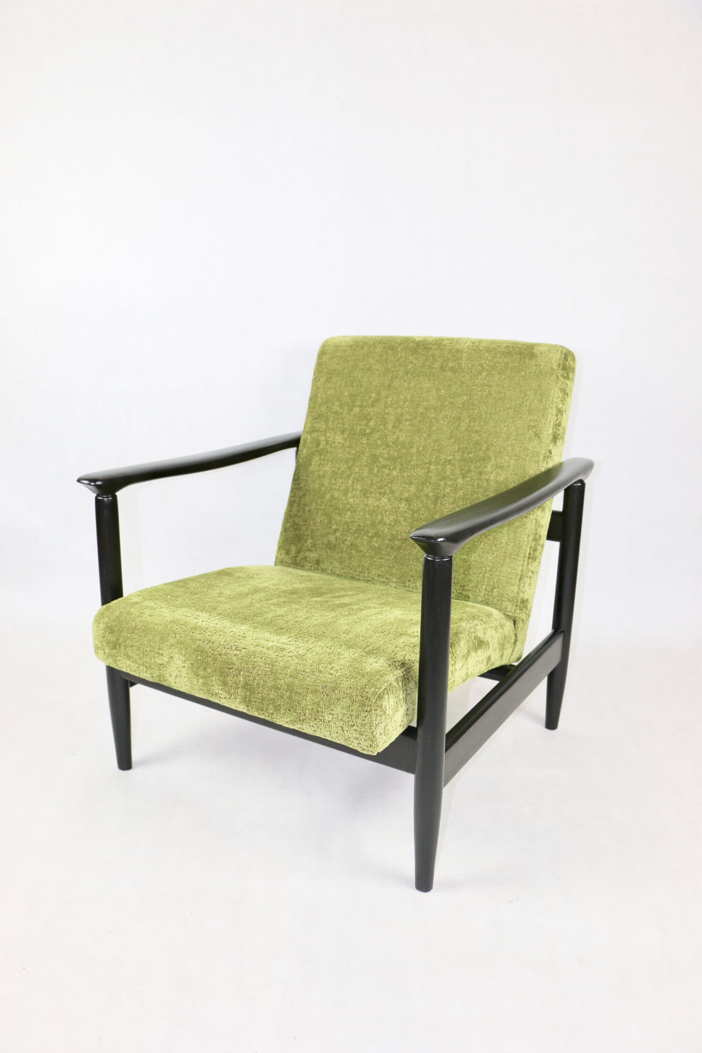 Fotel GFM-142, proj. Edmund Homa z lat 70 oliwkowy - ciemne drewno