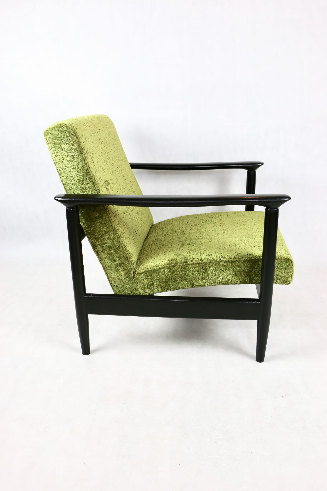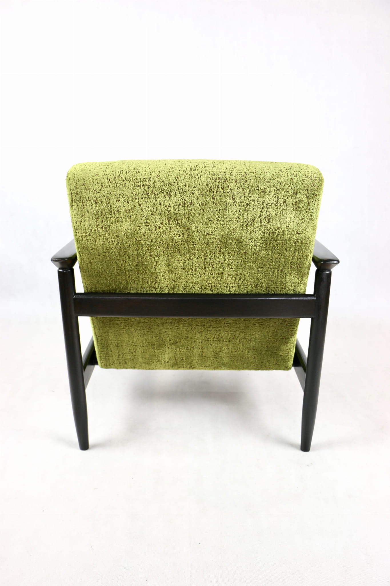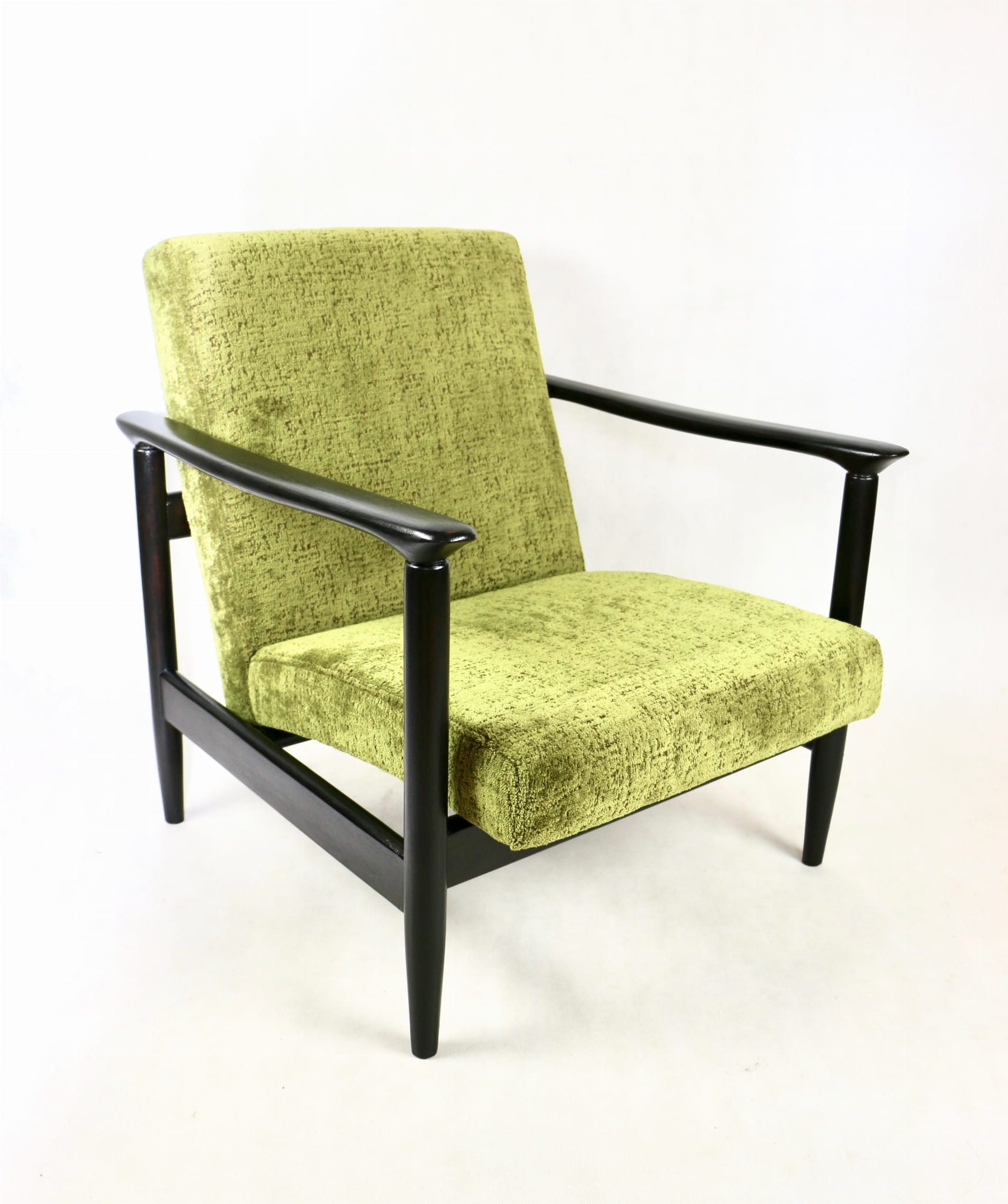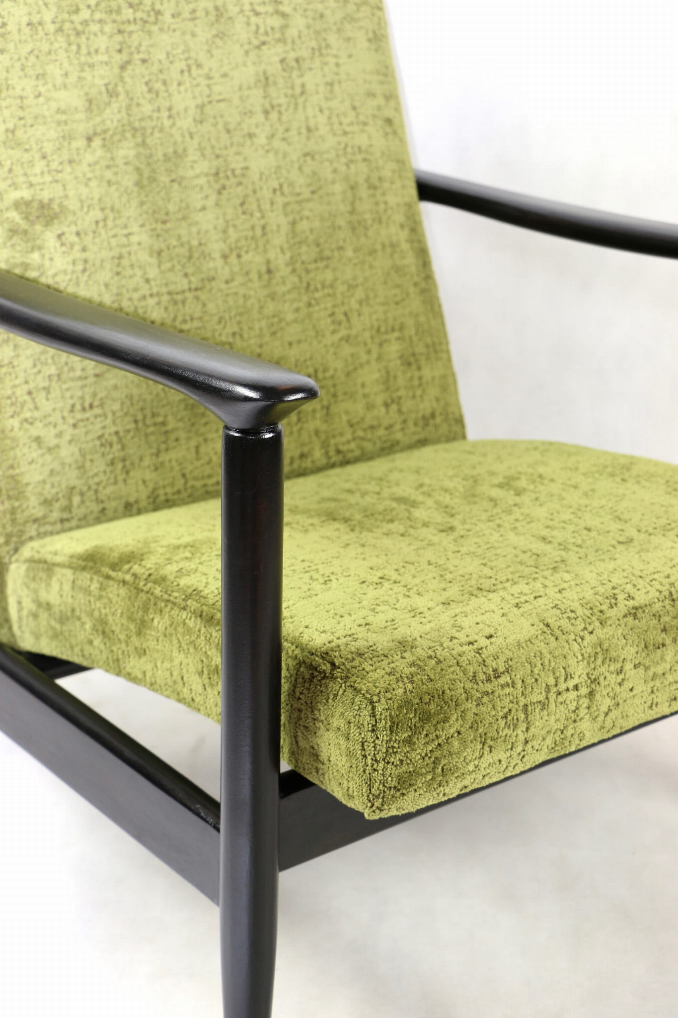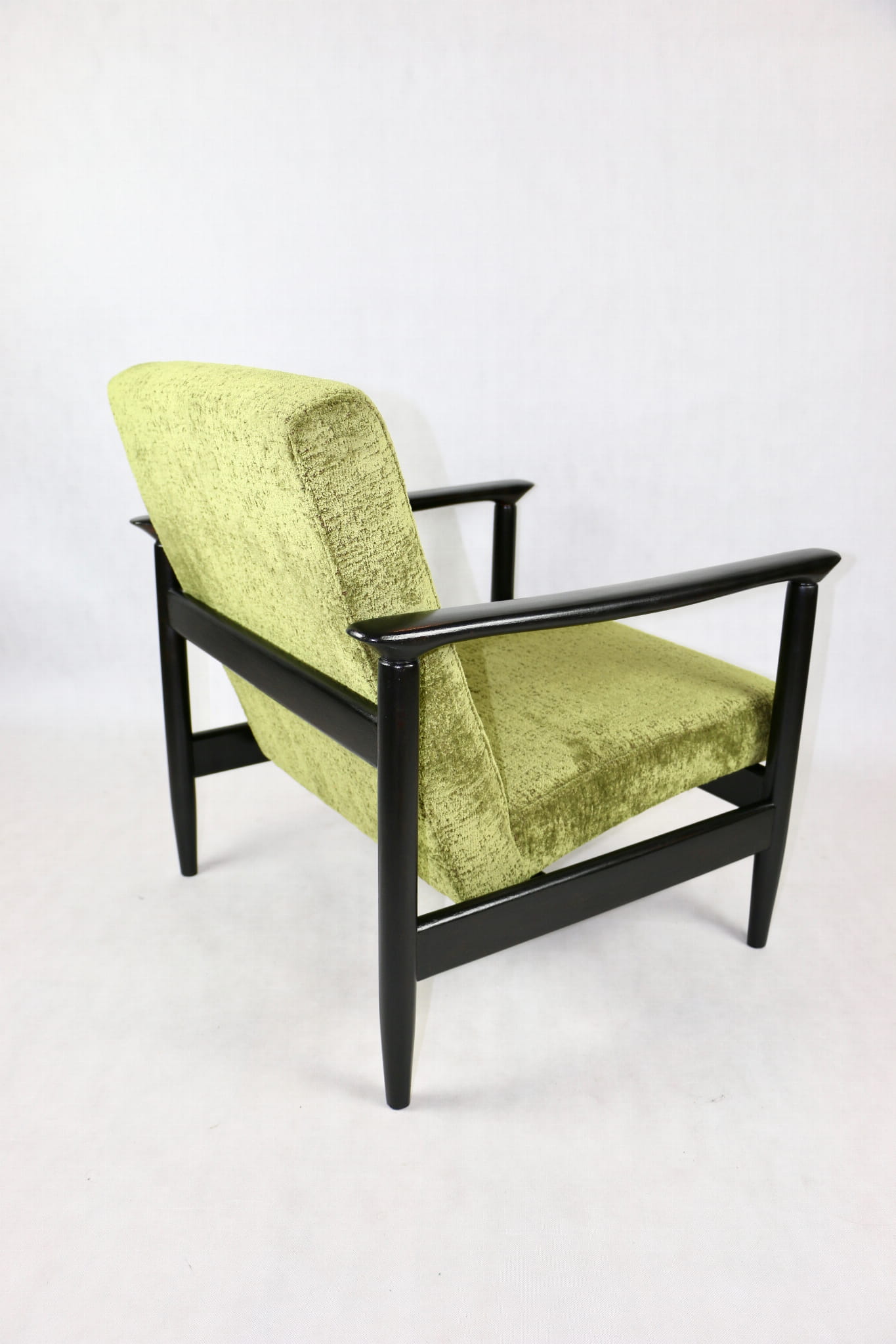 Fotel GFM-142, proj. Edmund Homa z lat 70 oliwkowy - ciemne drewno