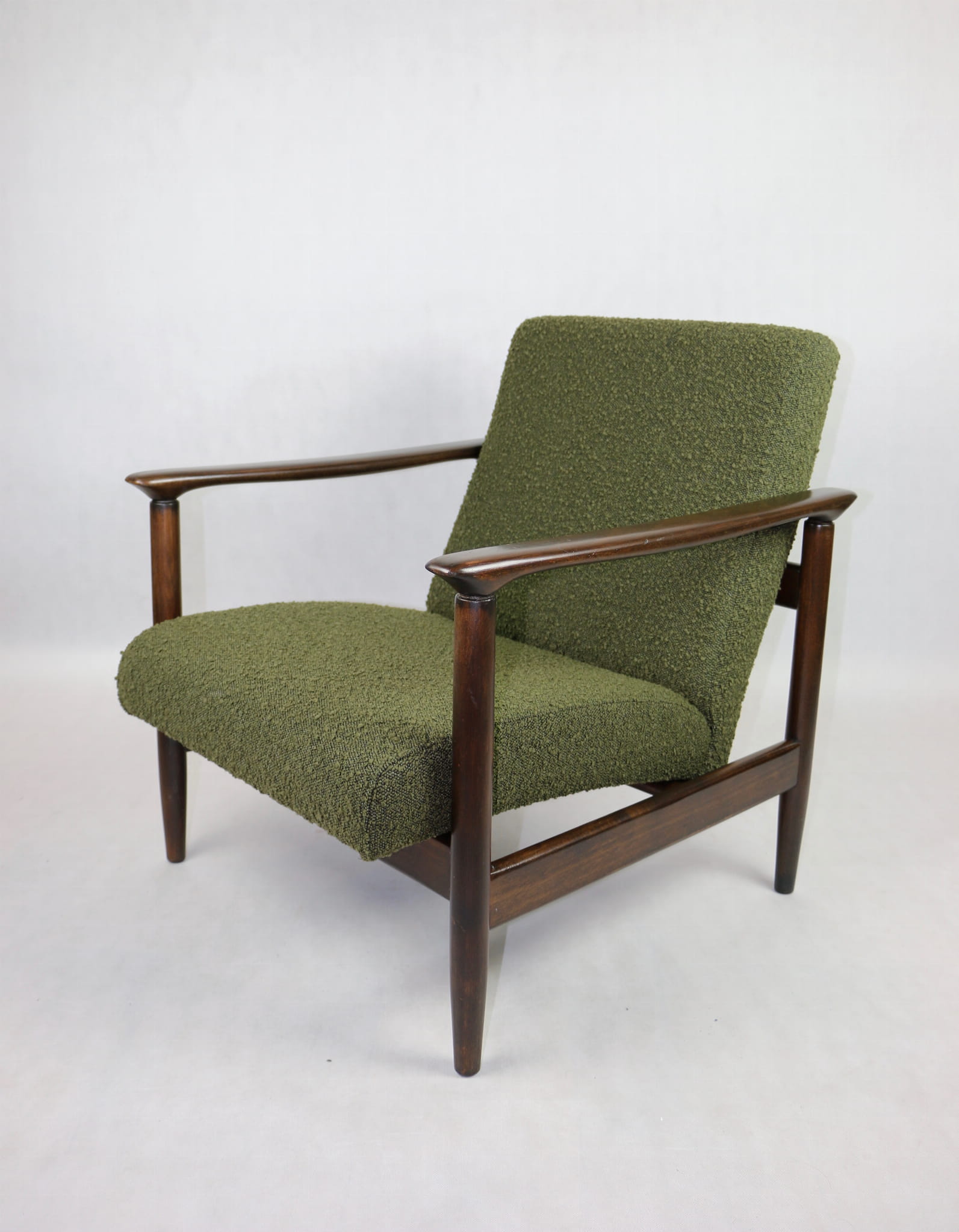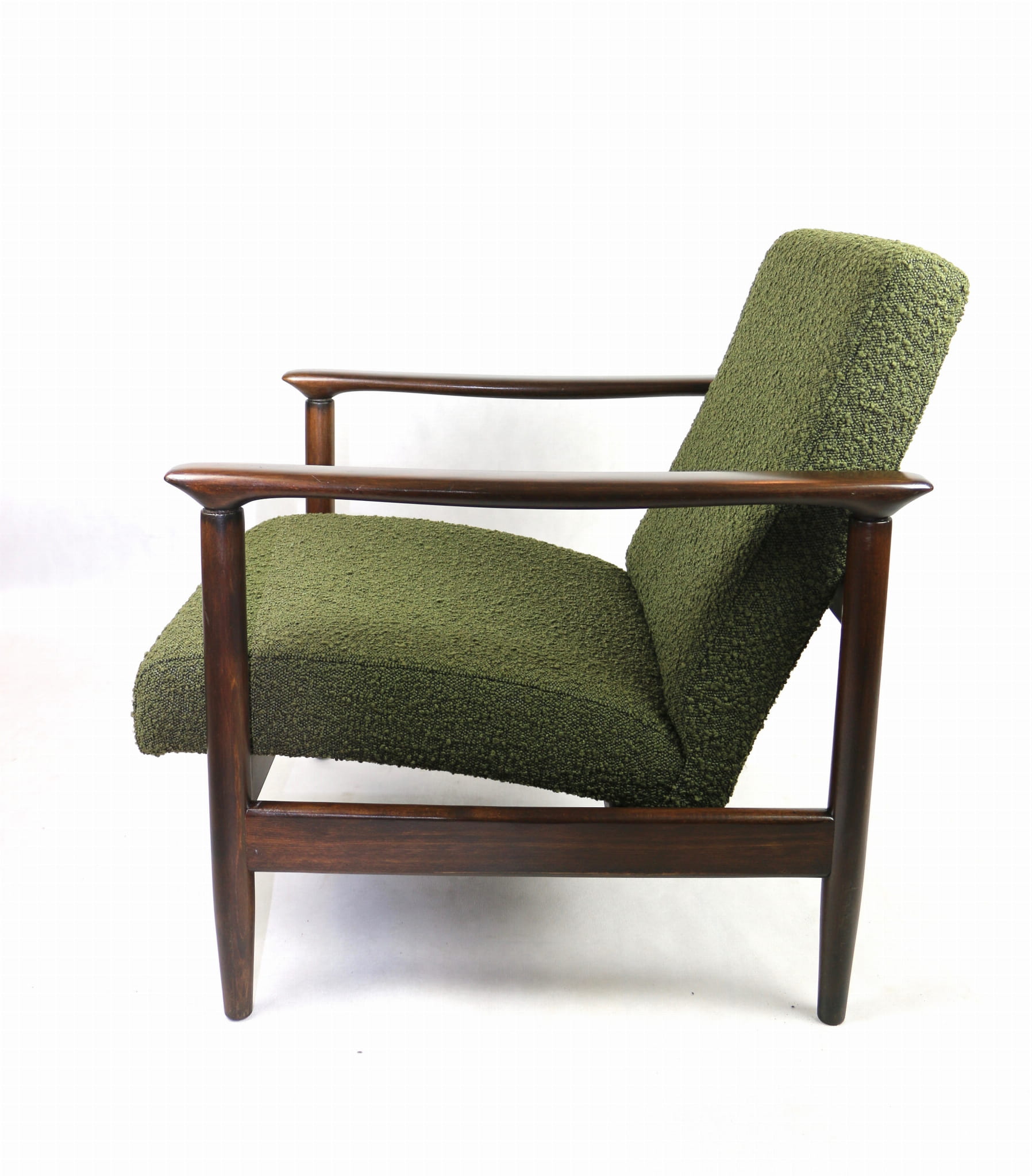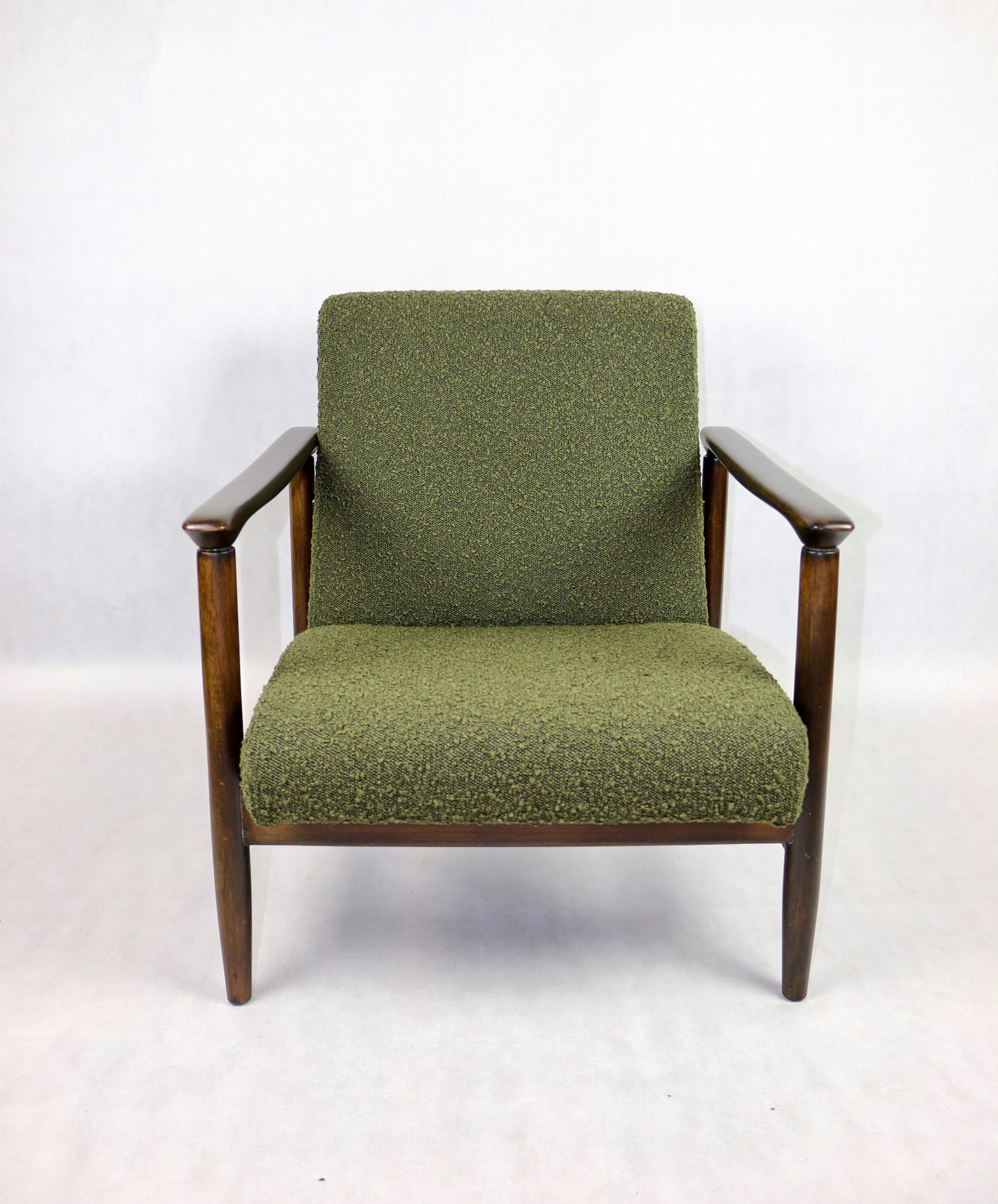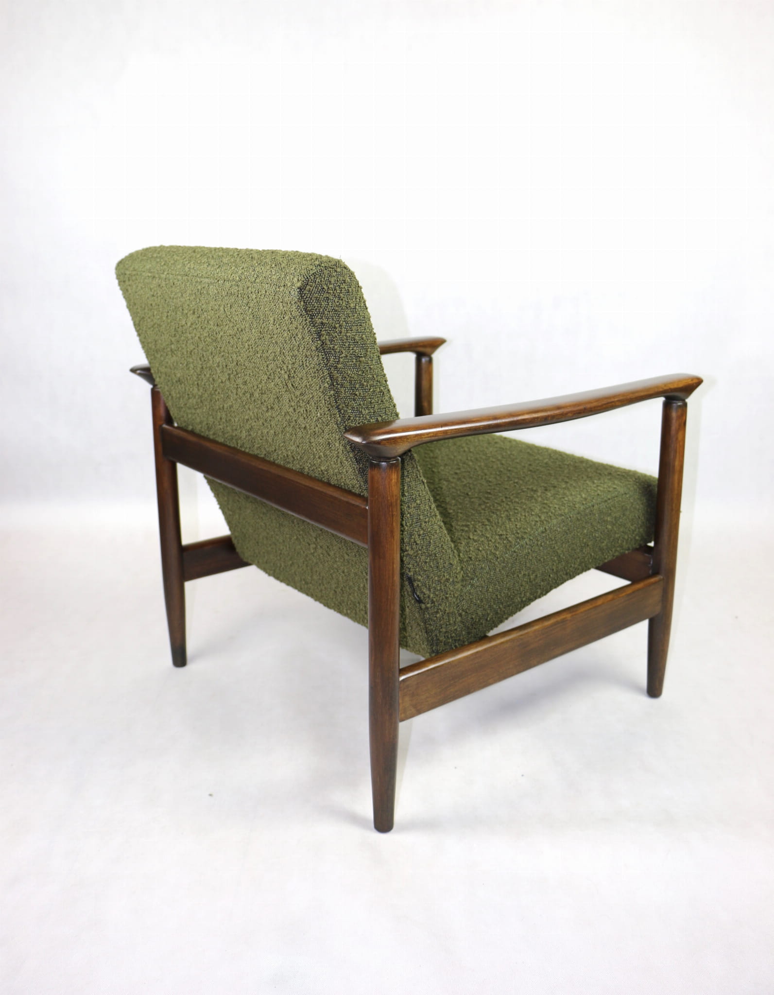 Fotel GFM-142, proj. Edmund Homa z lat 70 oliwkowy-zielony boucle Ascot