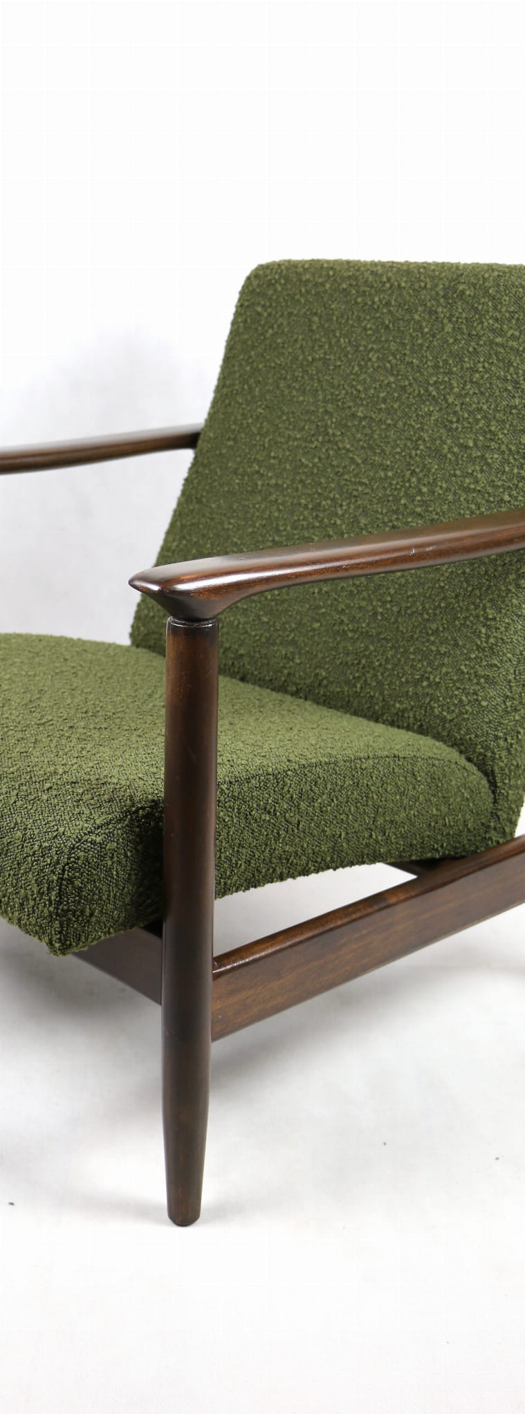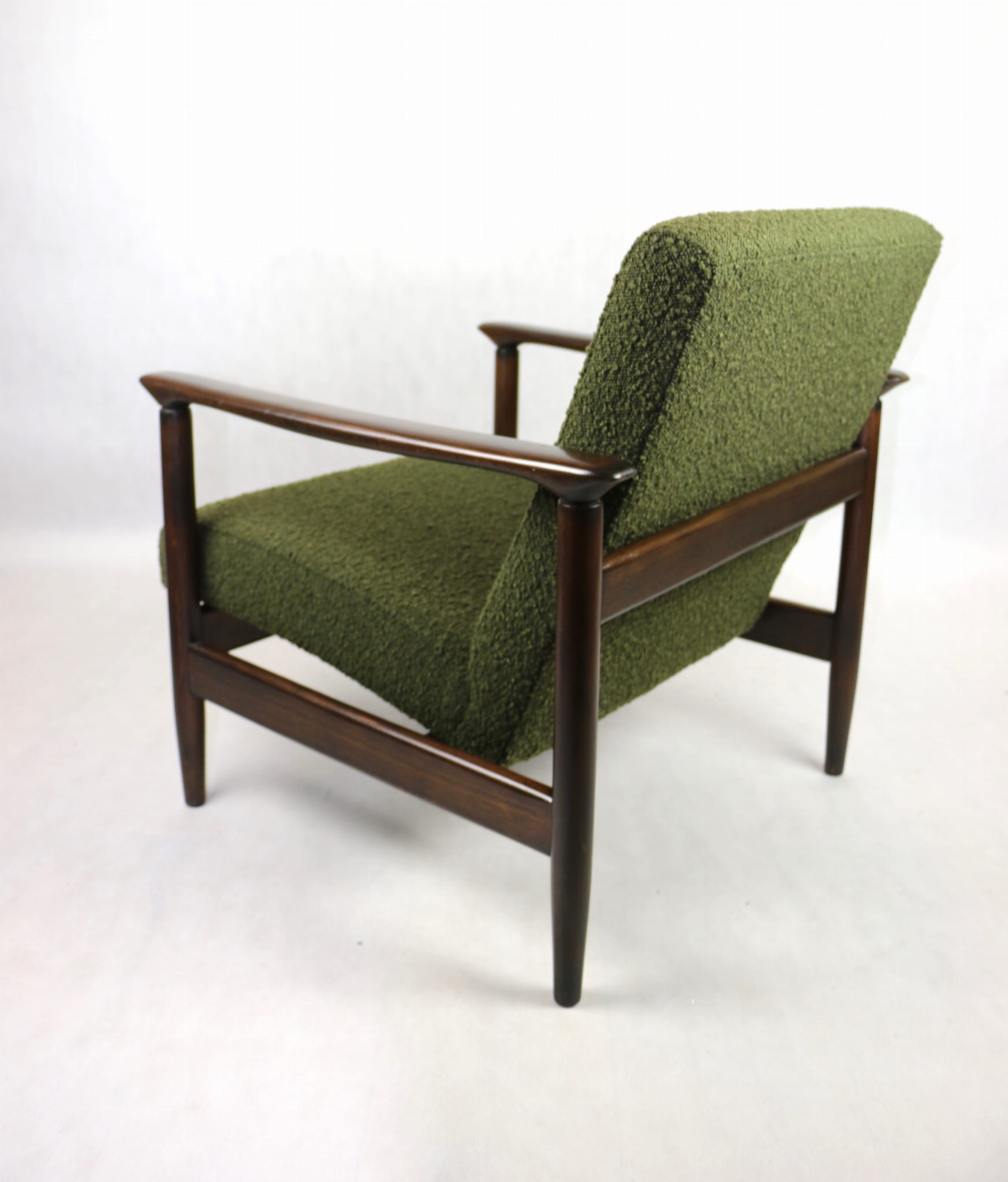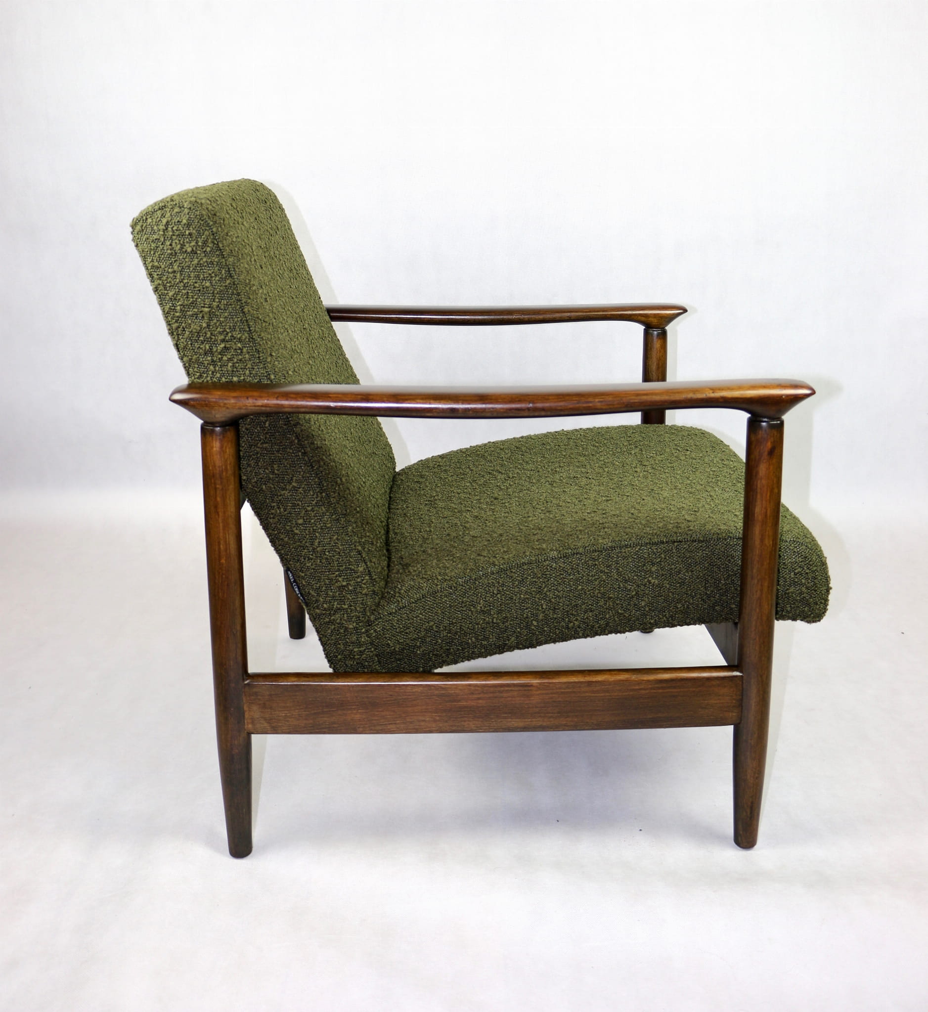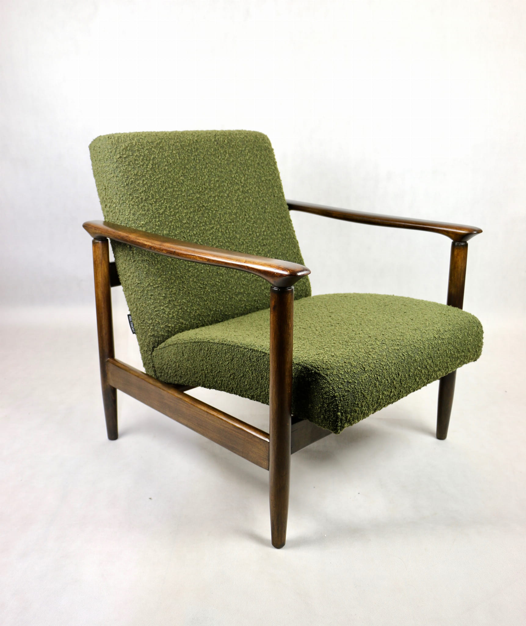 Fotel GFM-142, proj. Edmund Homa z lat 70 oliwkowy-zielony boucle Ascot