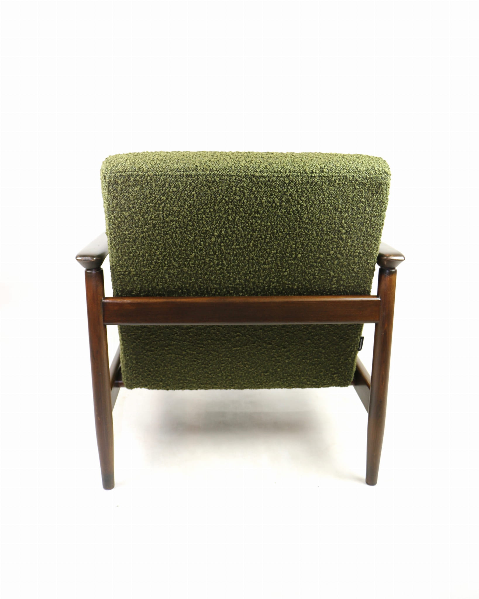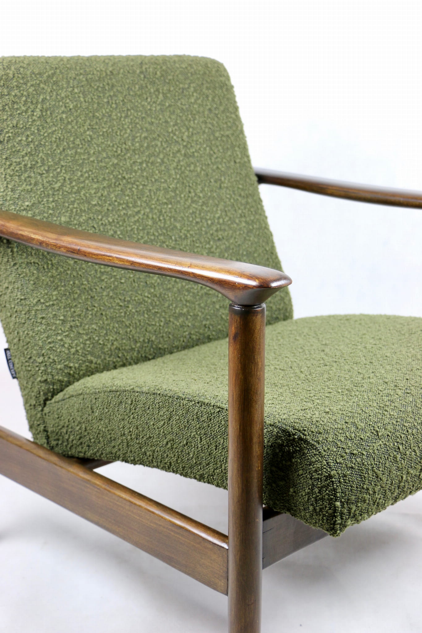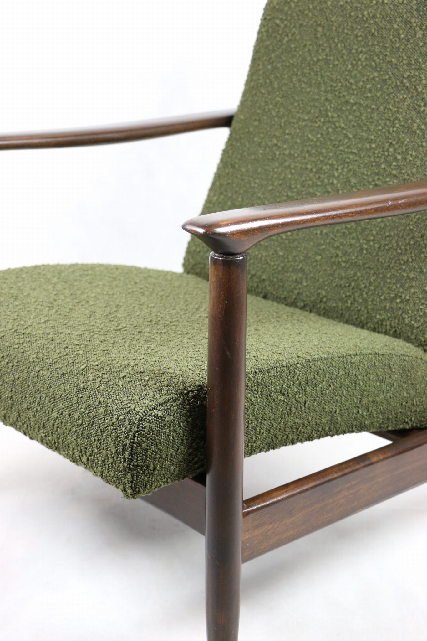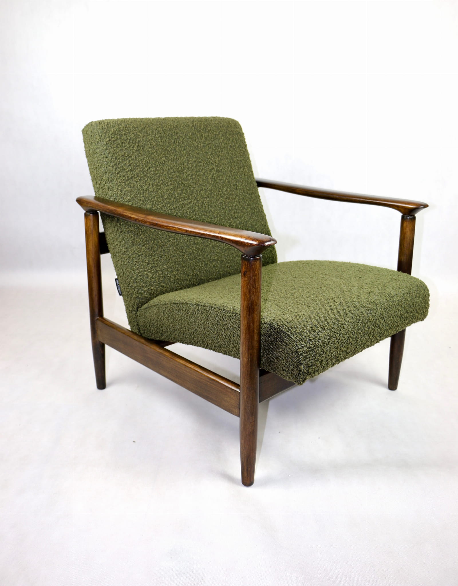 Fotel GFM-142, proj. Edmund Homa z lat 70 oliwkowy-zielony boucle Ascot