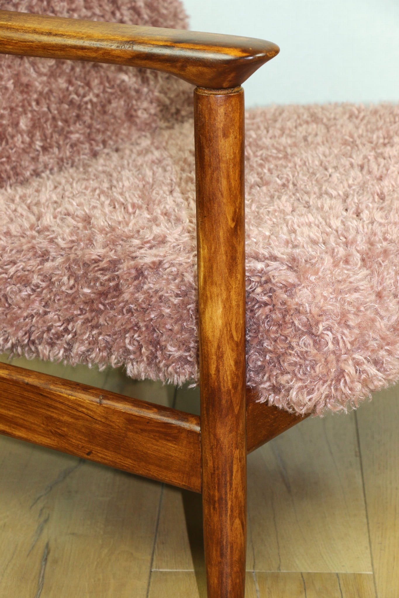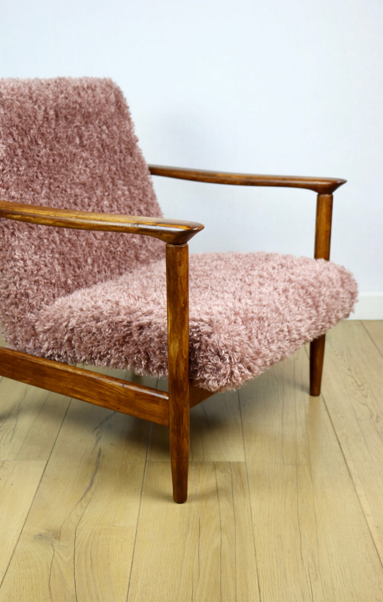 Fotel GFM-142 proj. Edmund Homa z lat 70 różowy długie włosie- dostępne 2 sztuki