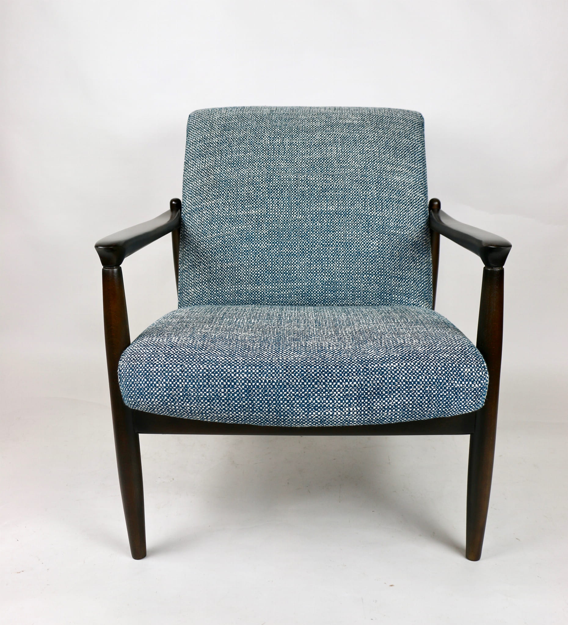 Fotel GFM-64, proj. Edmund Homa z lat 60 niebieski granat strukturalny