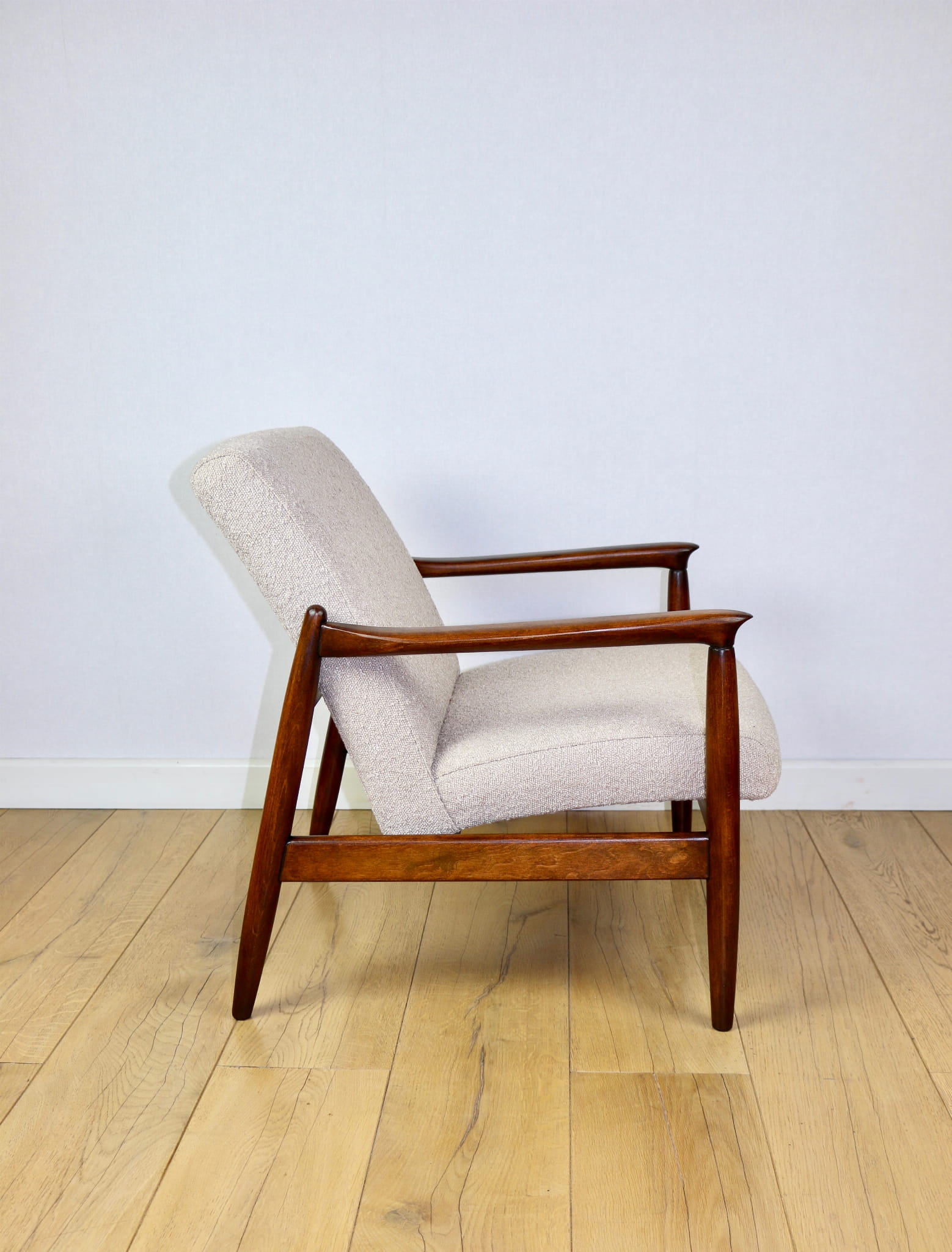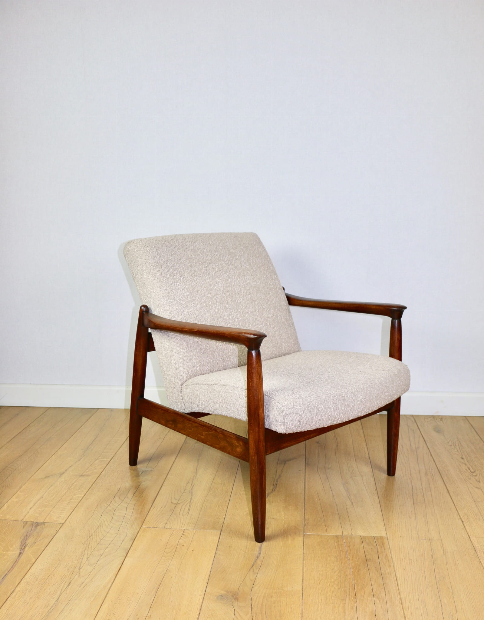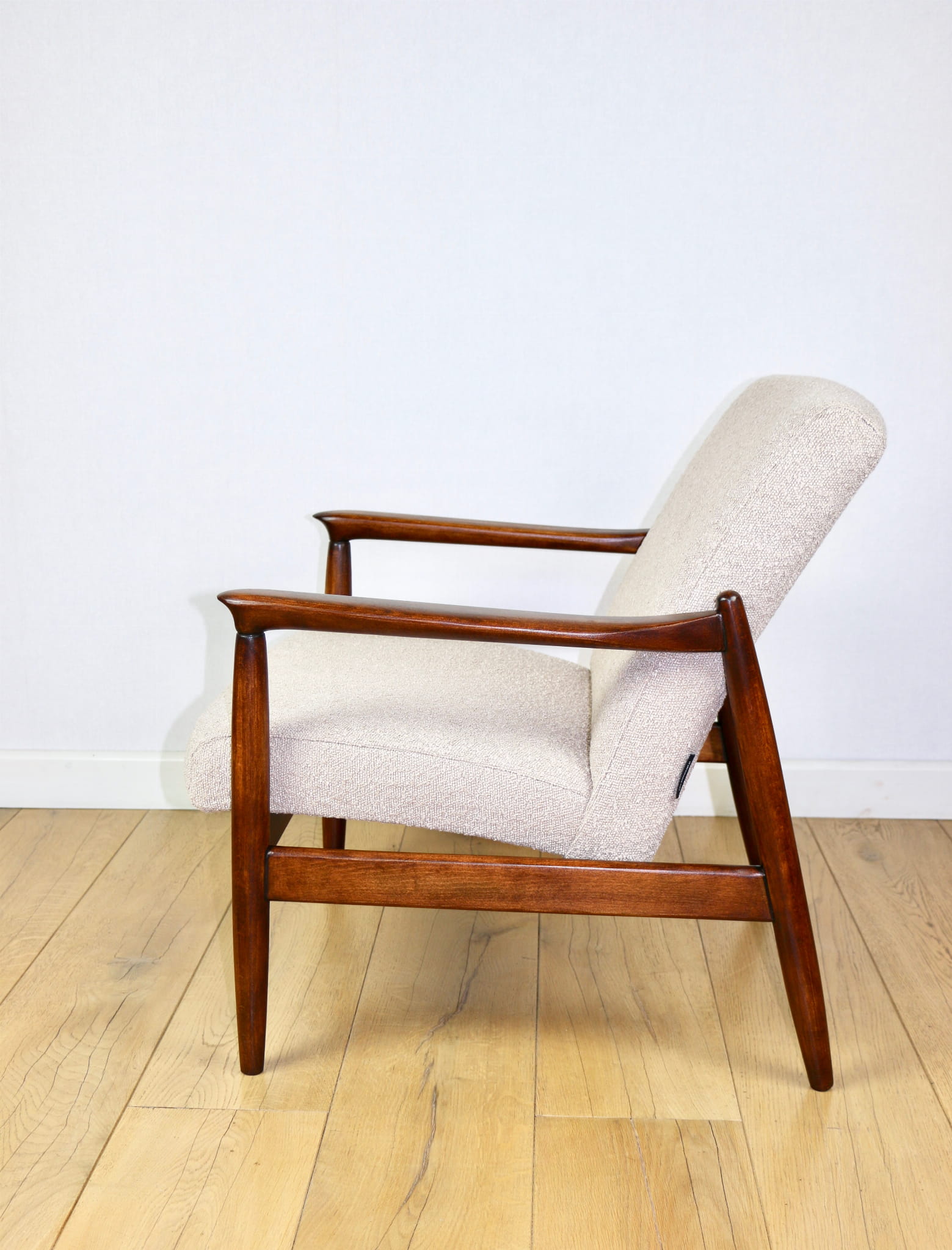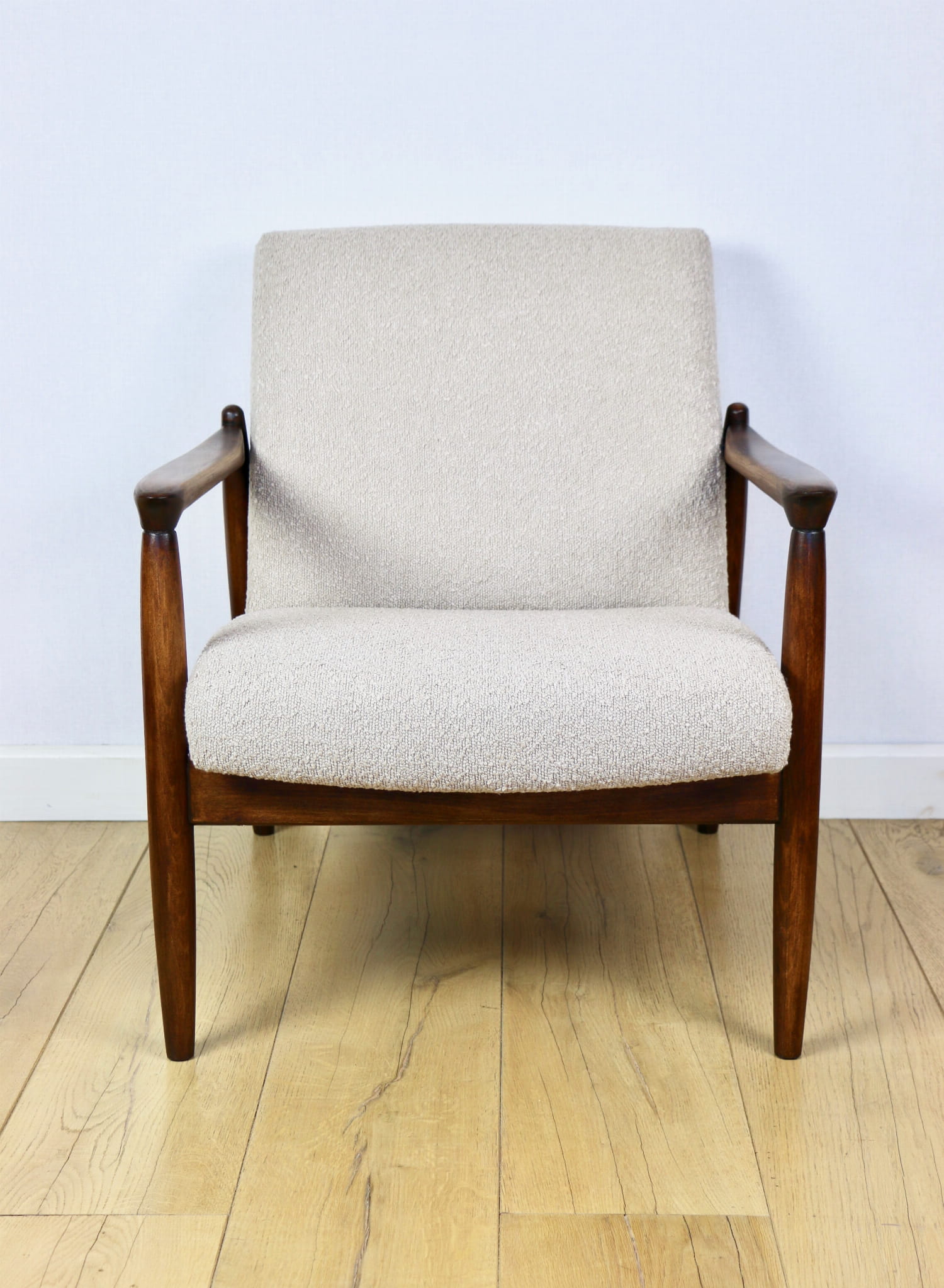 Fotel GFM-64, proj. Edmund Homa z lat 70 beżowy boucle - dostępne 2 sztuki