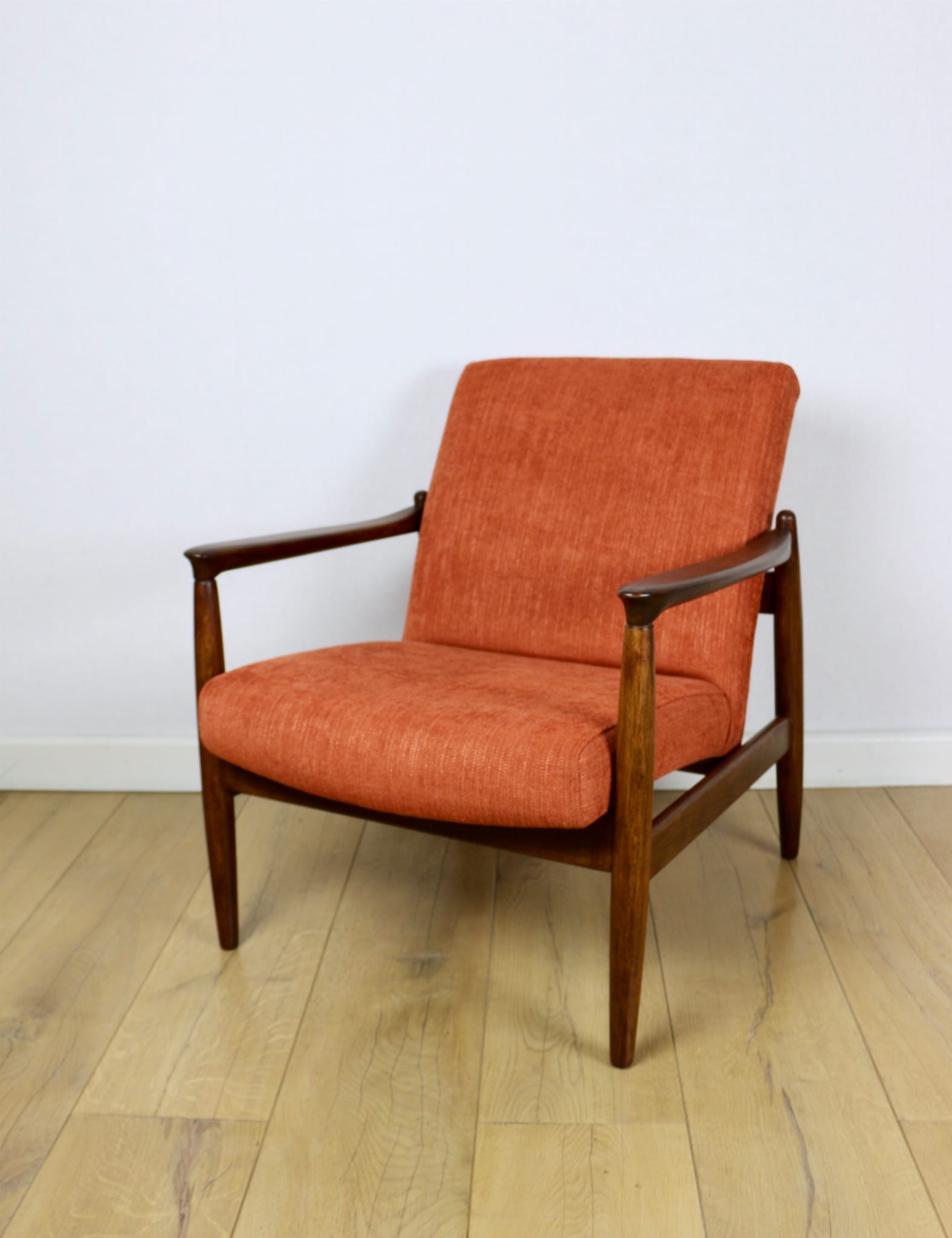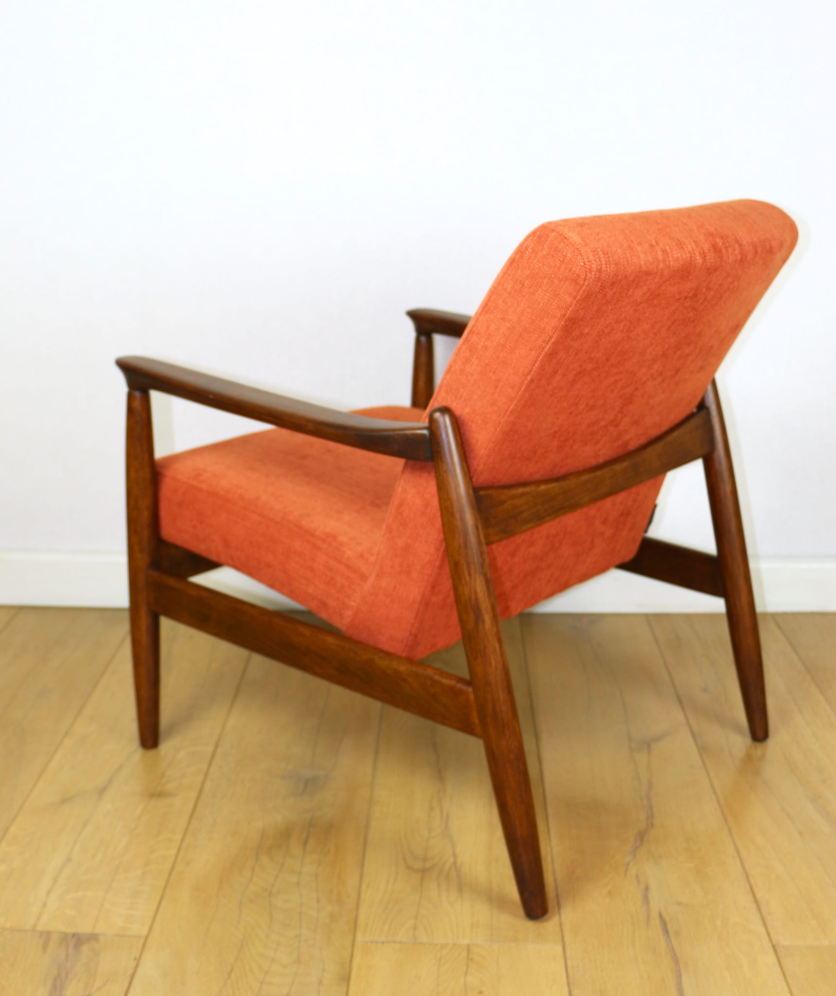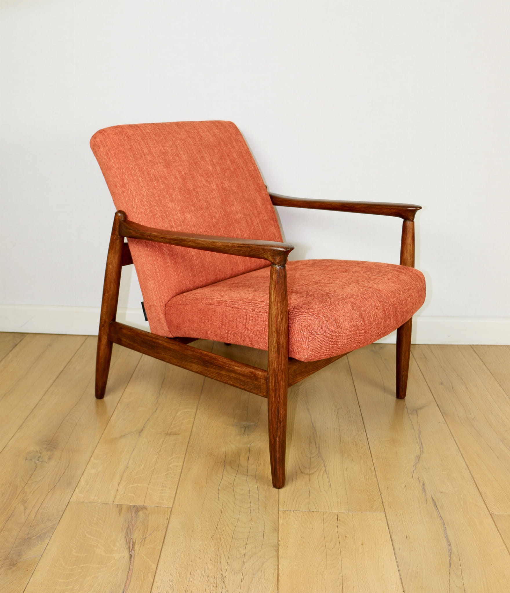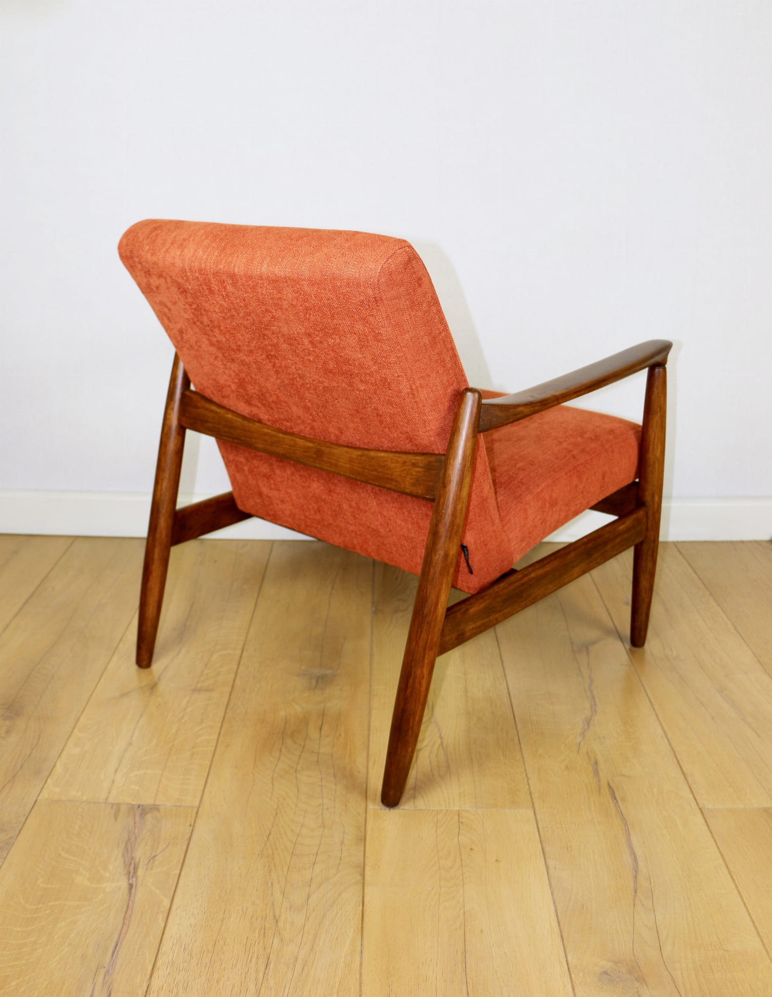 Fotel GFM-64, proj. Edmund Homa z lat 70 terakota brick