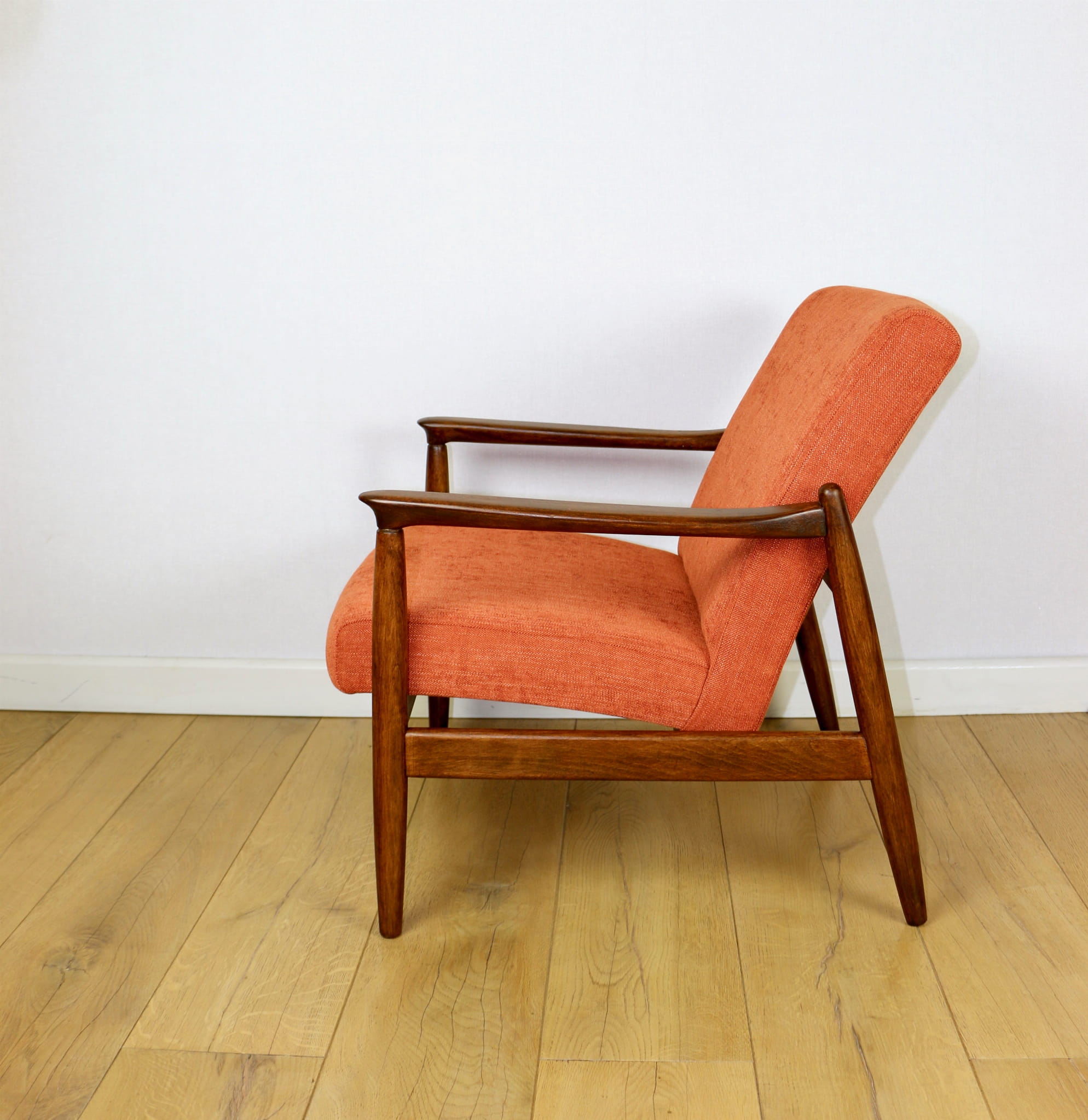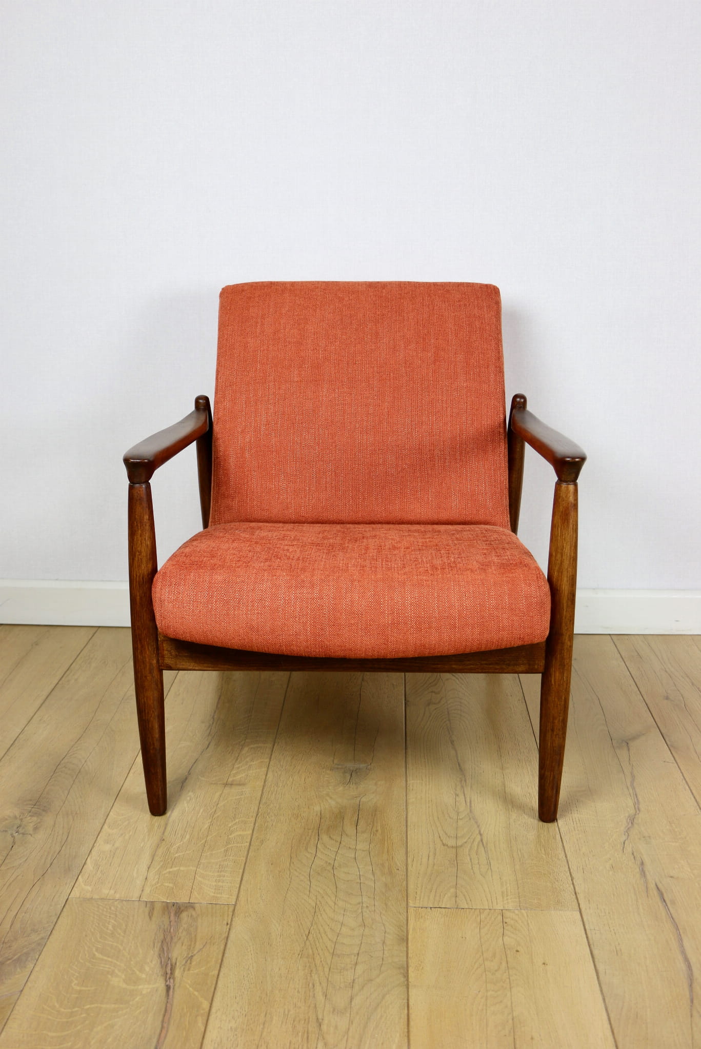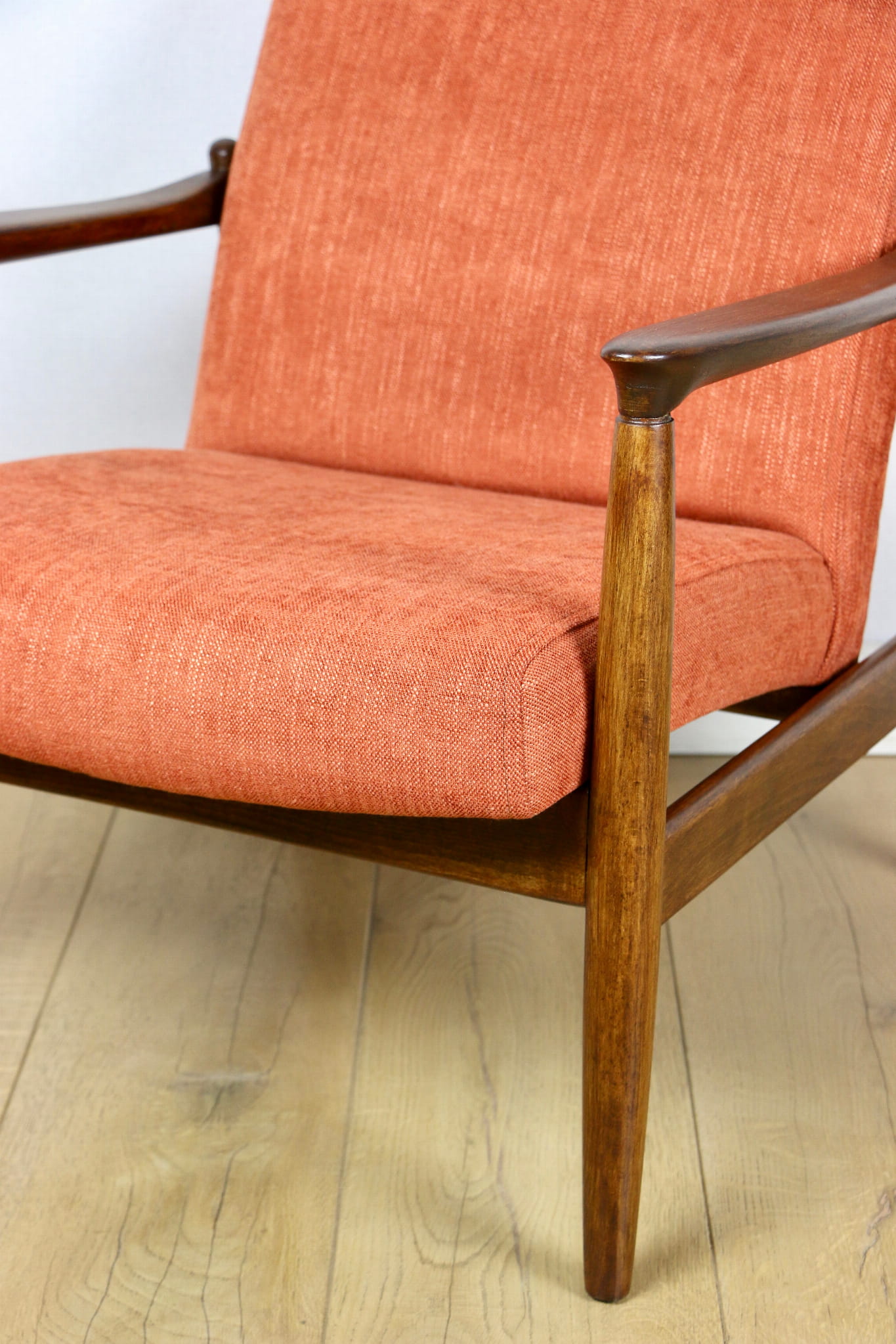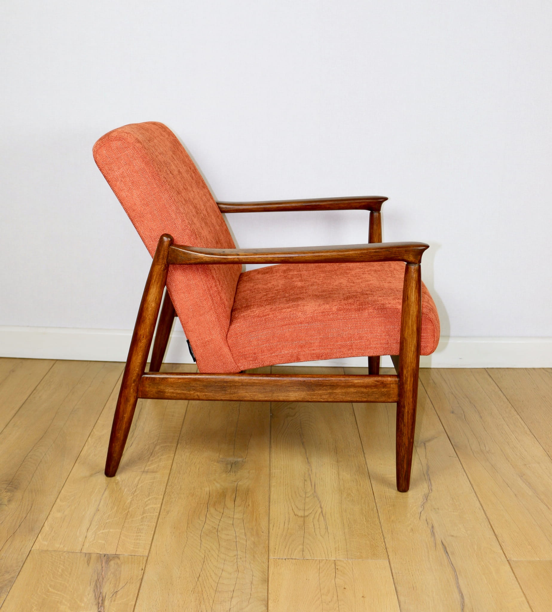 Fotel GFM-64, proj. Edmund Homa z lat 70 terakota brick