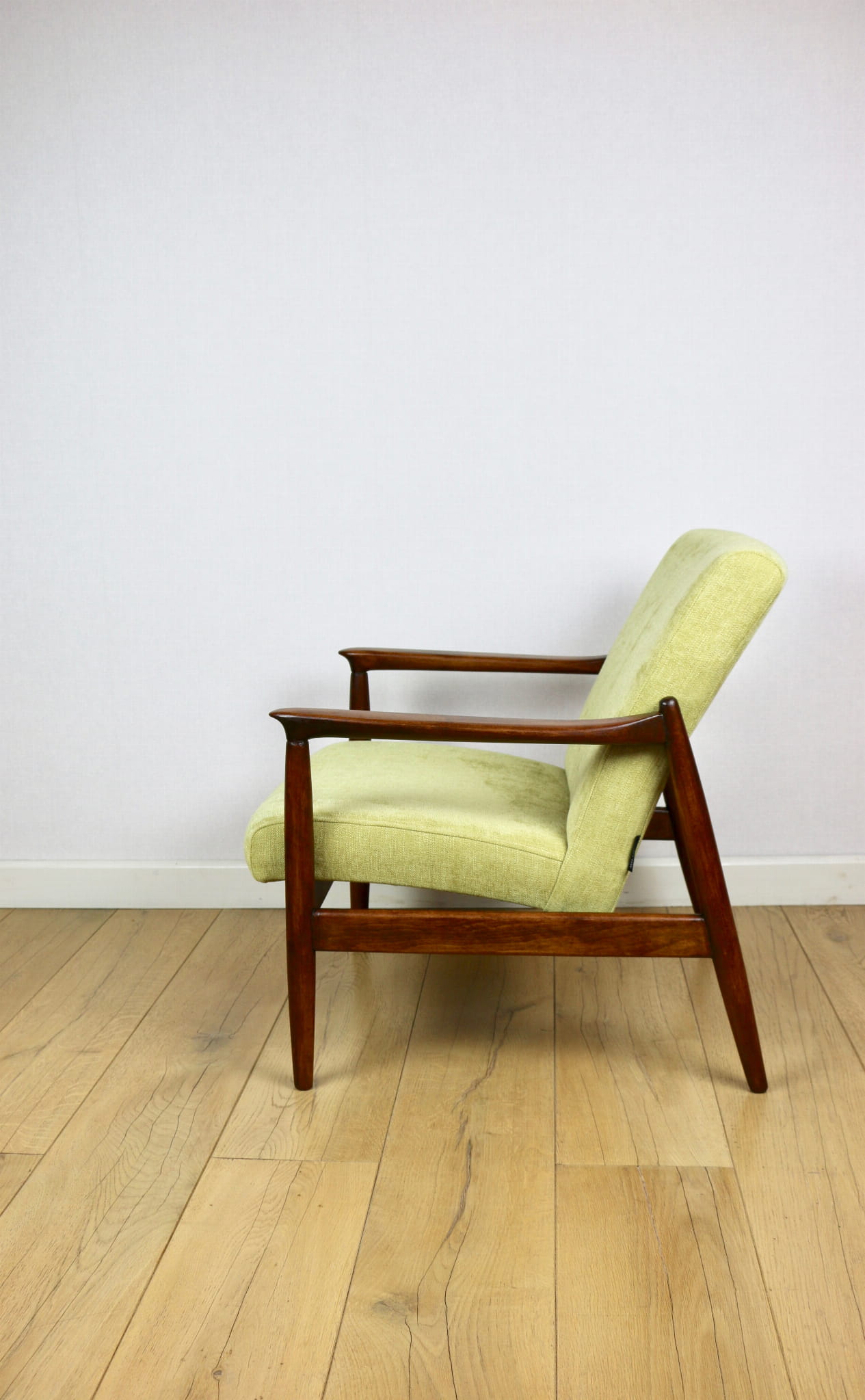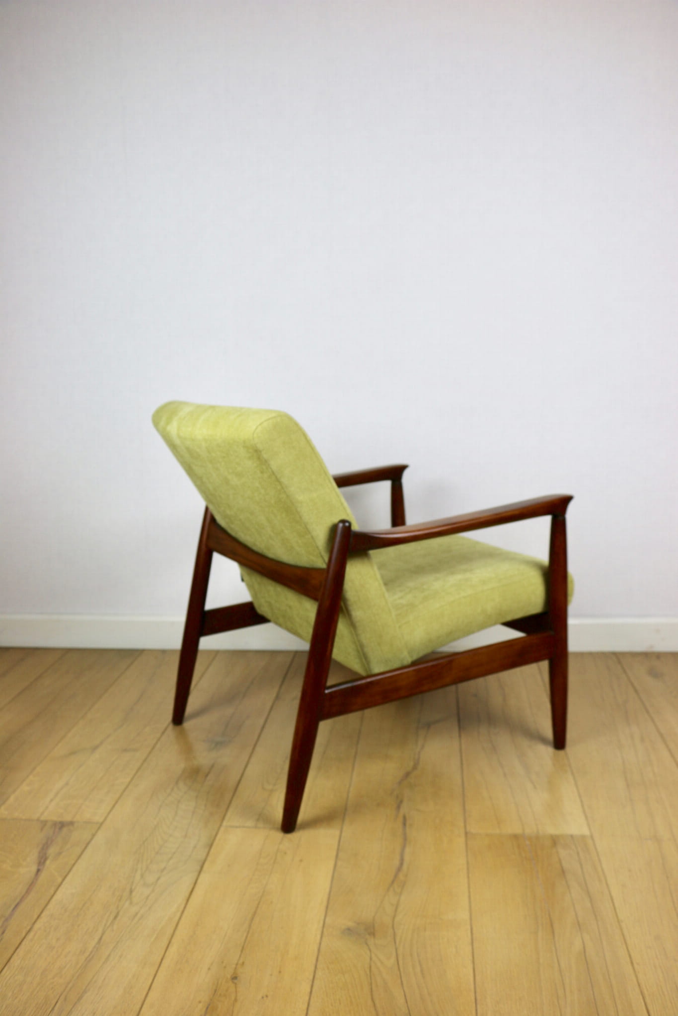 Ten wyjątkowy model GFM-64 to ikona polskiego wzornictwa, zaprojektowana przez Edmunda Homę. Fotel przeszedł kompleksową renowację – zachowując oryginalny charakter, został przywrócony do doskonałej kondycji.