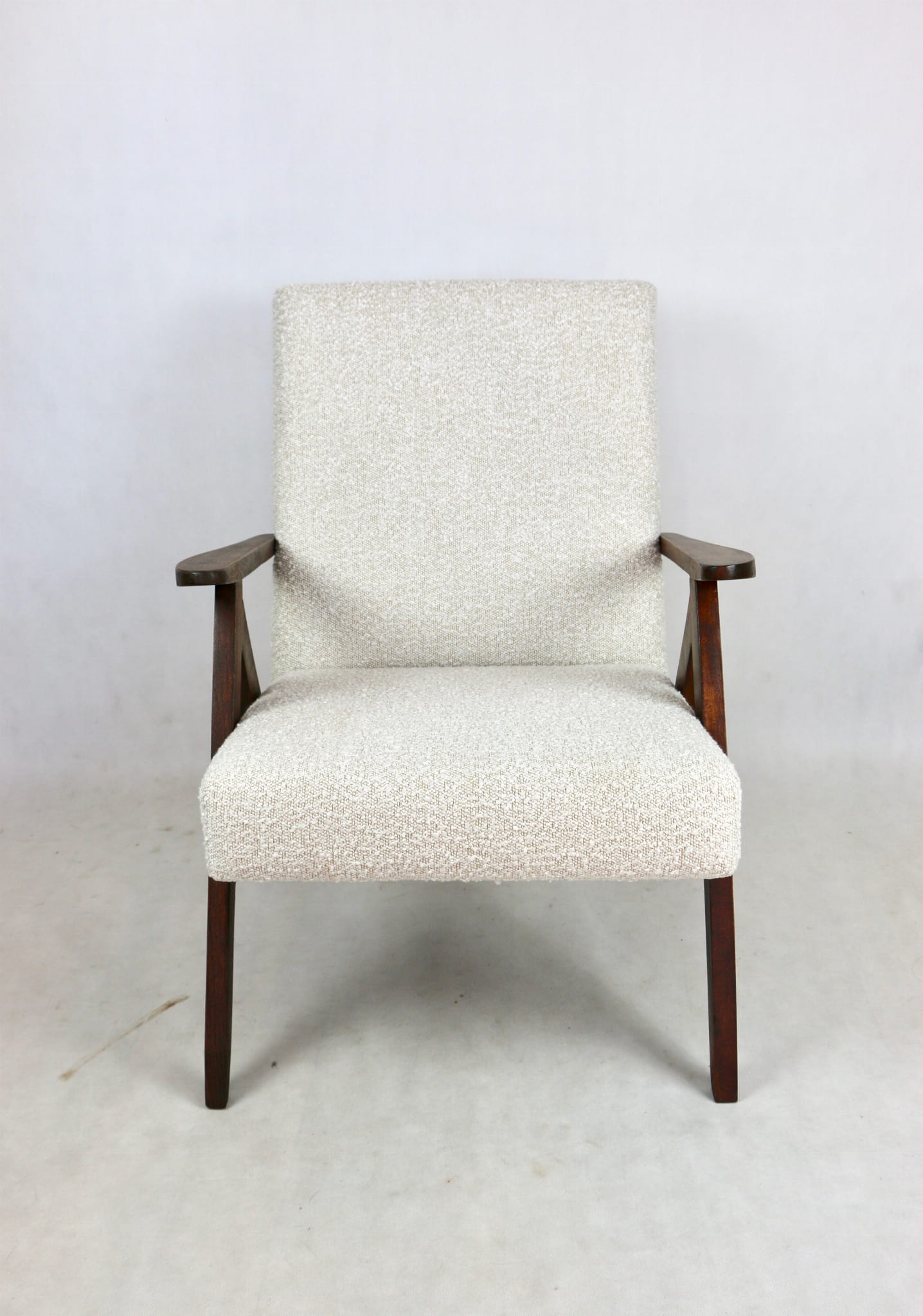 Fotel VAR B-310 – oryginalny model z lat 70., całkowicie odrestaurowany z dbałością o każdy detal w tkaninie strukturalnej bouclé