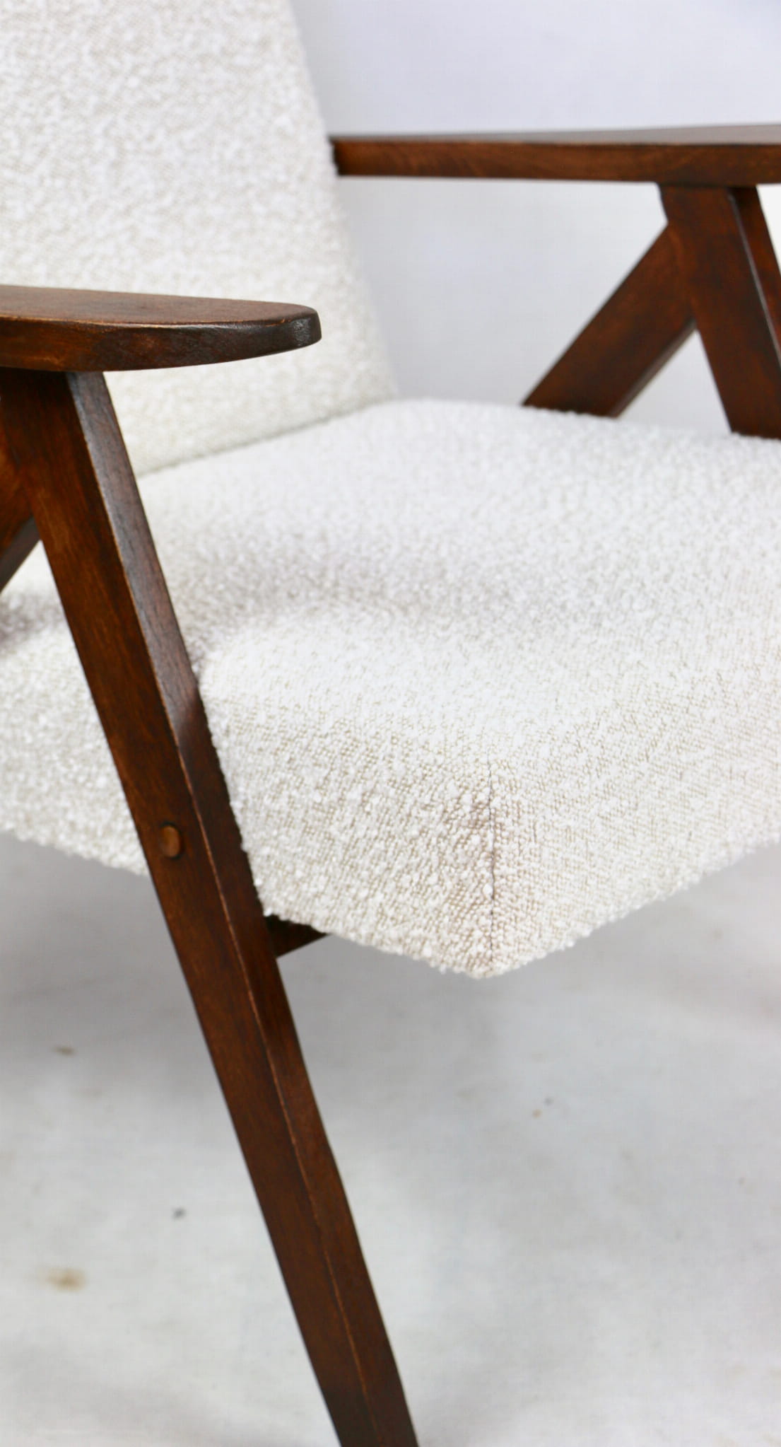 Fotel Vintage B-310 VAR biały kremowy boucle lata 70te - dostępne 2 sztuki