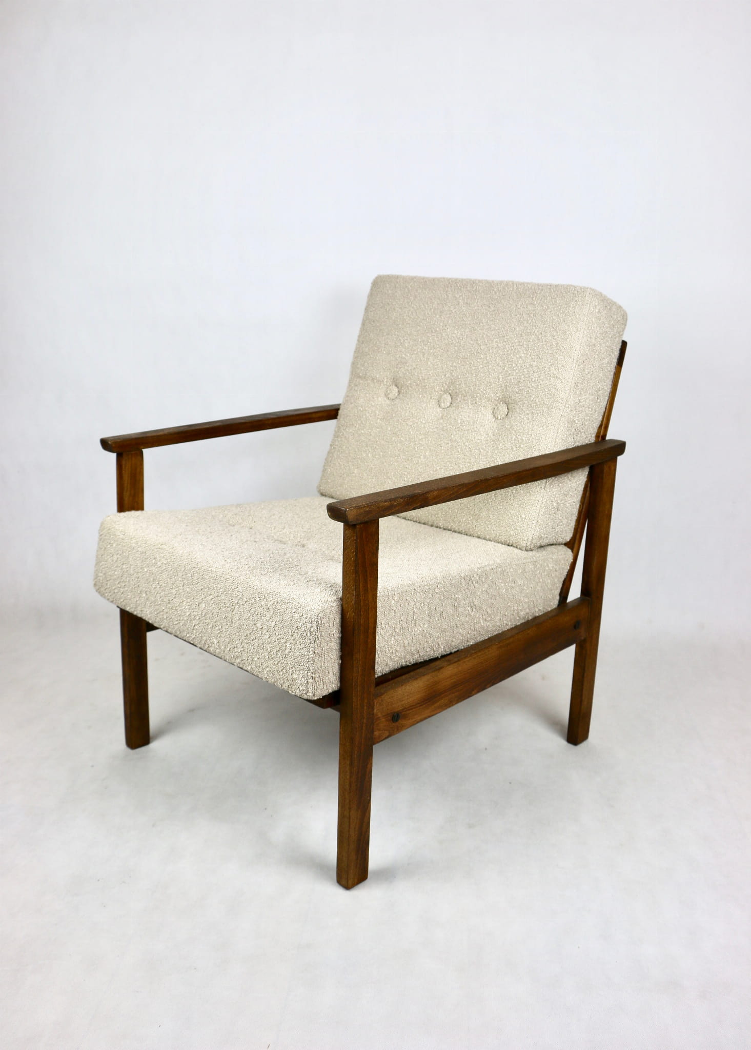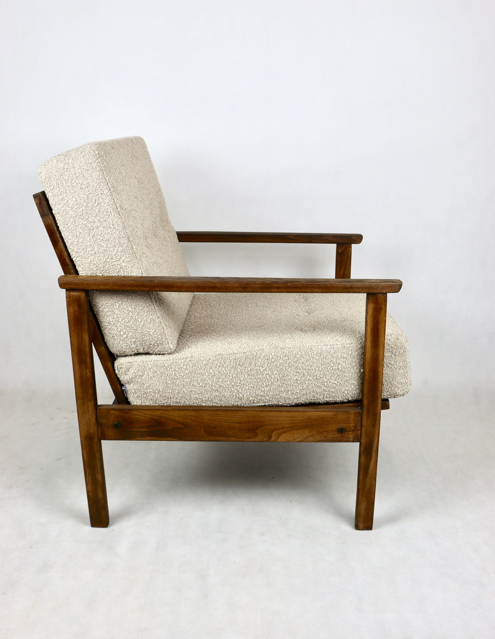 Fotel Vintage Loft beżowy Boucle na zdejmowanych poduszkach - dostępne 2 sztuki