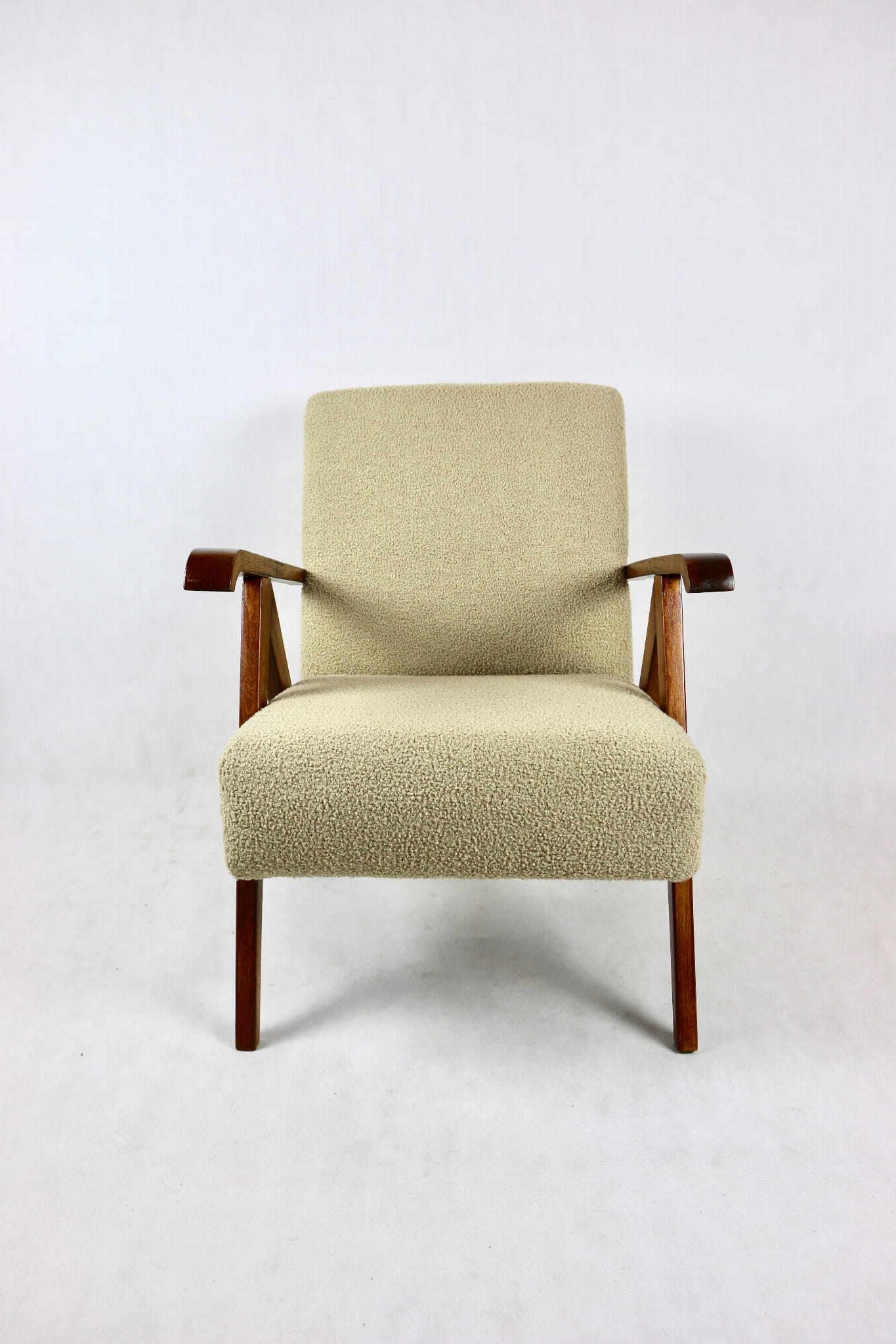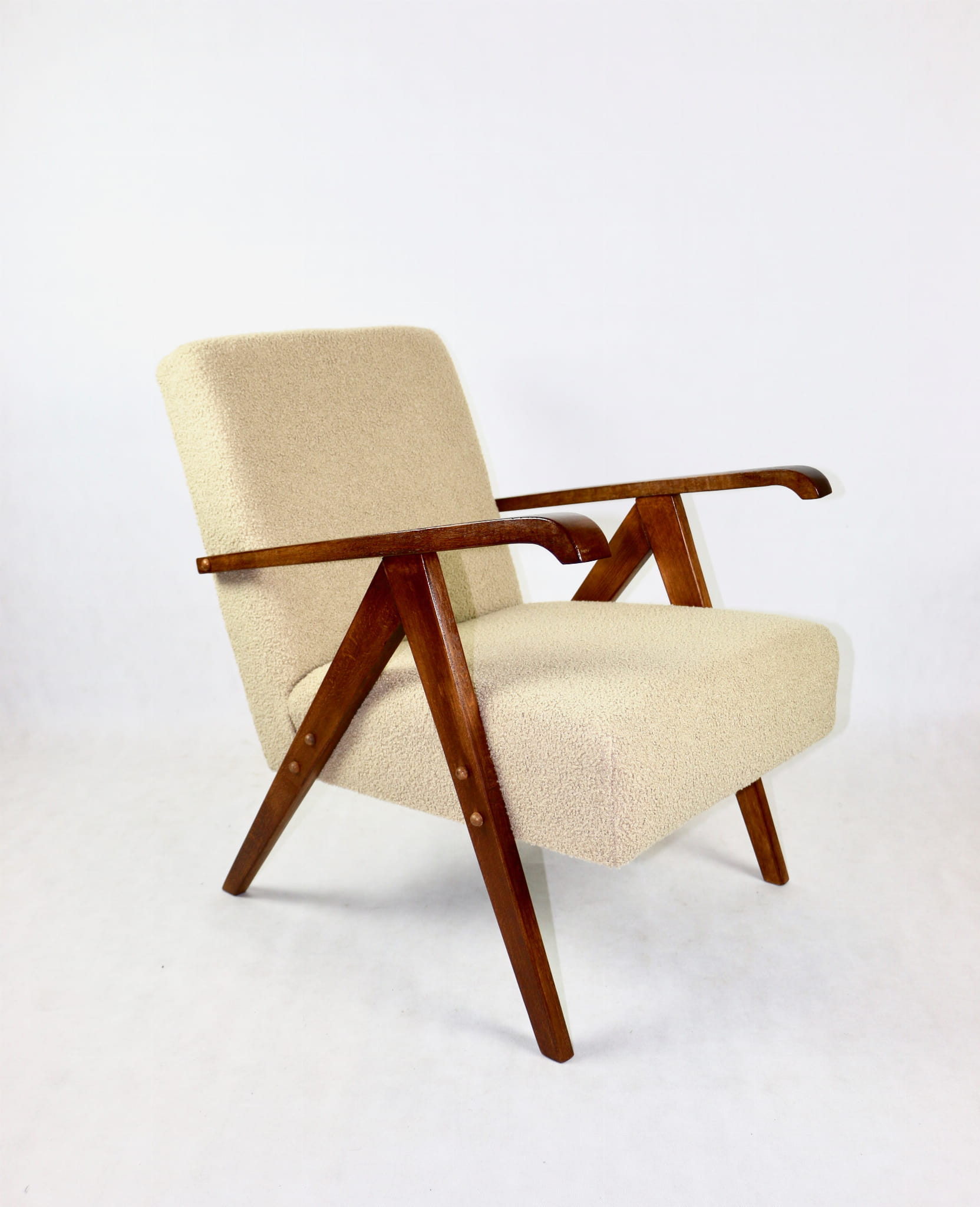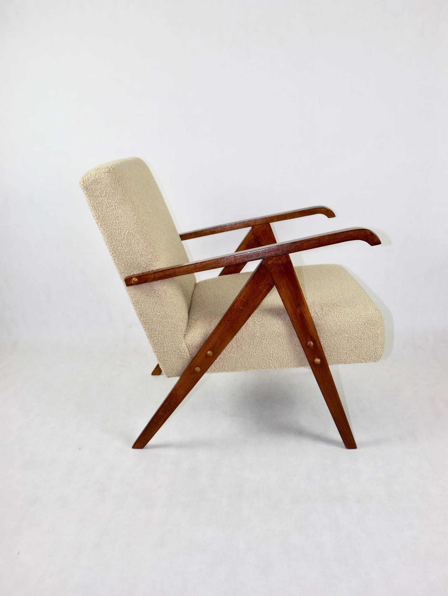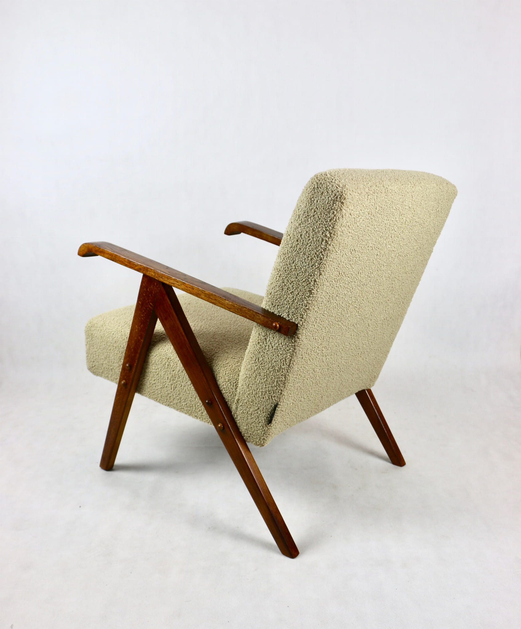 Fotel Vintage jak VAR beżowe boucle