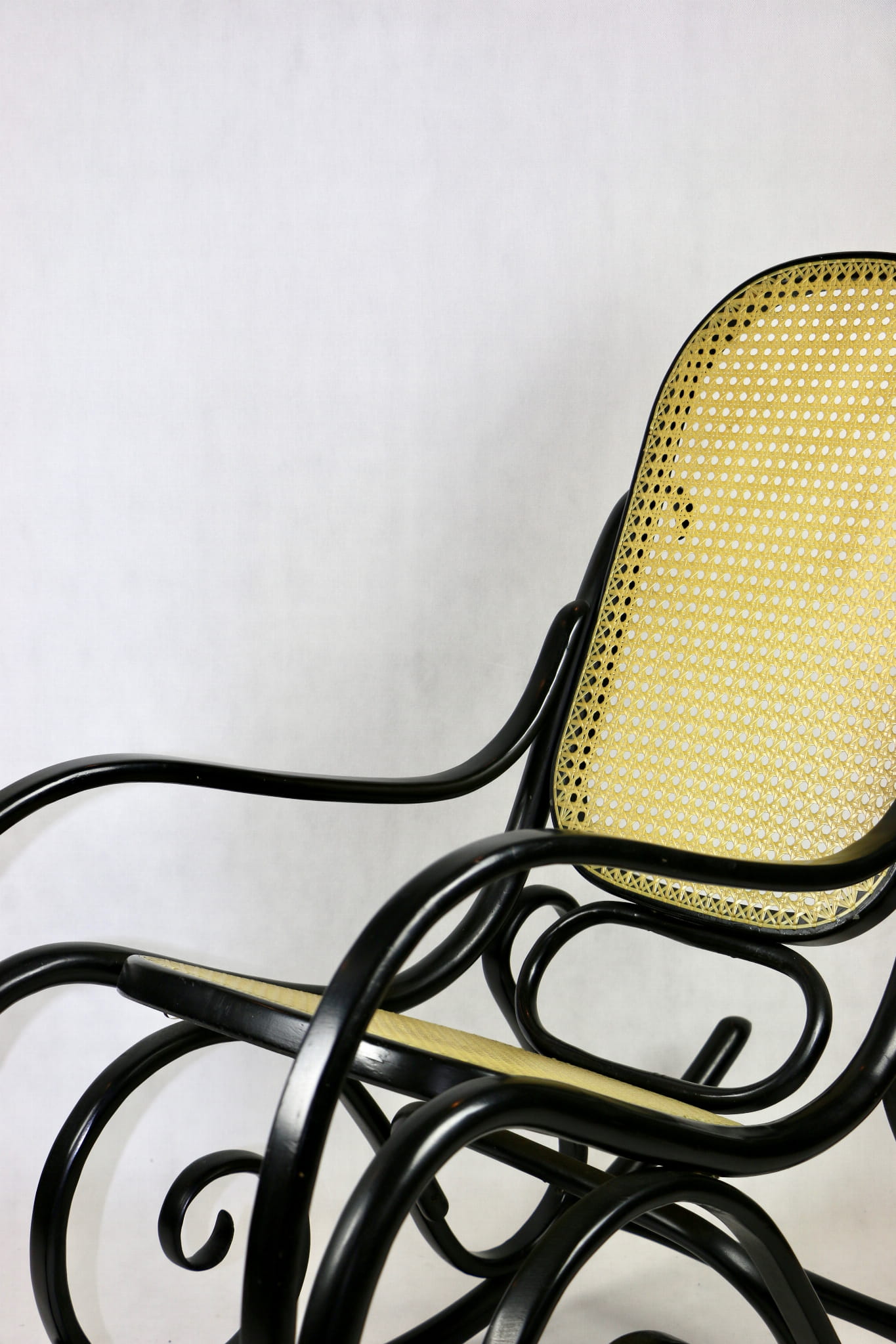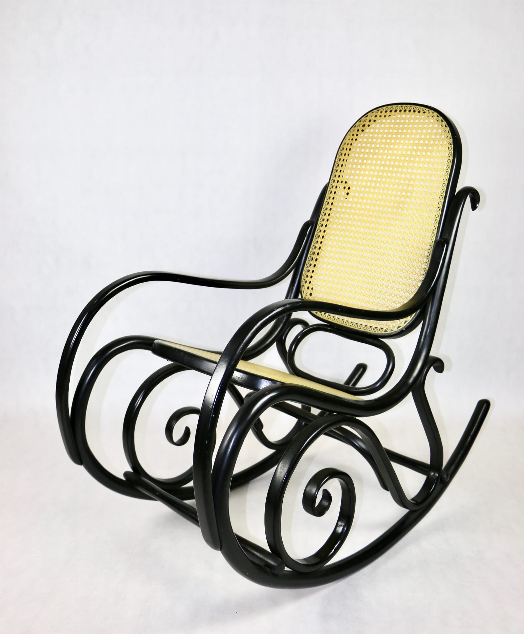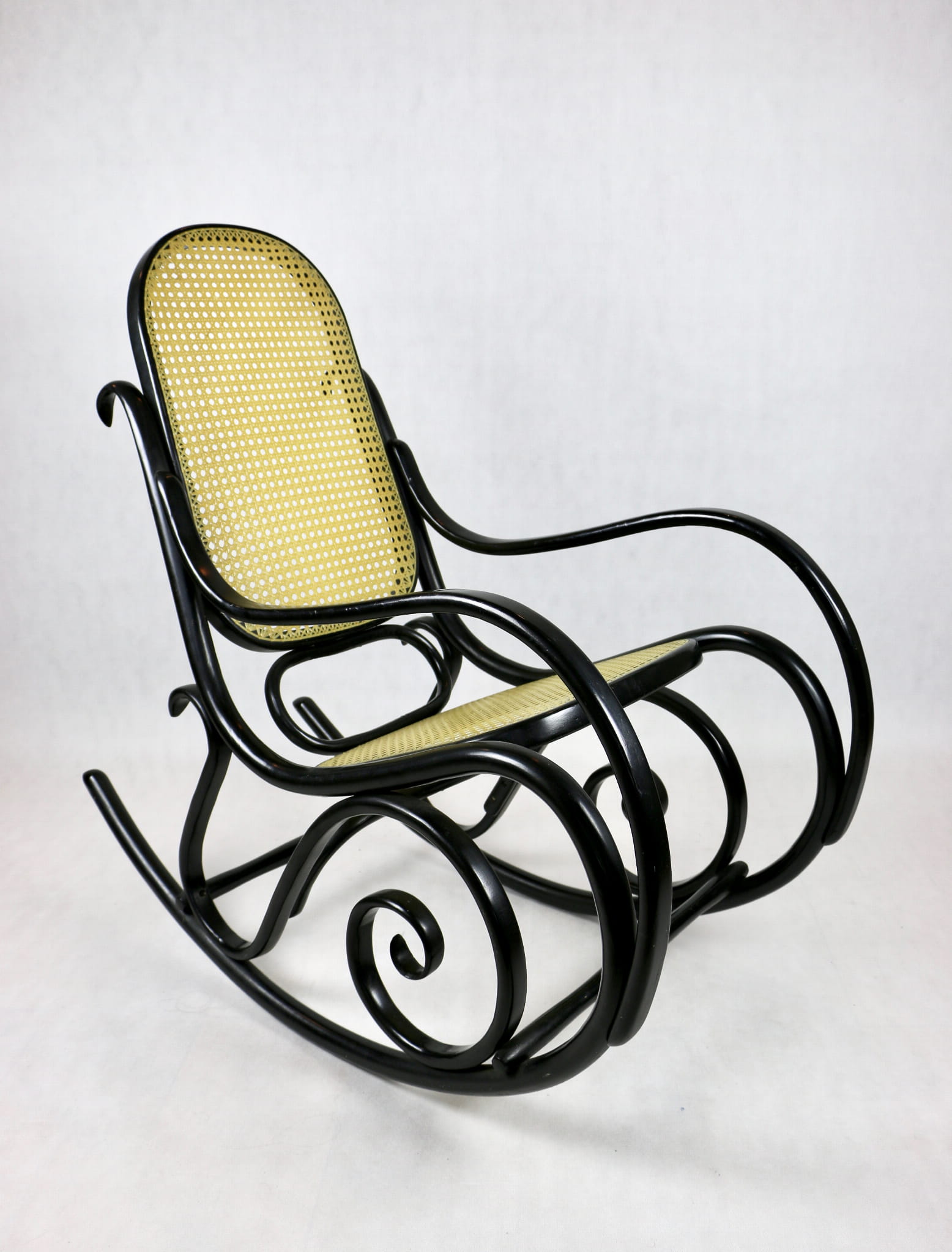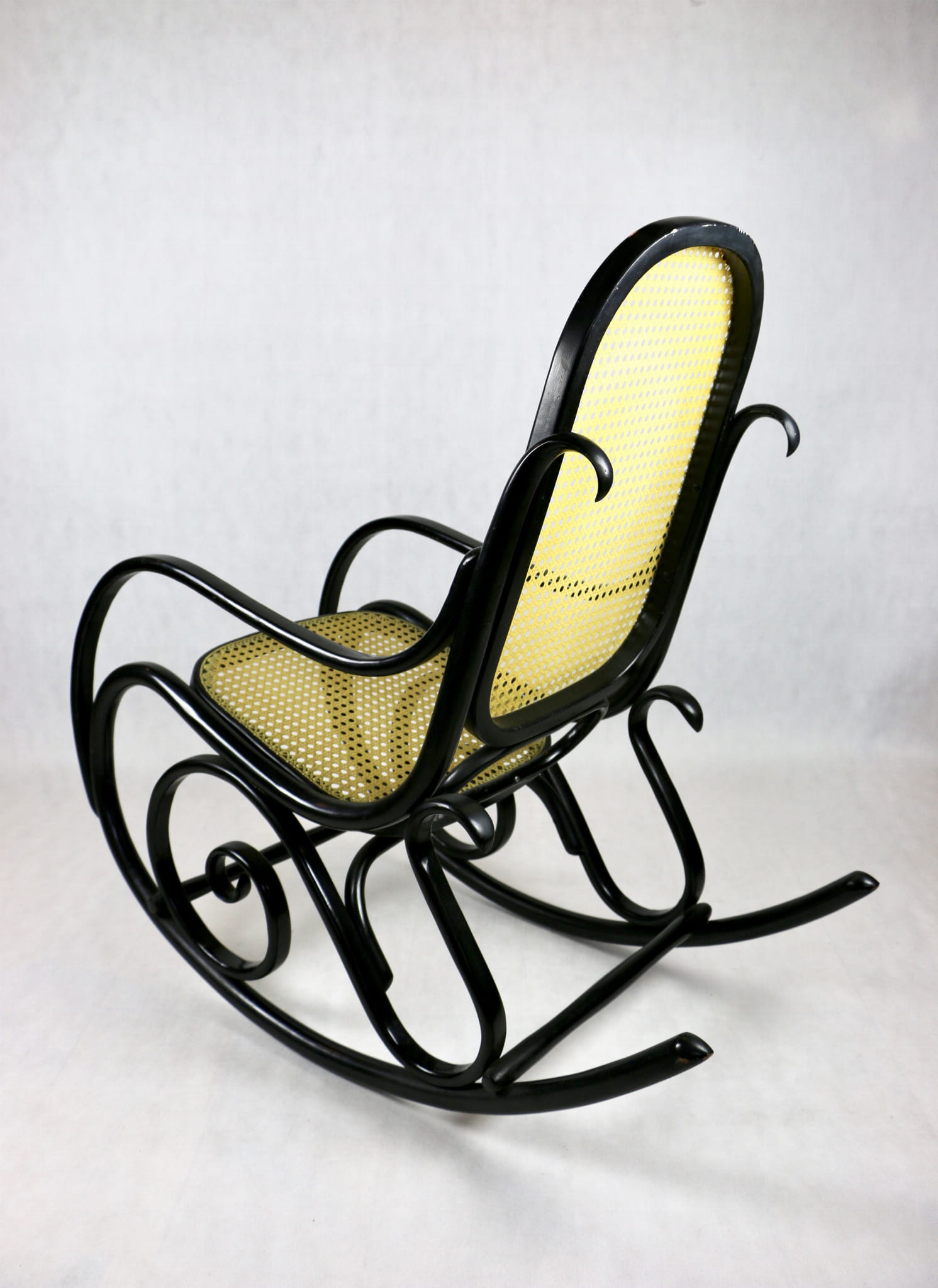 Fotel bujany Thonet na biegunach, lata 70 w kolorze czarnym. Oryginalny zachowany w idealnym stanie - jak nowy.