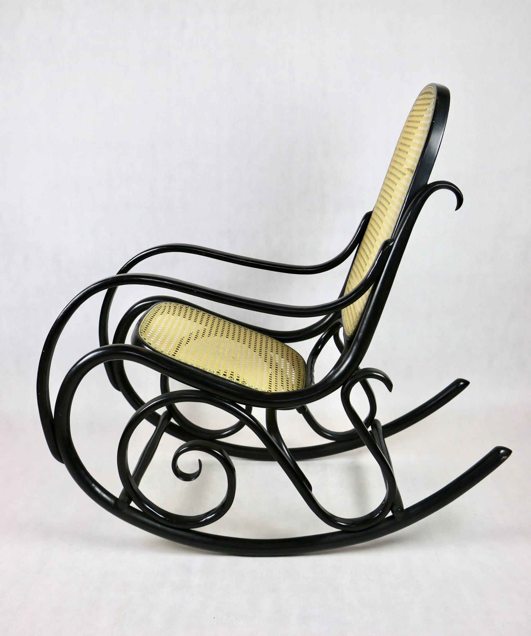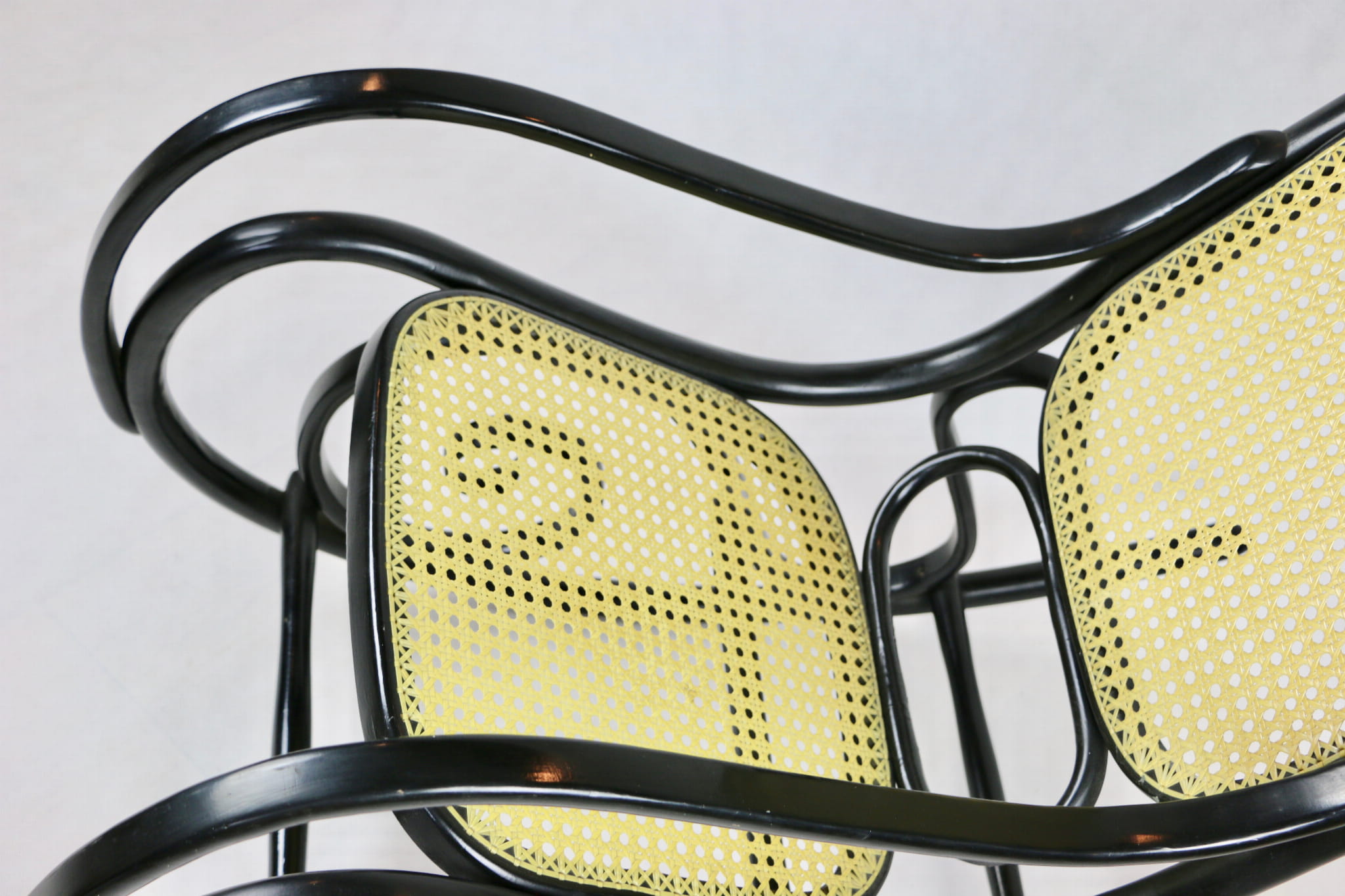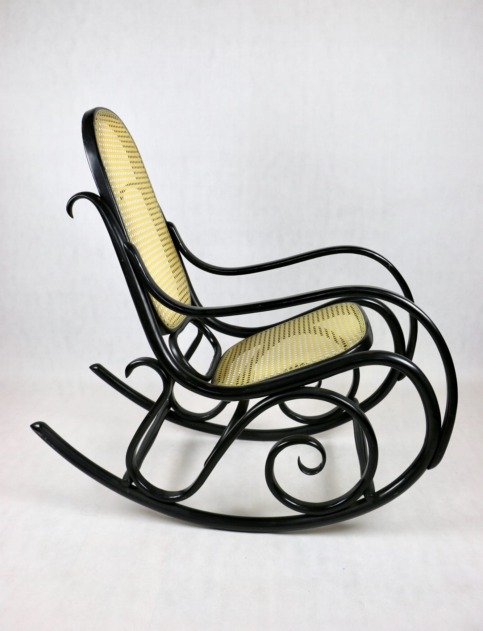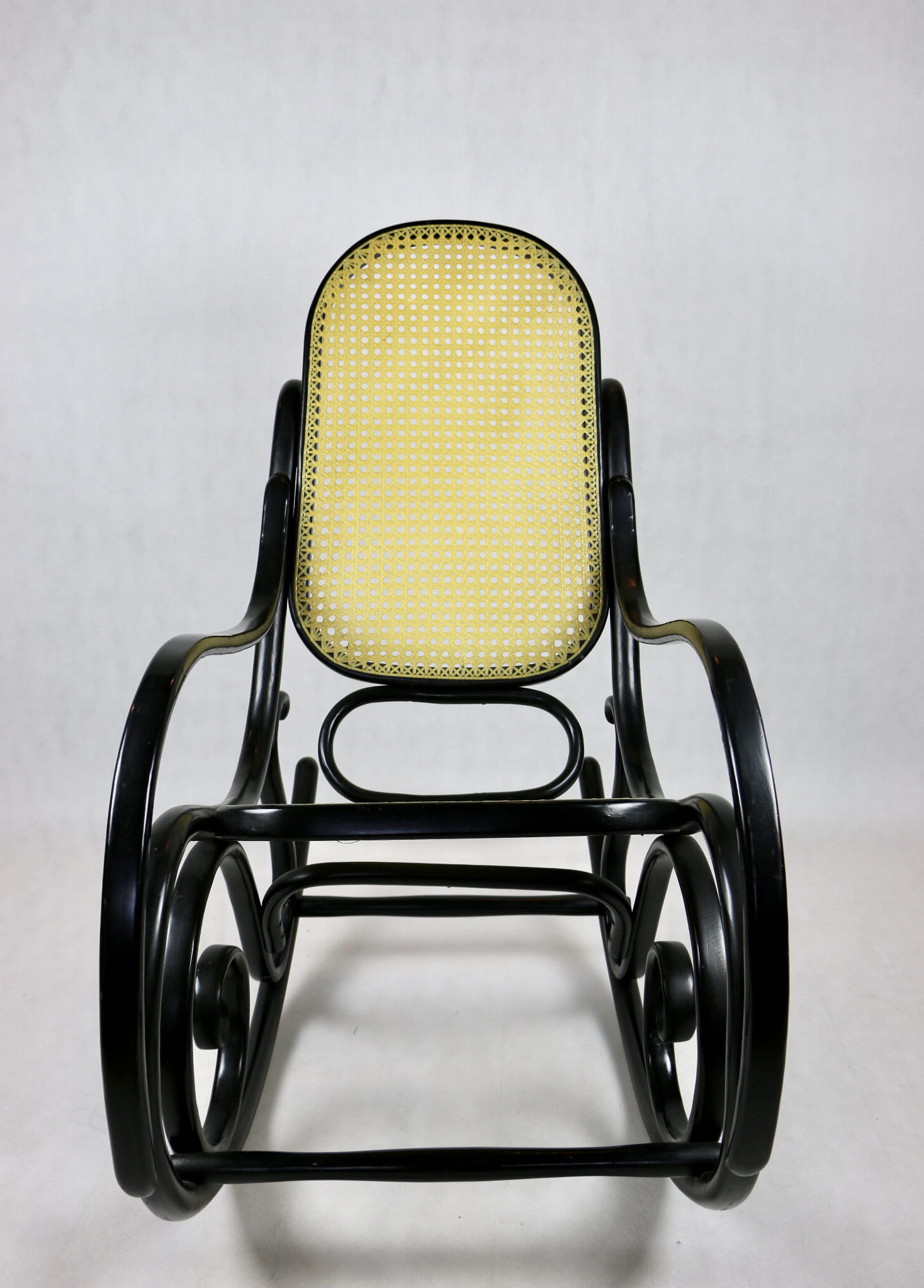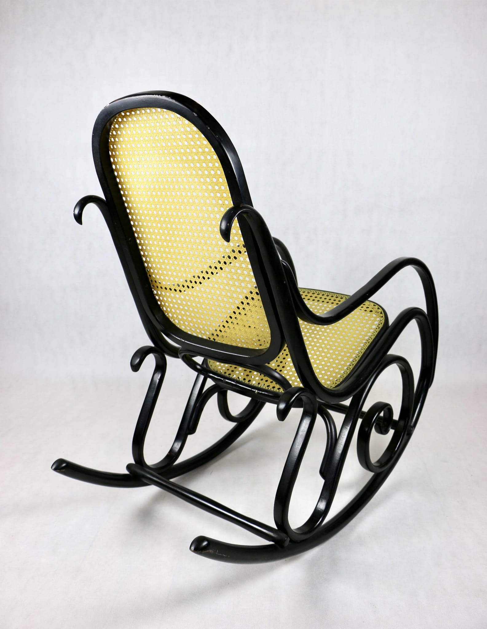 Fotel bujany Thonet na biegunach, lata 70 w kolorze czarnym. Oryginalny zachowany w idealnym stanie - jak nowy.