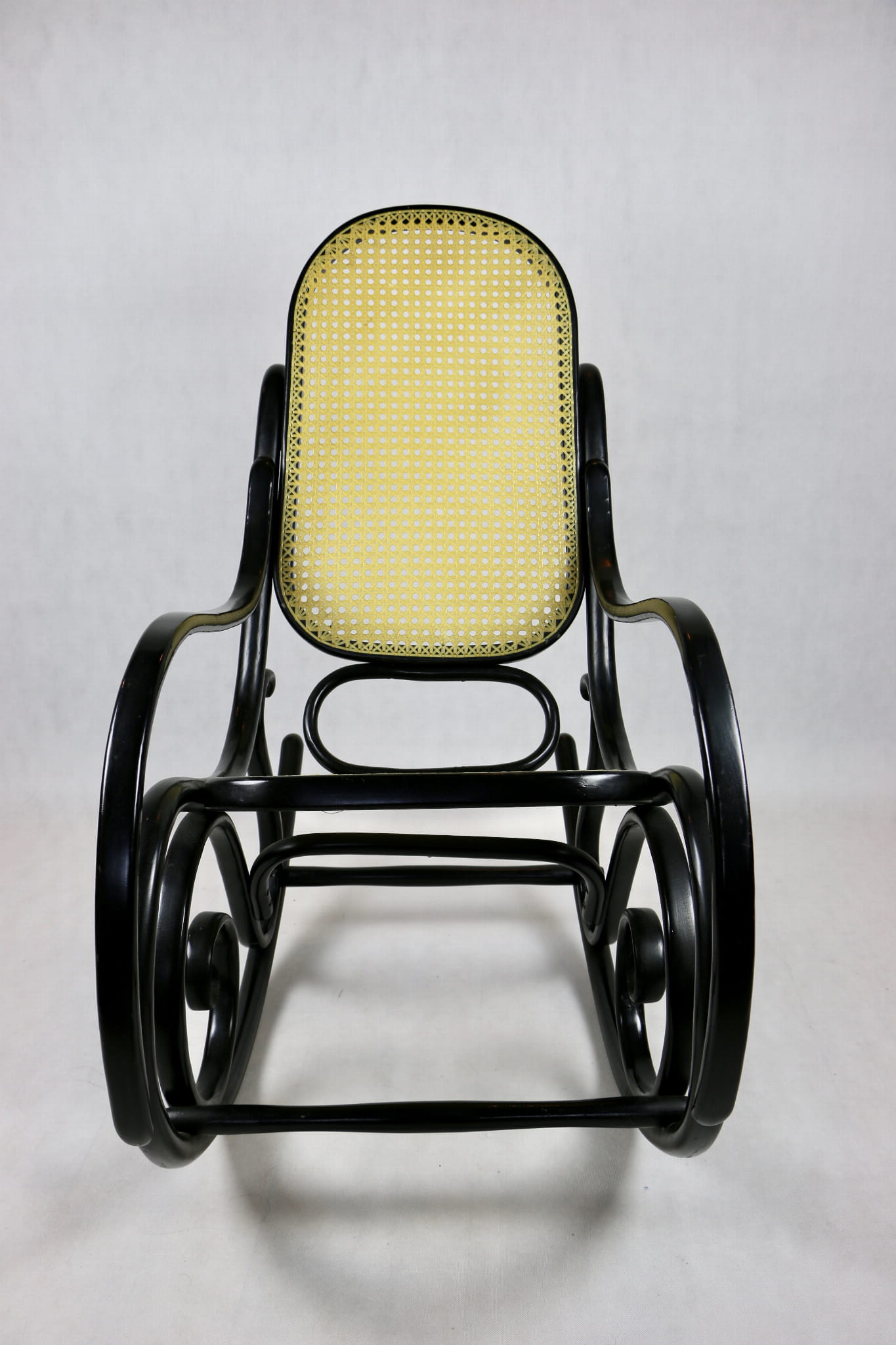 Fotel bujany Thonet na biegunach czarny, oryginalny, lata 70
