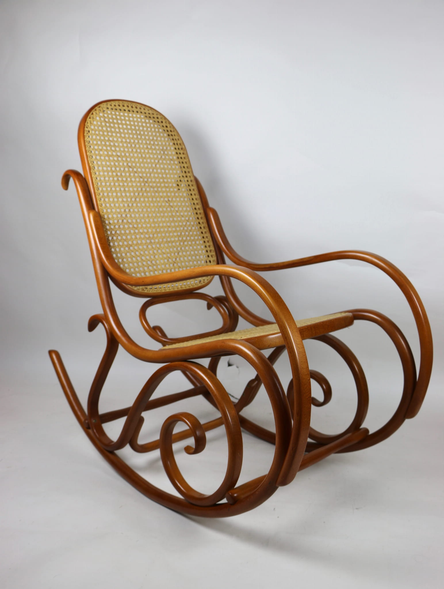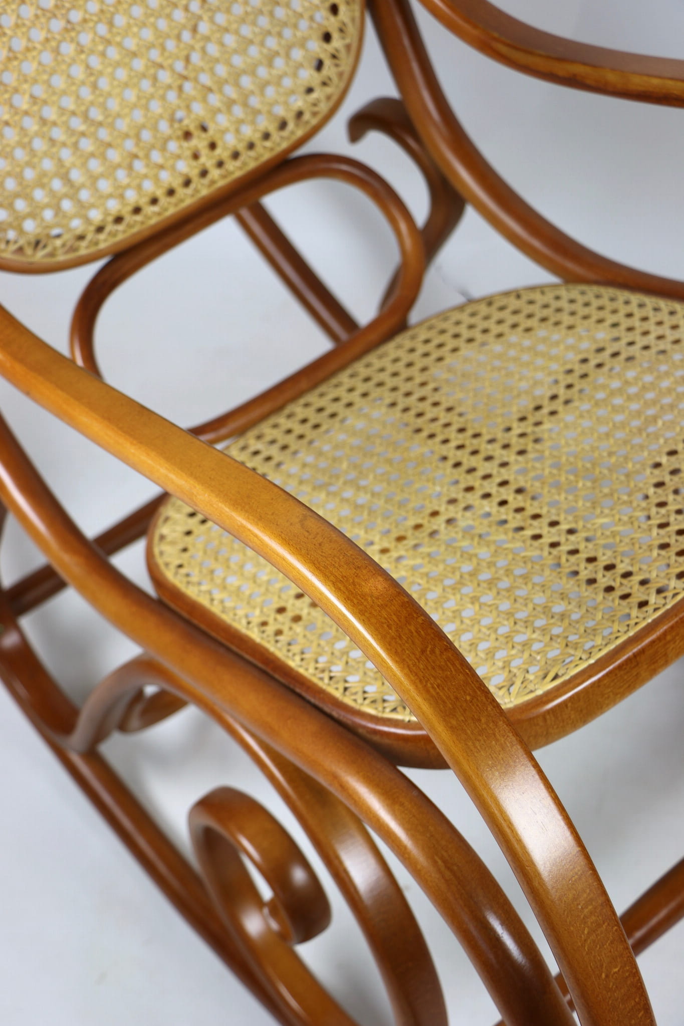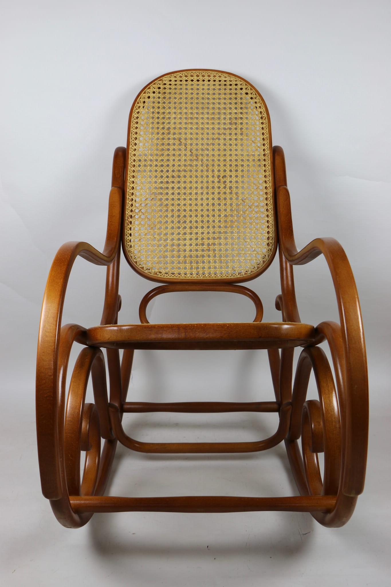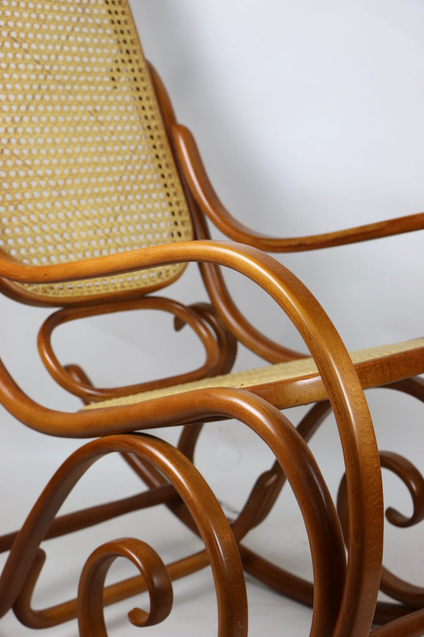 Fotel bujany Thonet na biegunach, lata 70 w kolorze jasnym brązowym. Oryginalny zachowany w idealnym stanie.