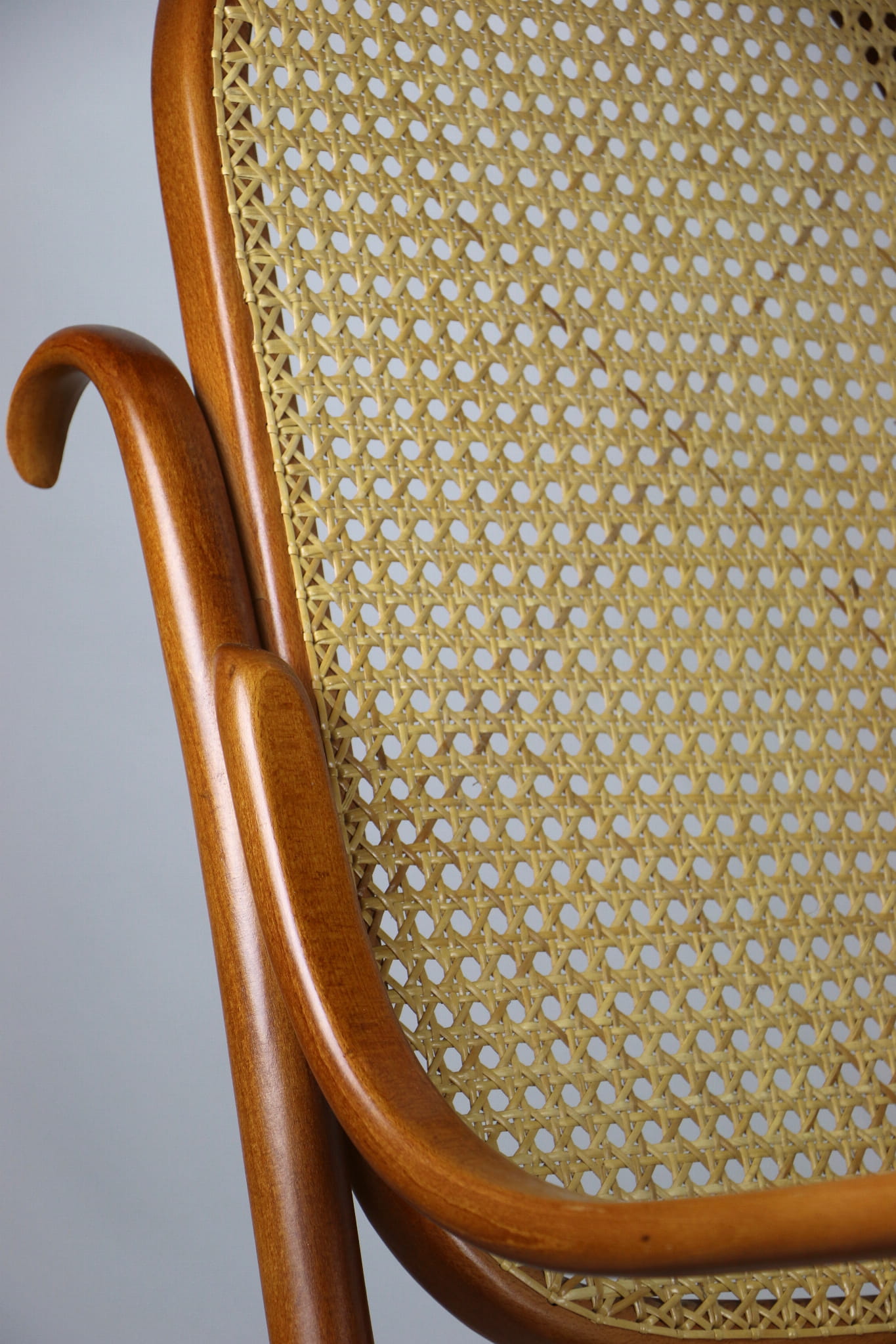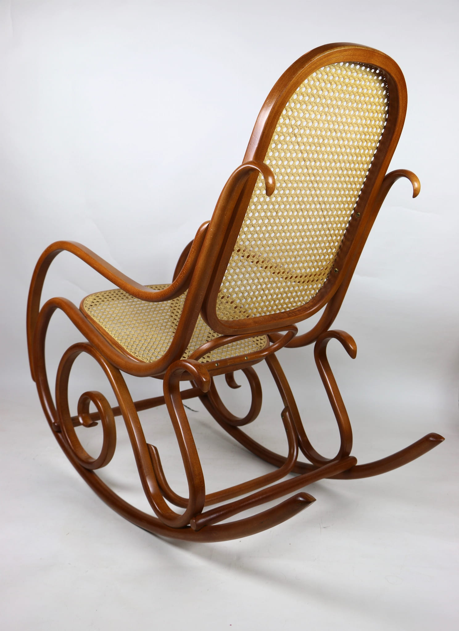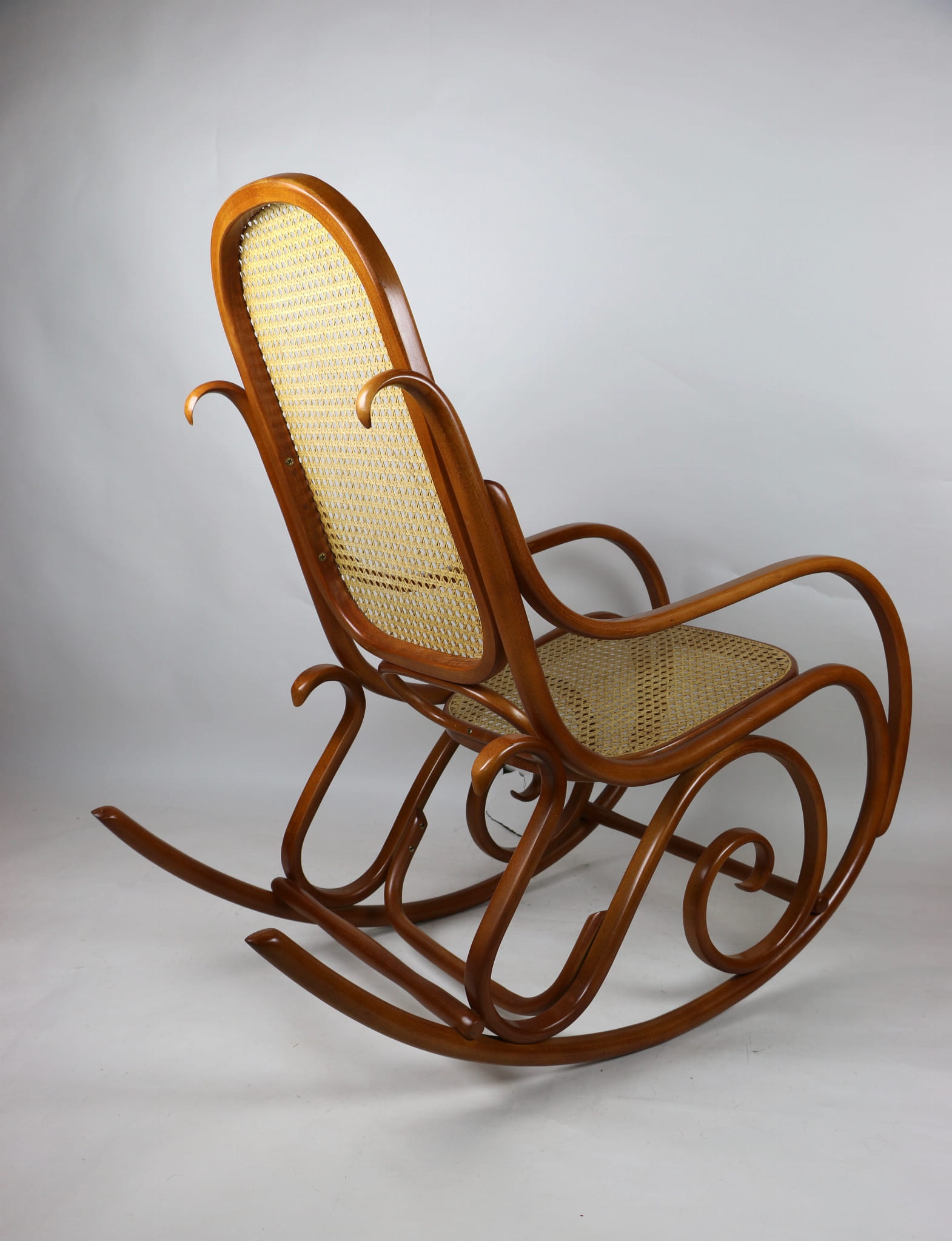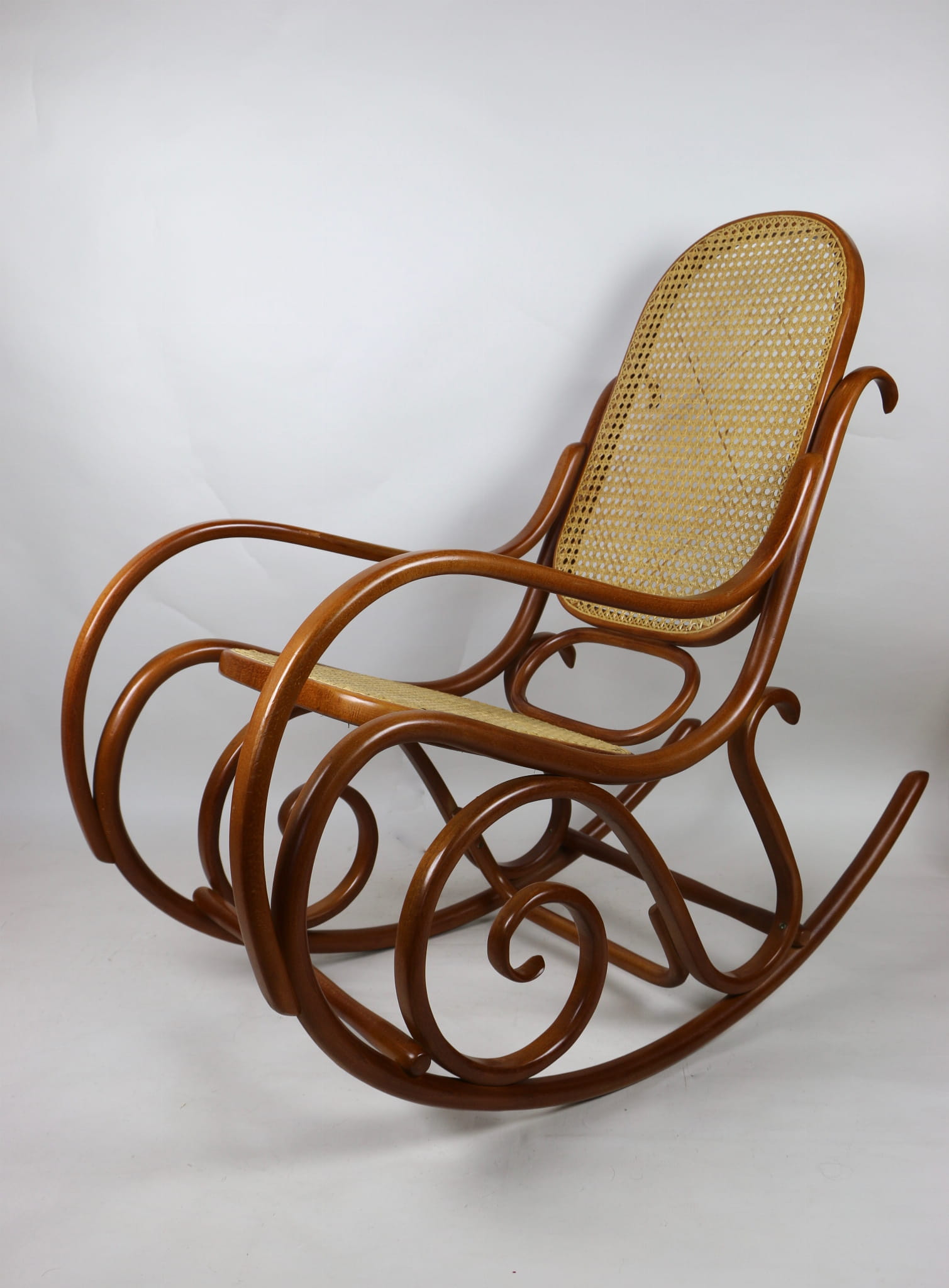 Fotel bujany Thonet na biegunach, lata 70 w kolorze jasnym brązowym. Oryginalny zachowany w idealnym stanie.