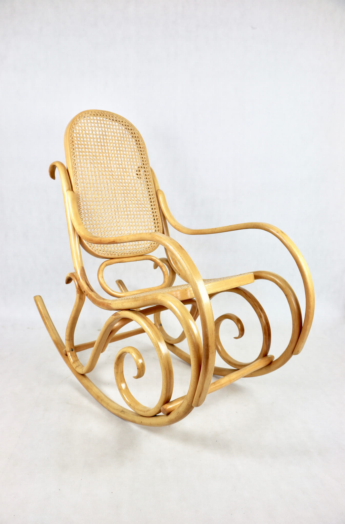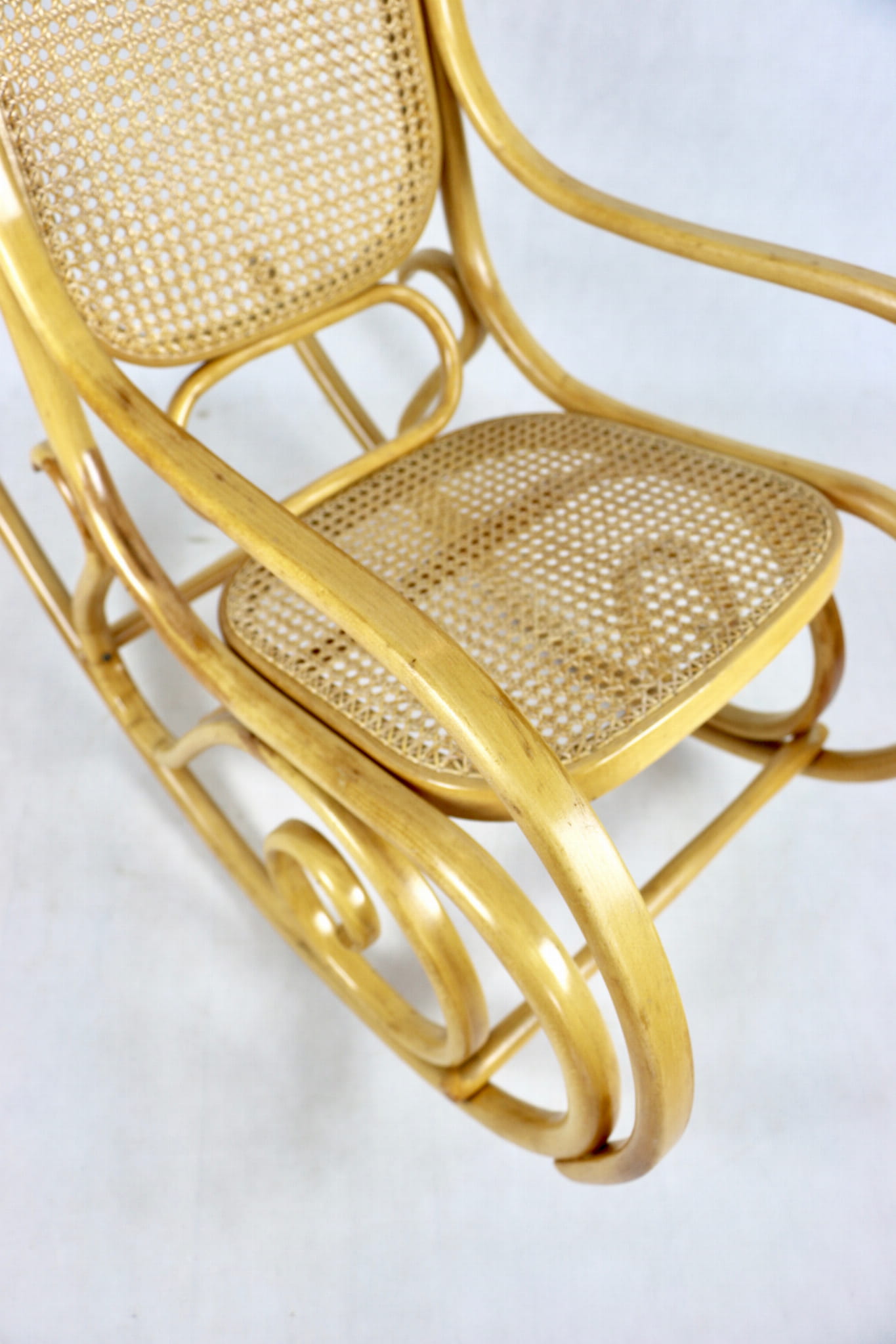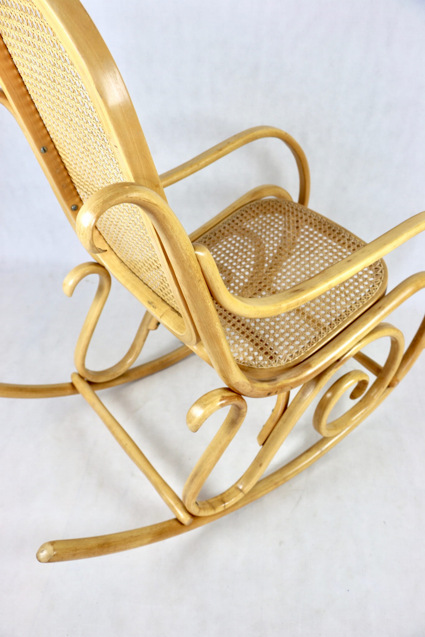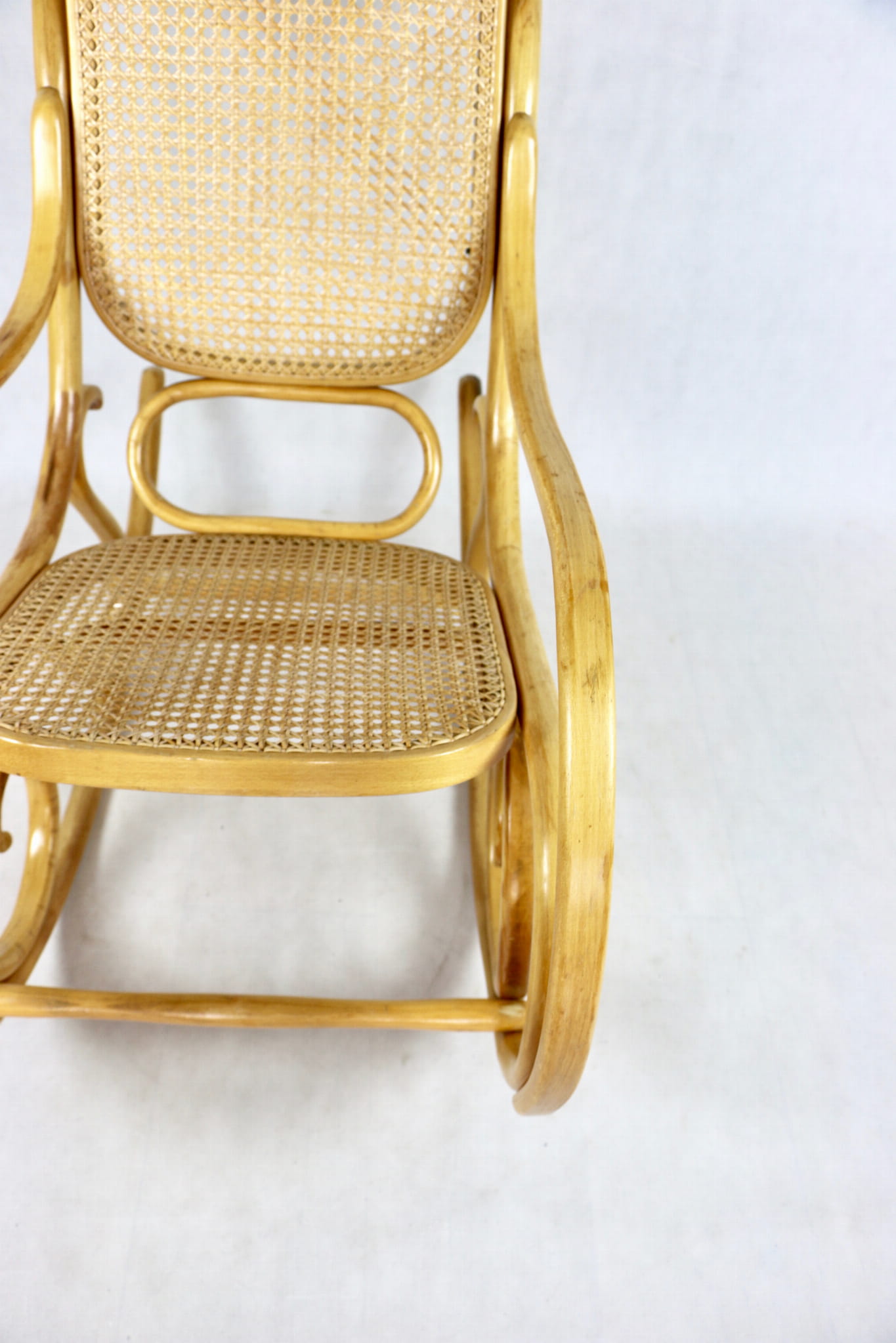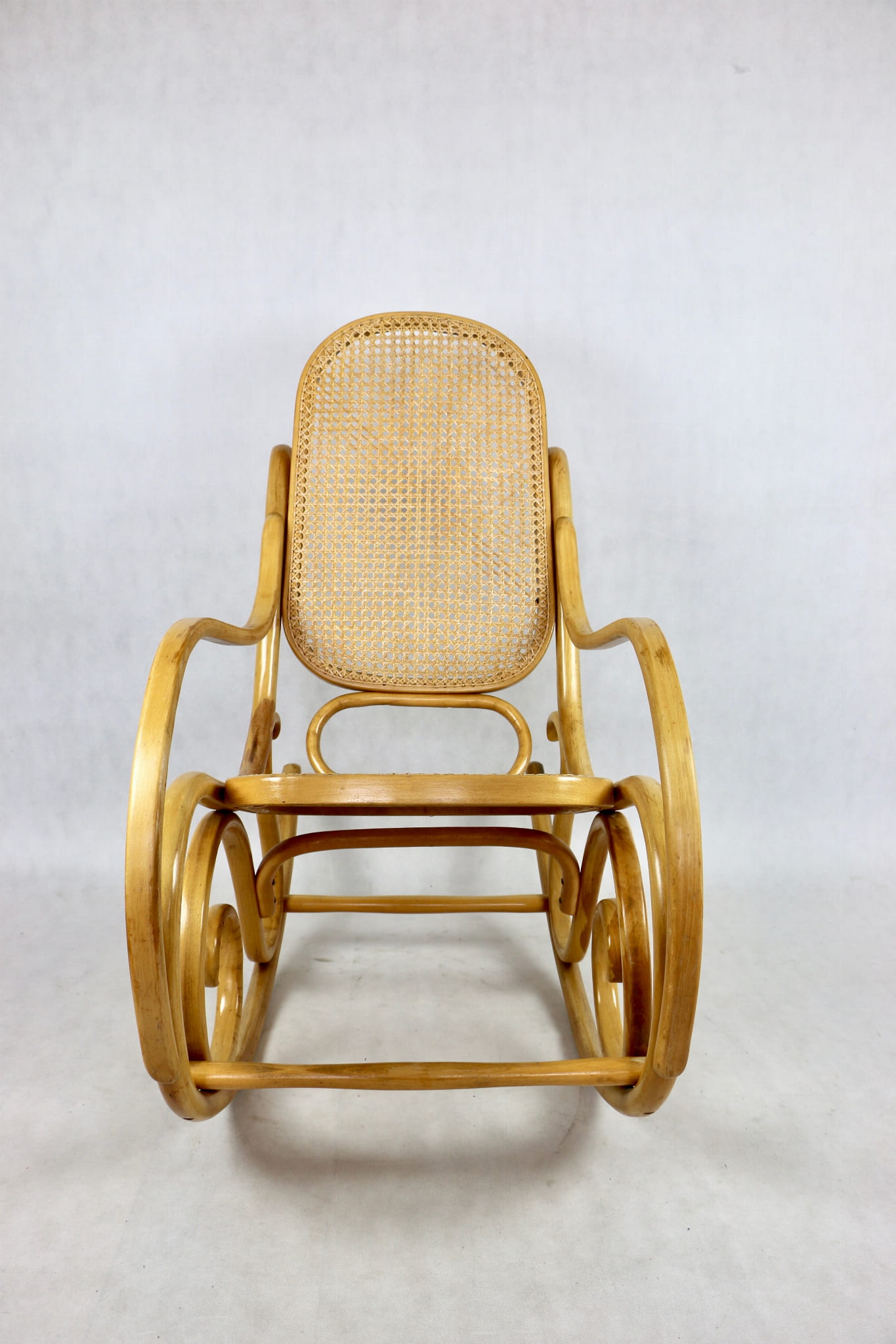 Fotel bujany na biegunach jasne drewno, oryginalny, lata 70 - unikat