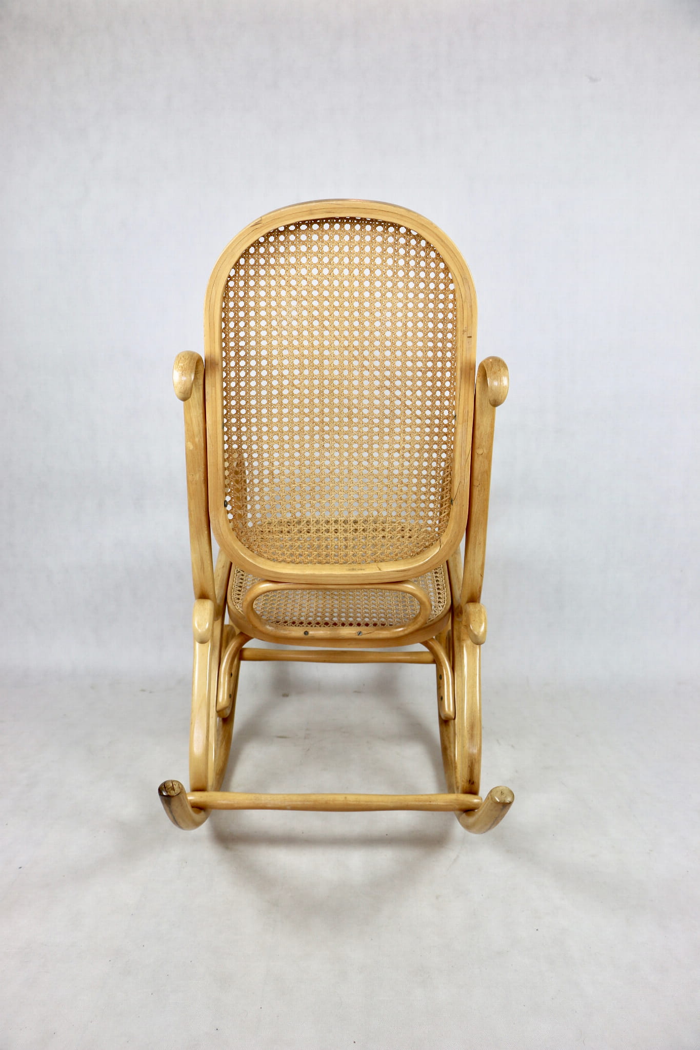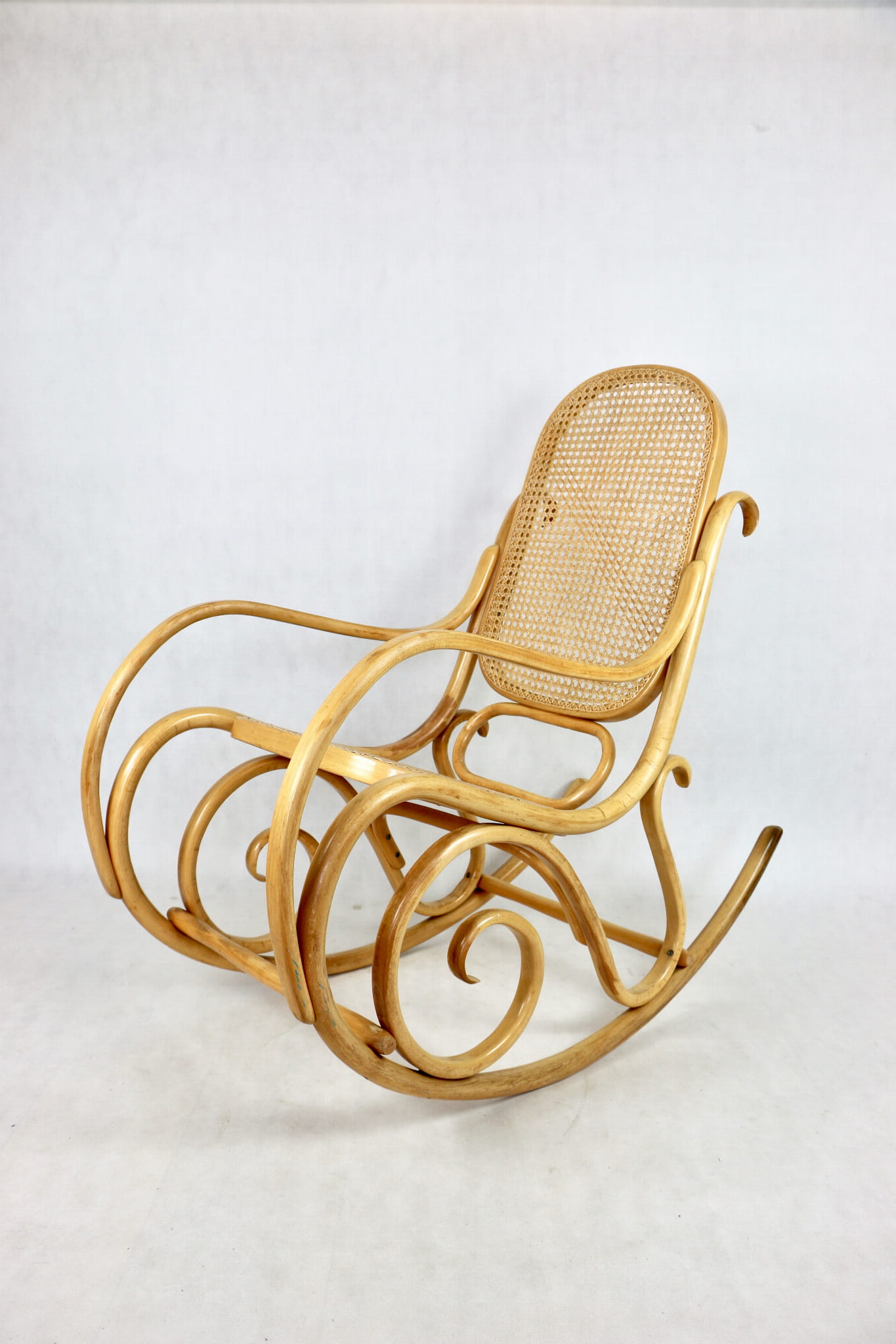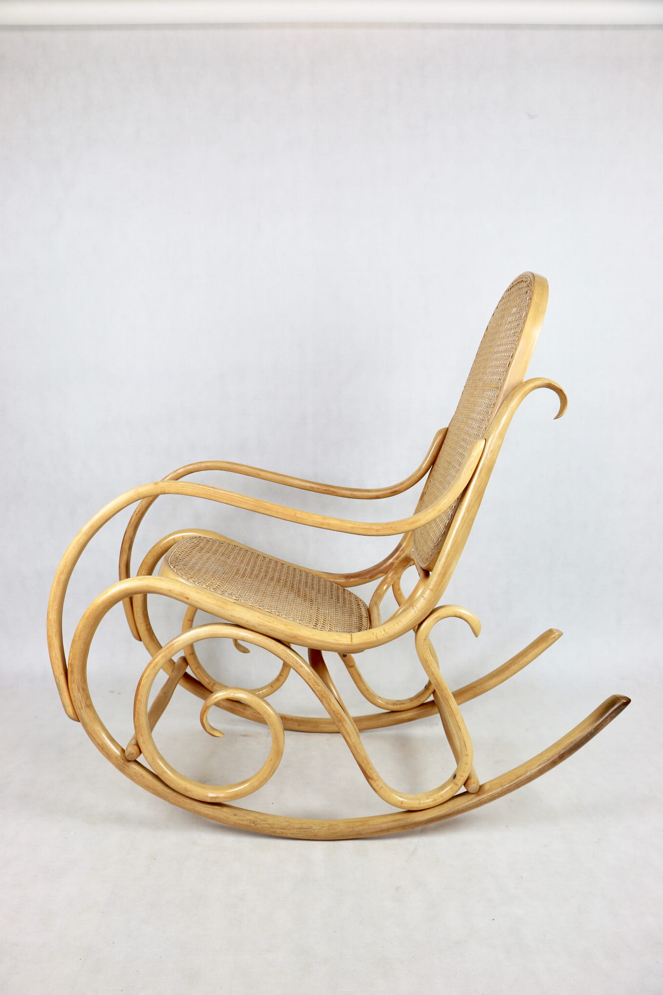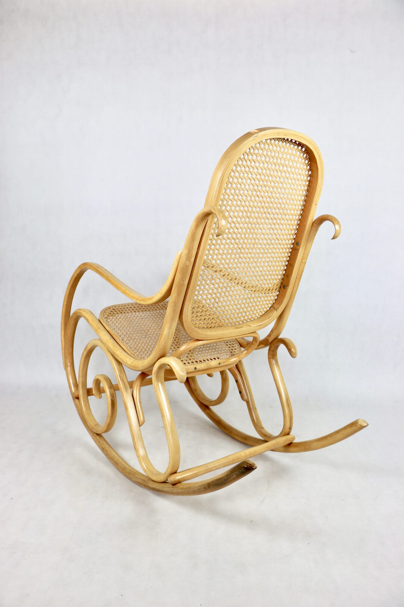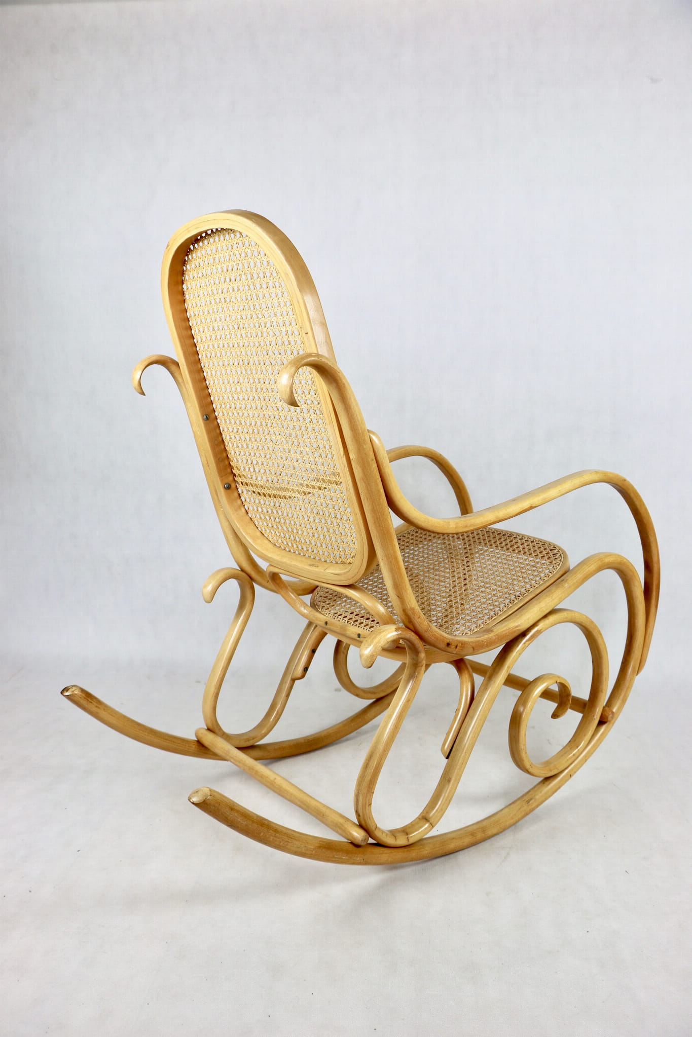Fotel bujany na biegunach jasne drewno, oryginalny, lata 70 - unikat