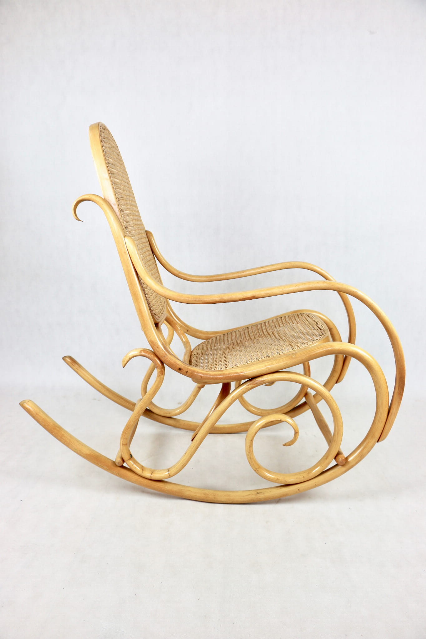 Fotel bujany na biegunach, jasne drewno bukowe, lata 70 - idealny
