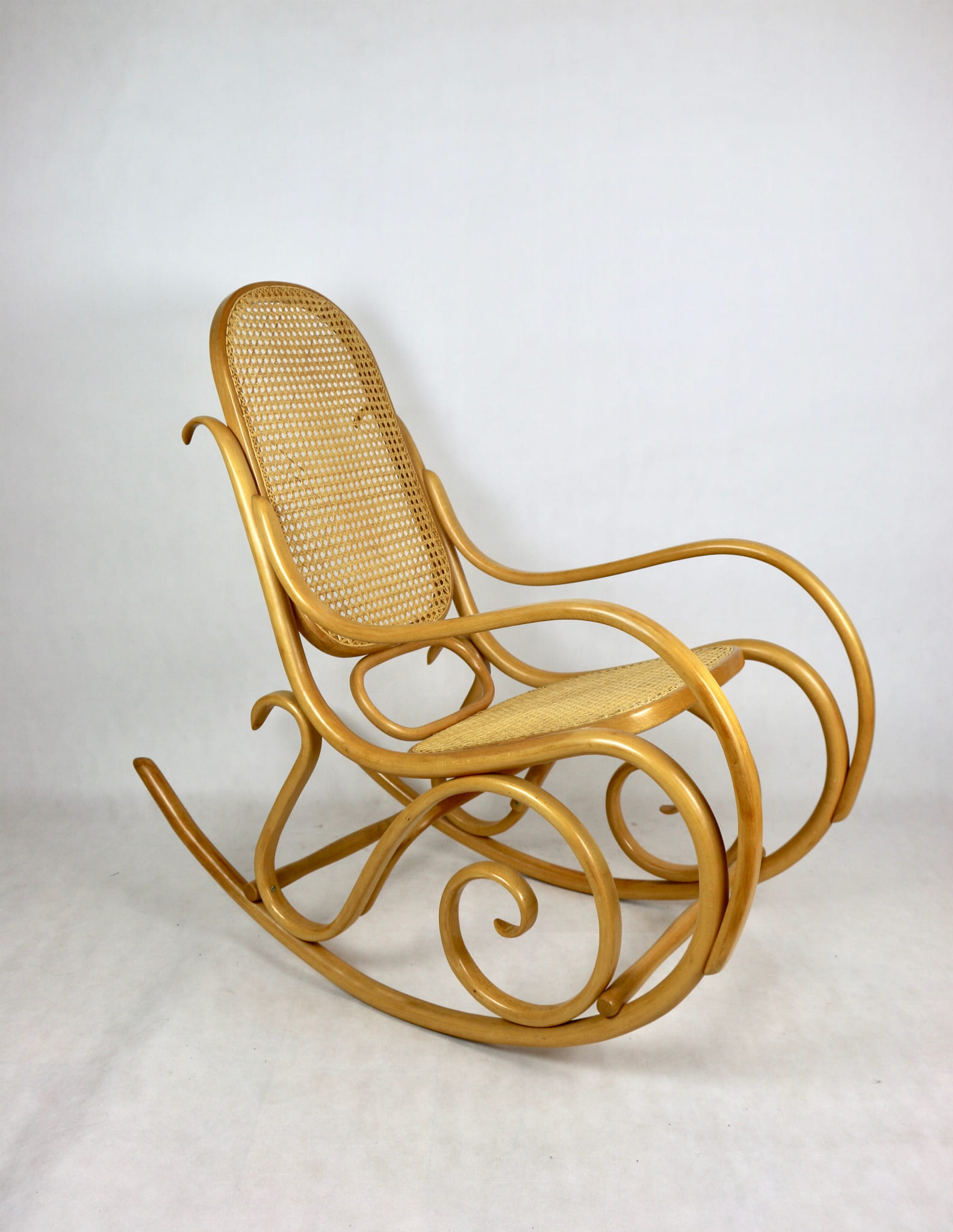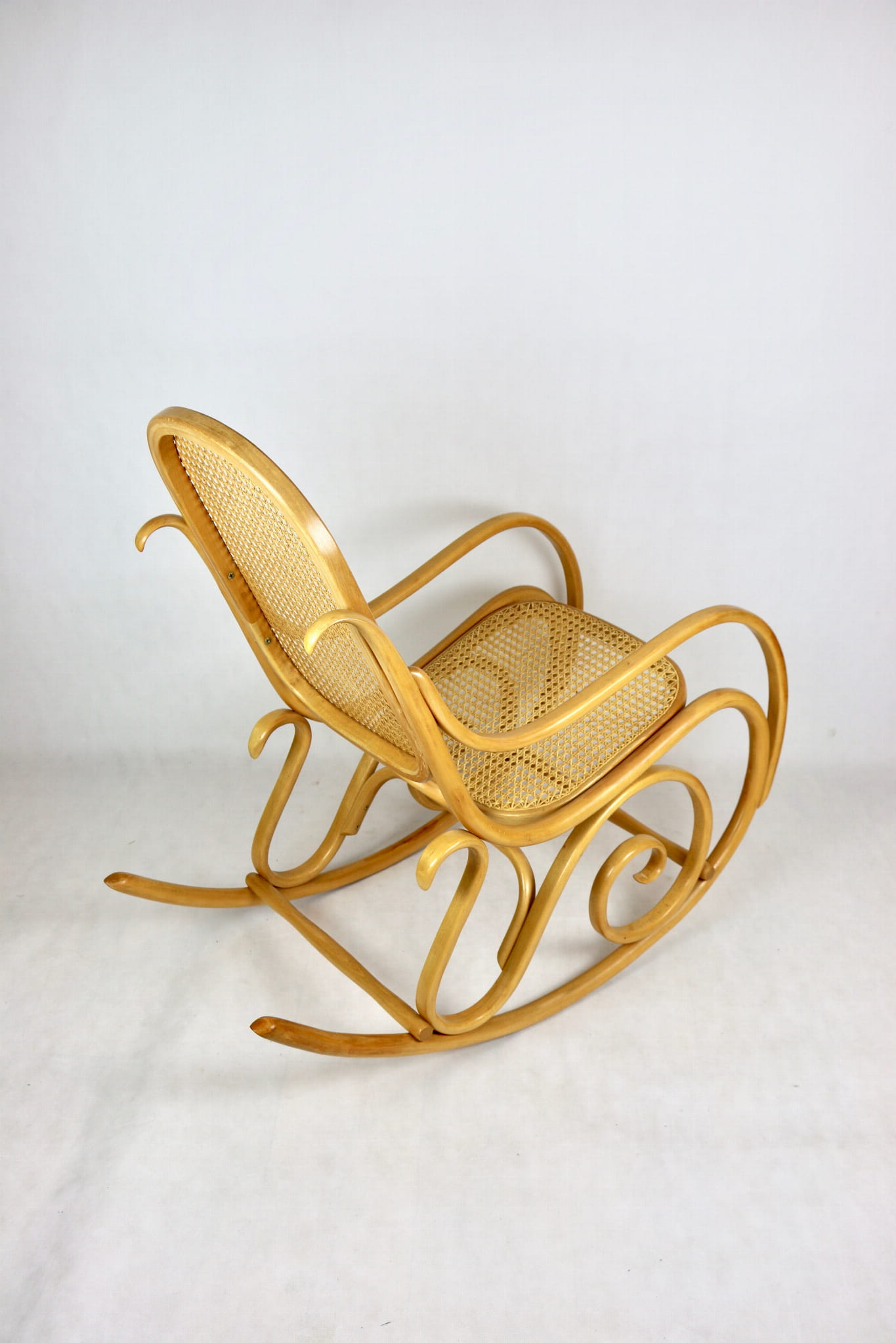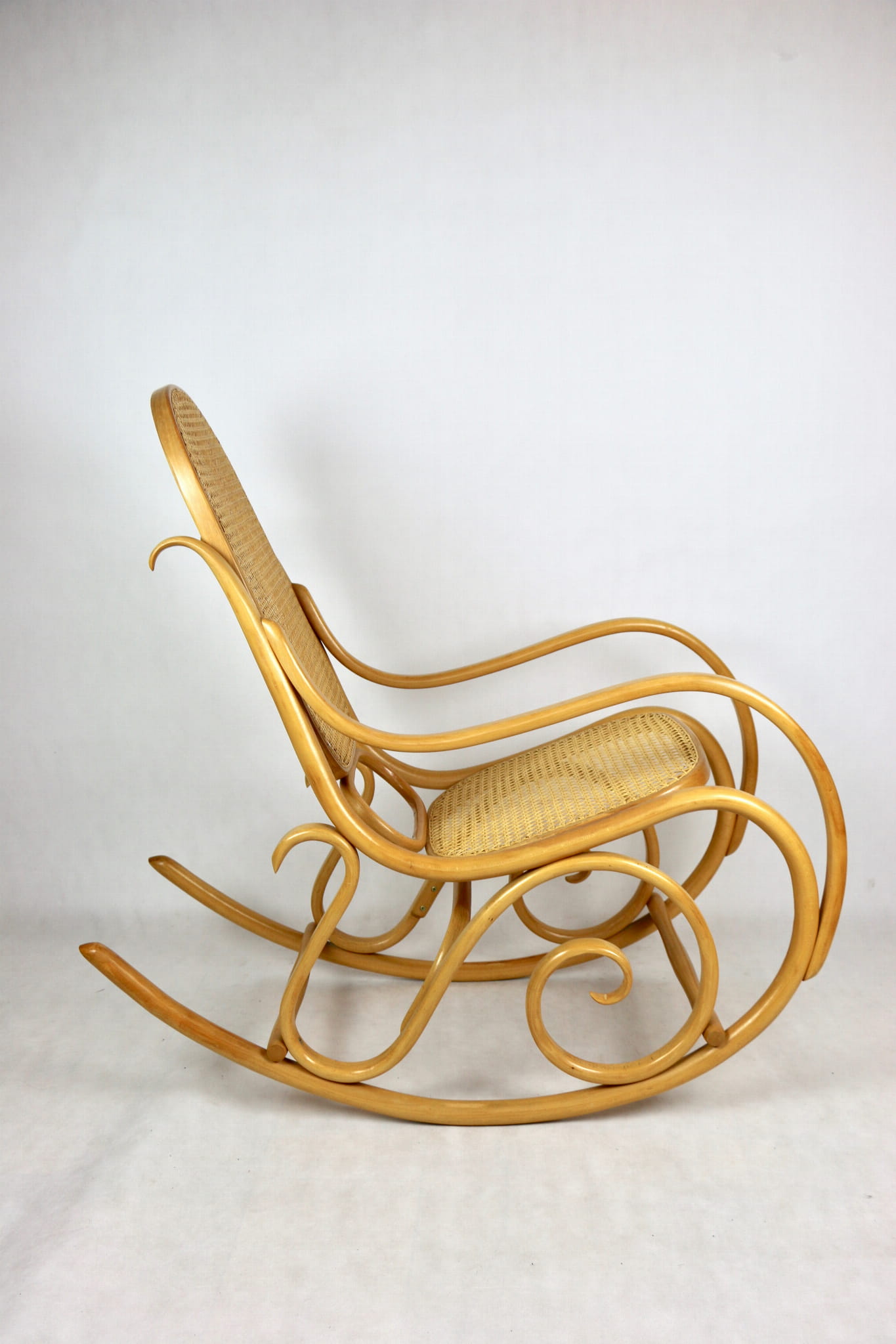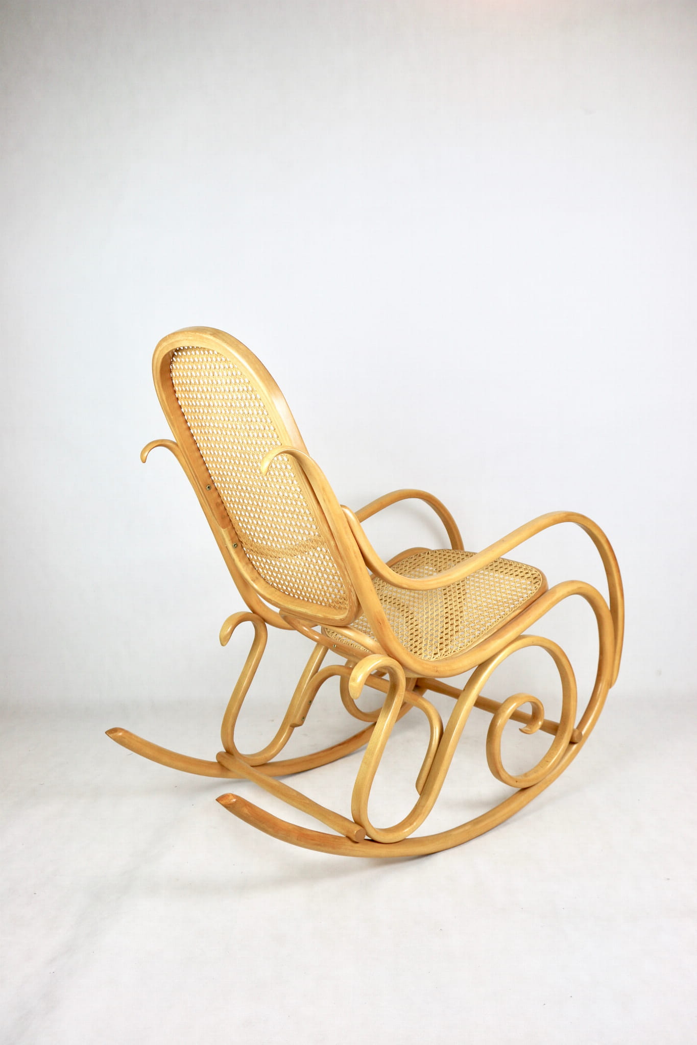 Fotel bujany na biegunach, jasne drewno bukowe, lata 70 - jak nowy (1)