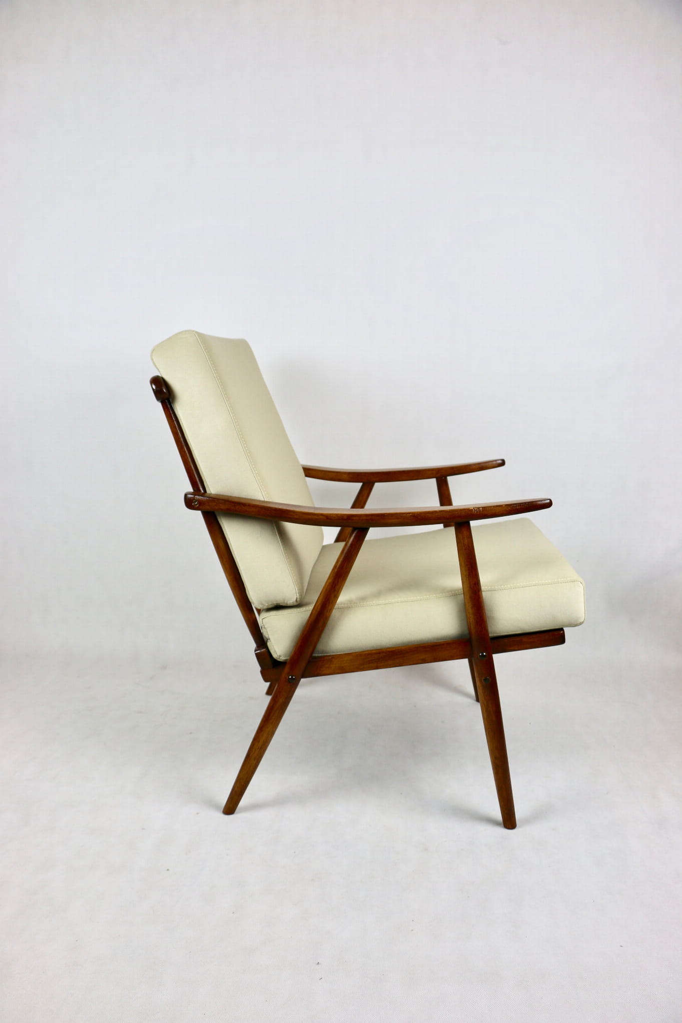 Fotel czeski proj. Jaroslav Smidek Ton Art Deco Vintage Loft lata 70 beżowy - dostępne 2 sztuki
