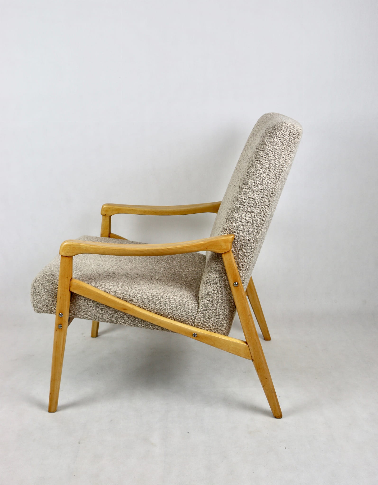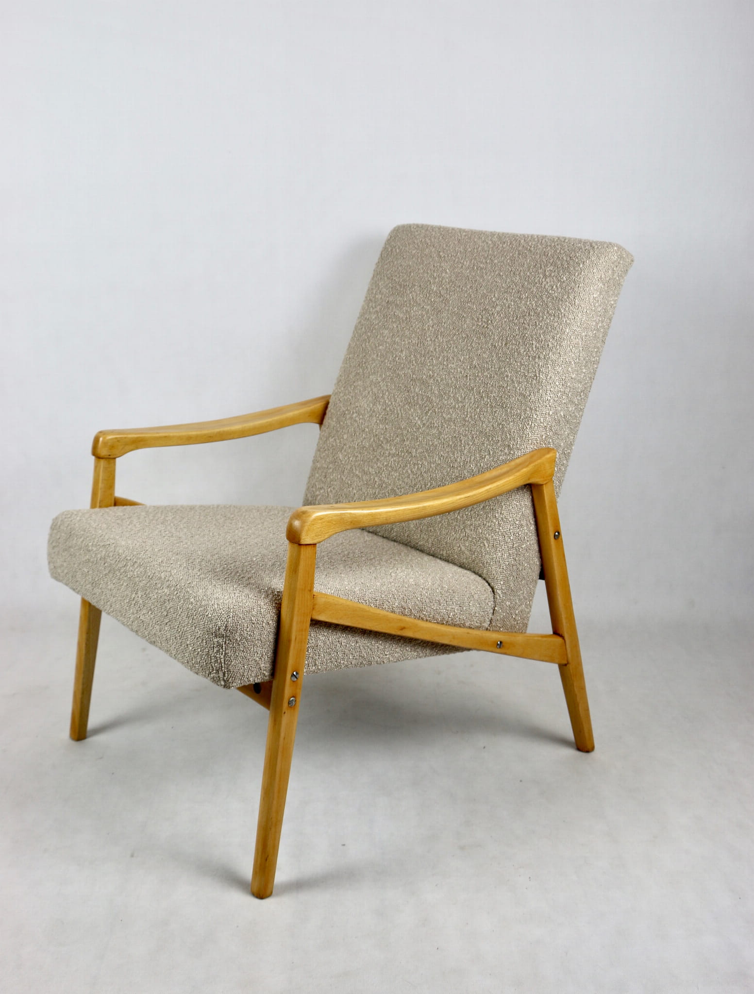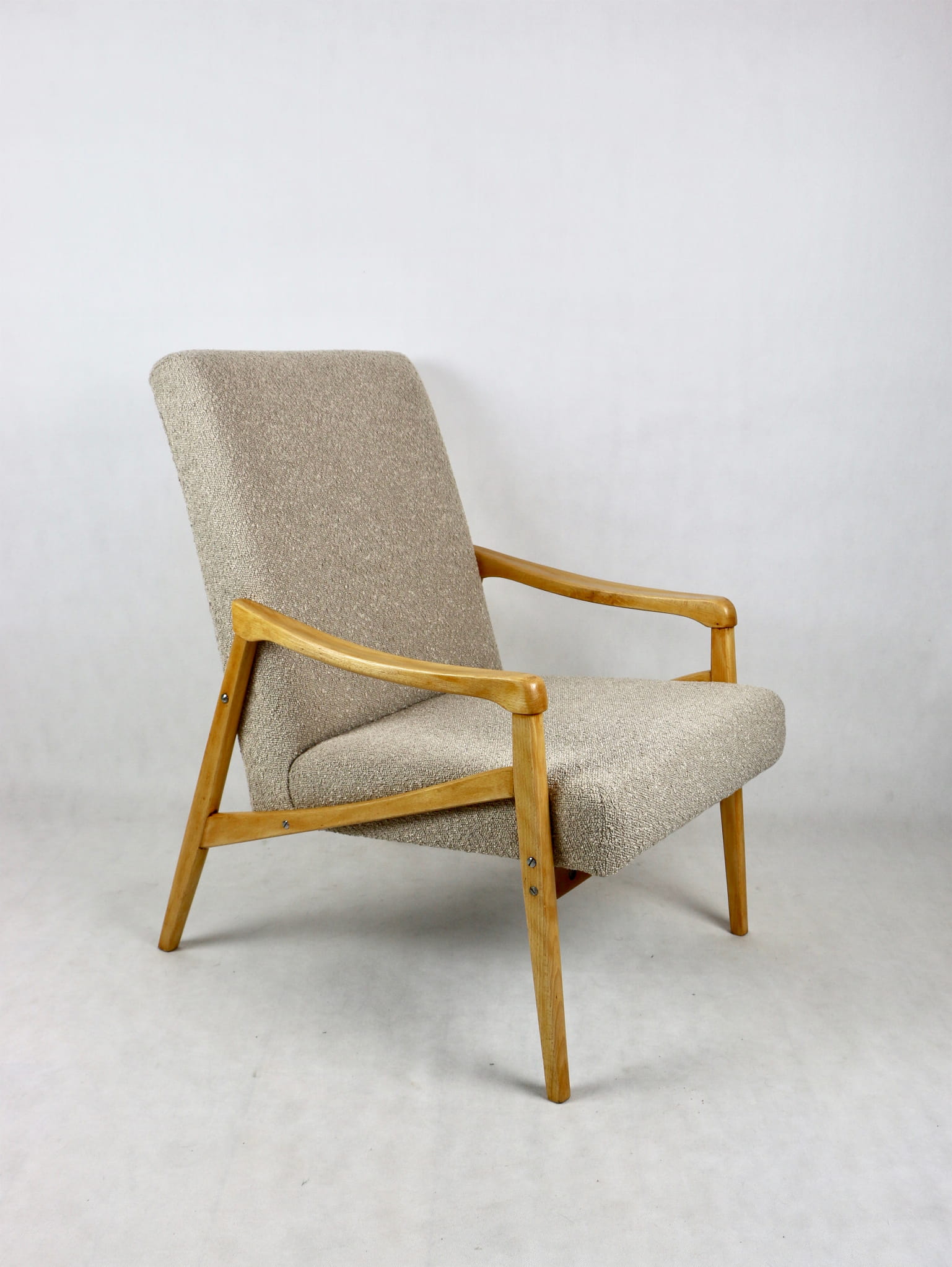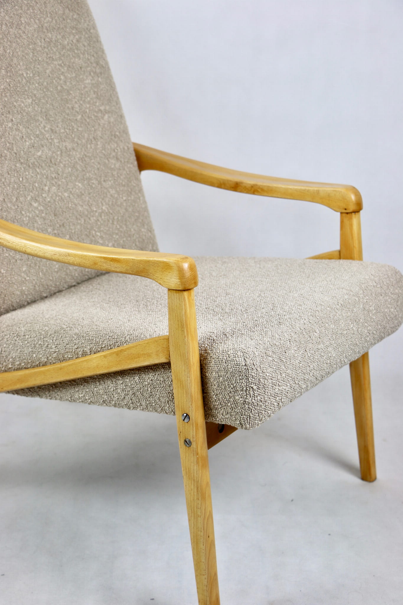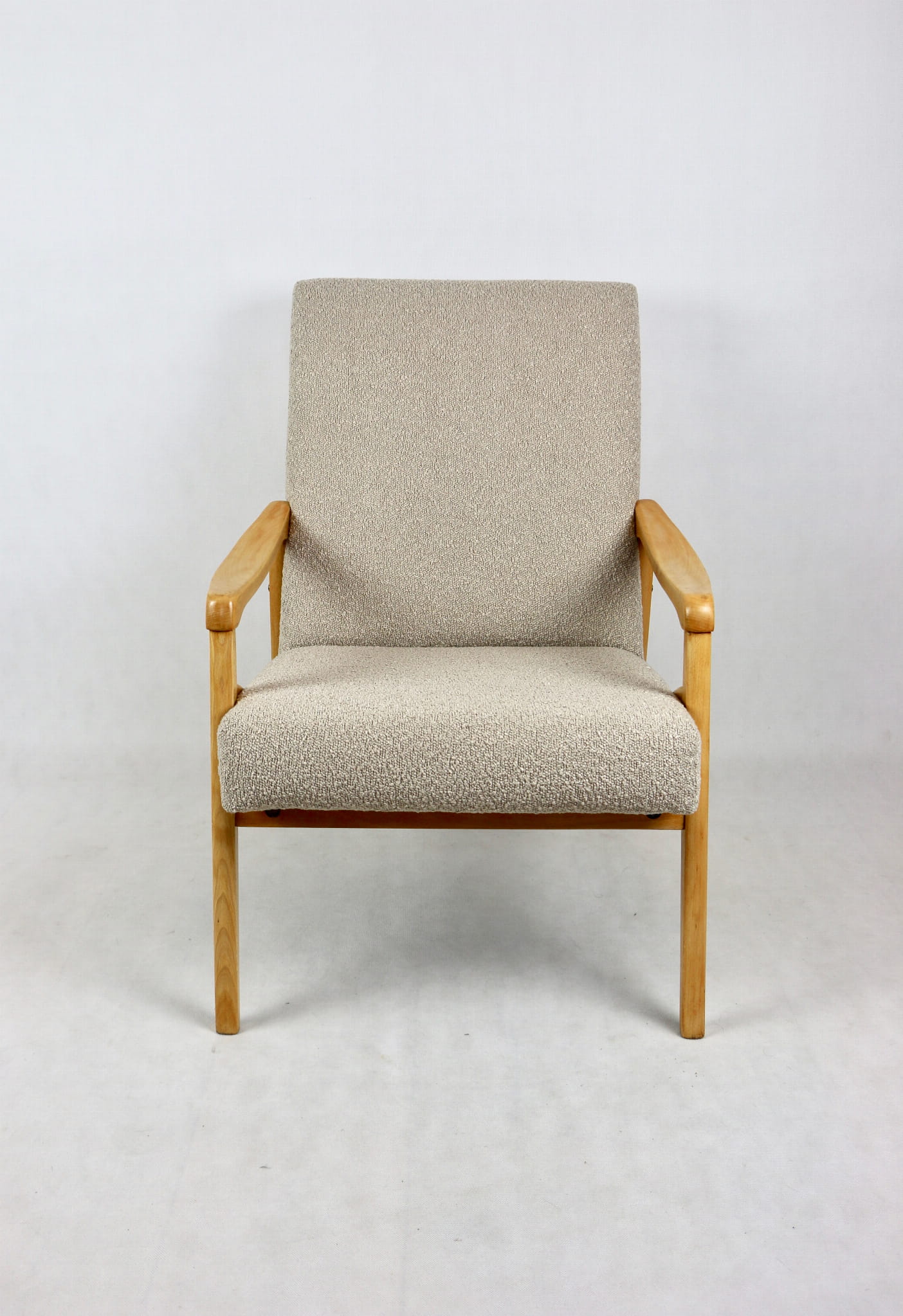 Fotel czeski project Jiri Jiroutek Art Deco Vintage Loft lata 70 beżowe boucle