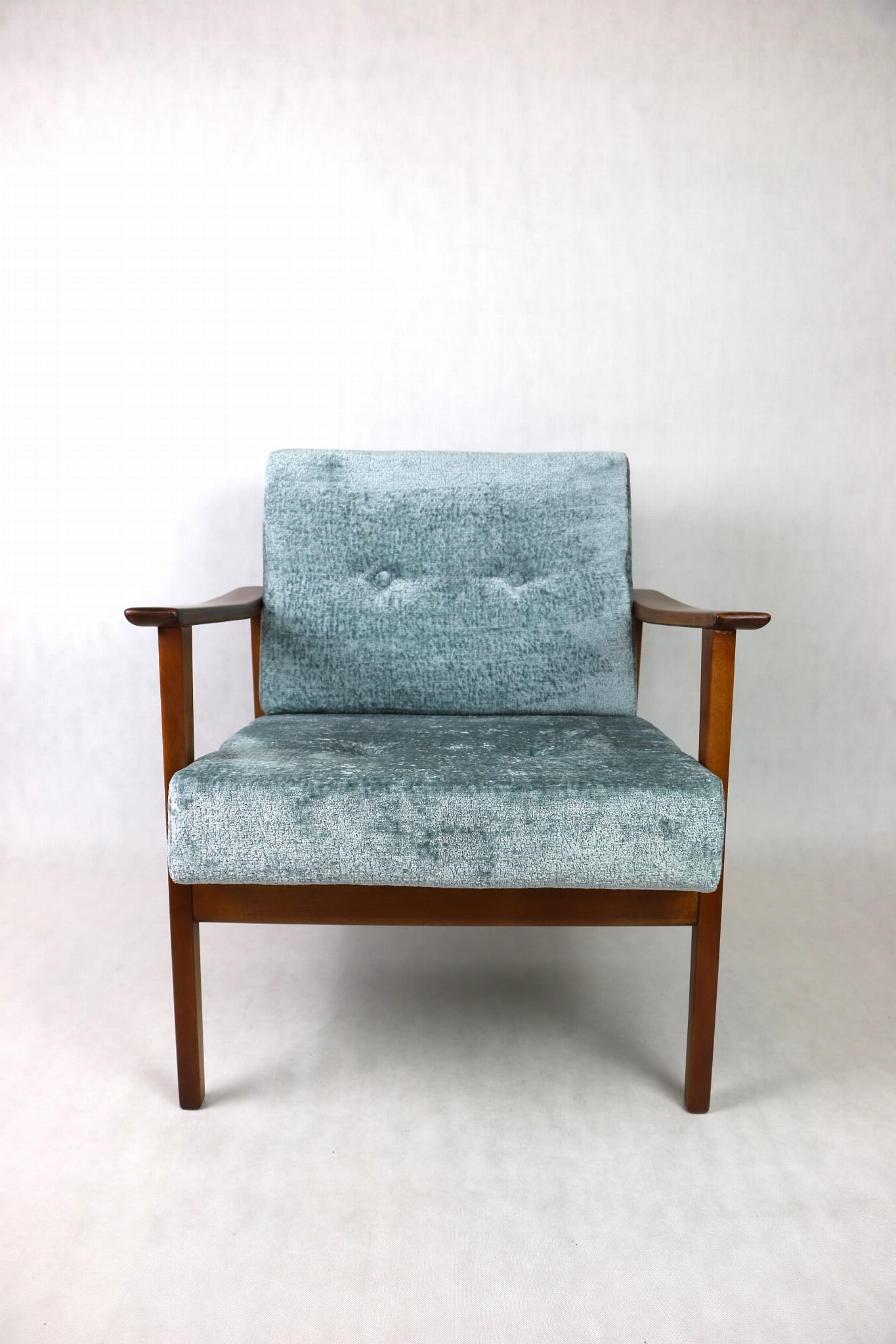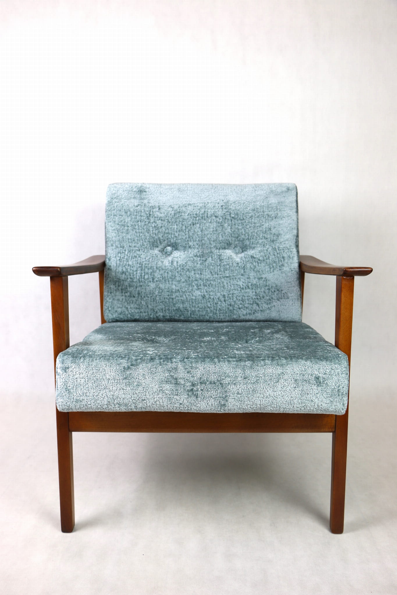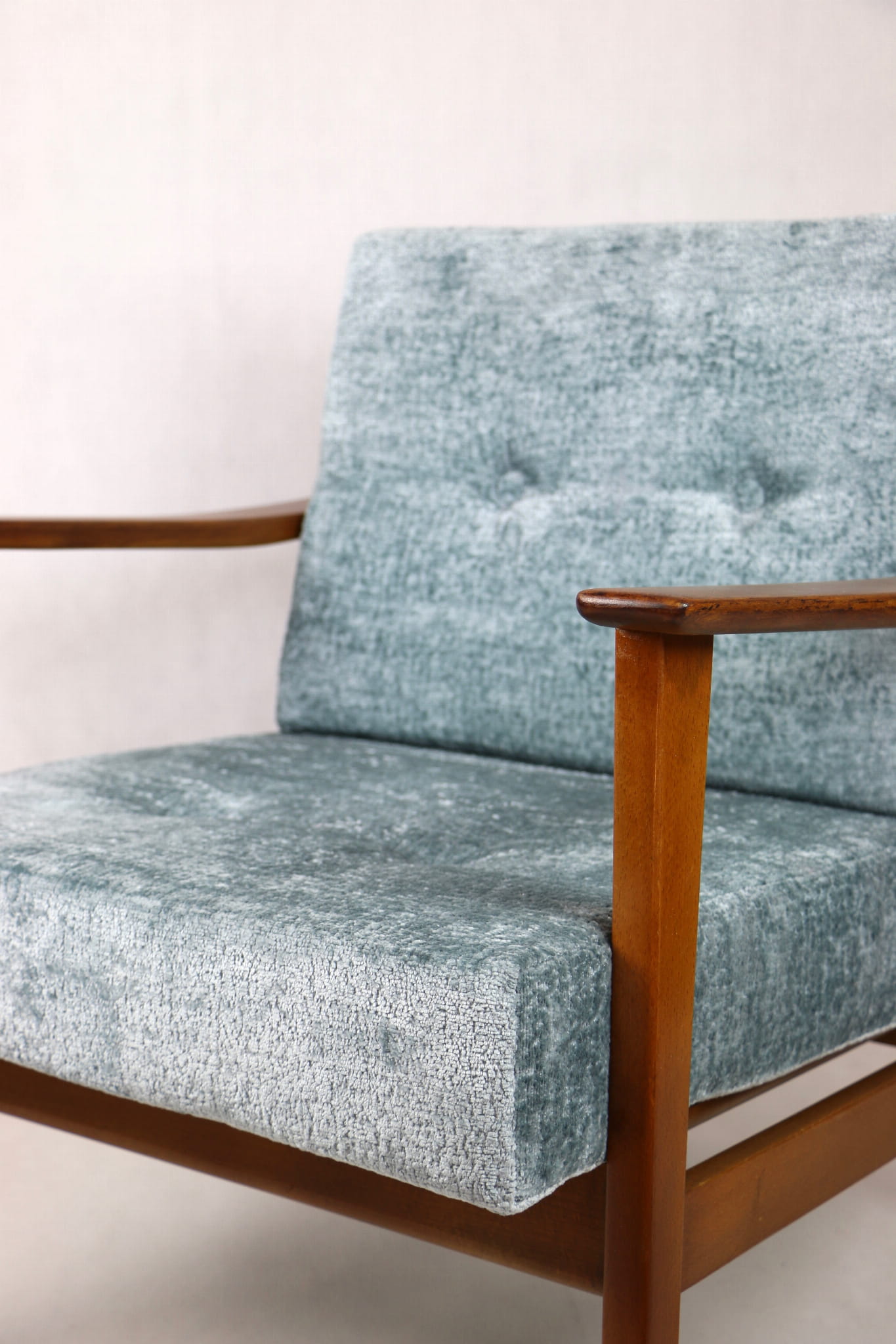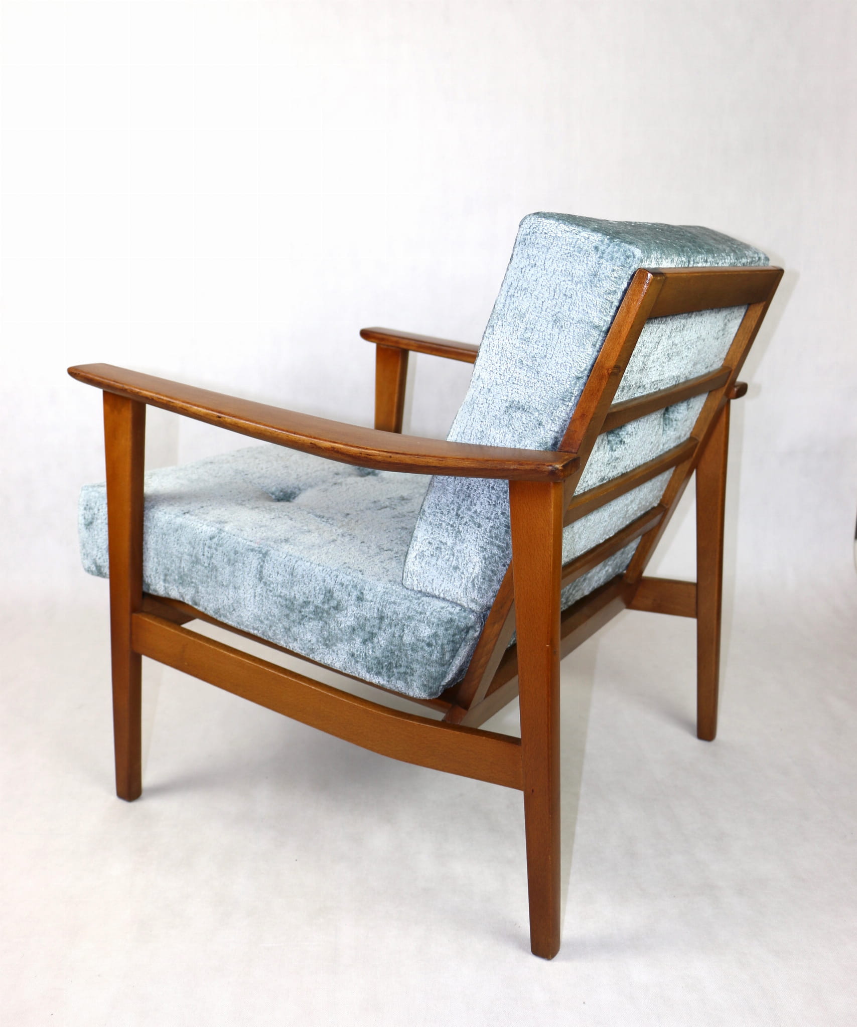 Fotel drewniany produkcji niemieckiej Vintage błękitny Bergen - dostępne 2 sztuki