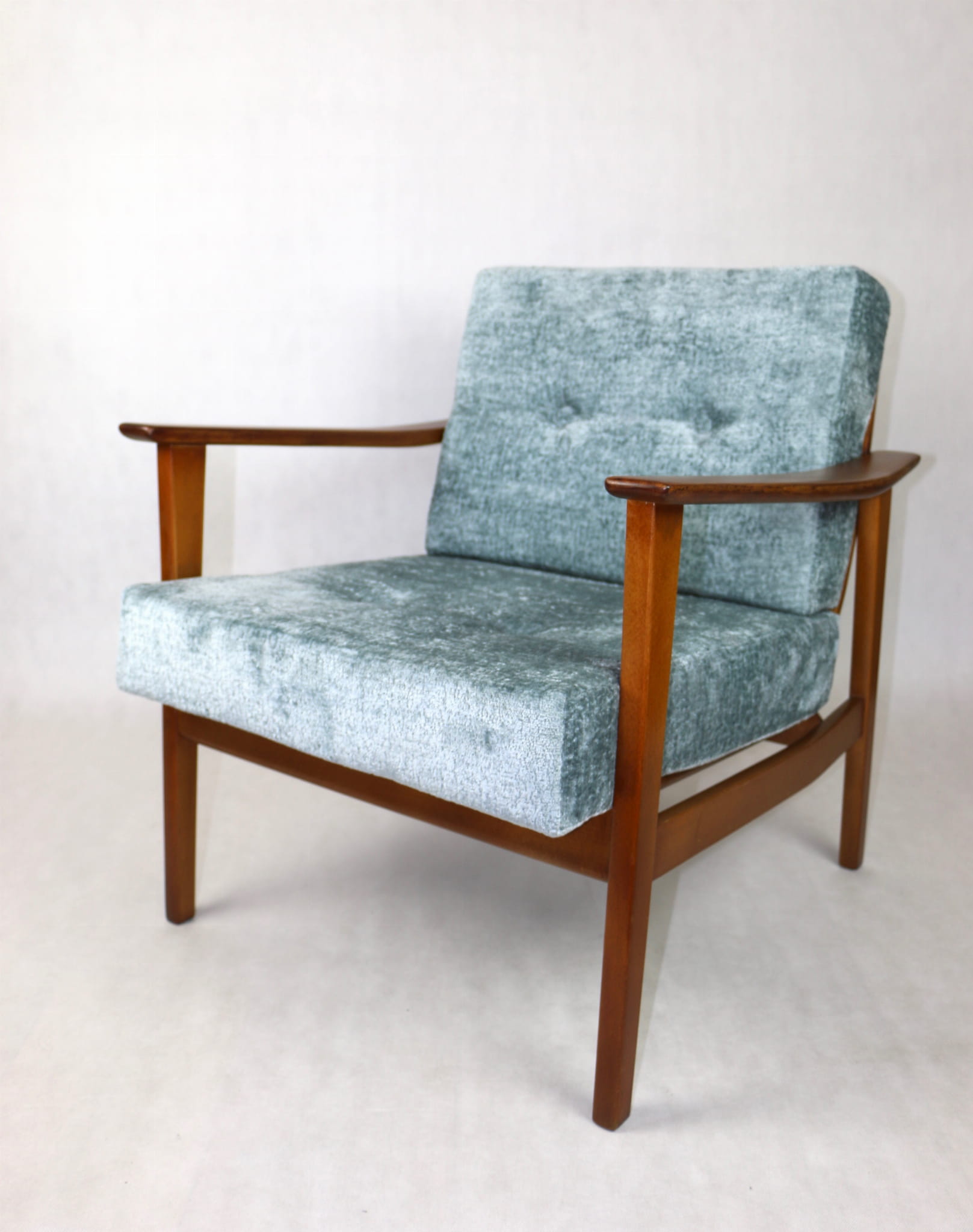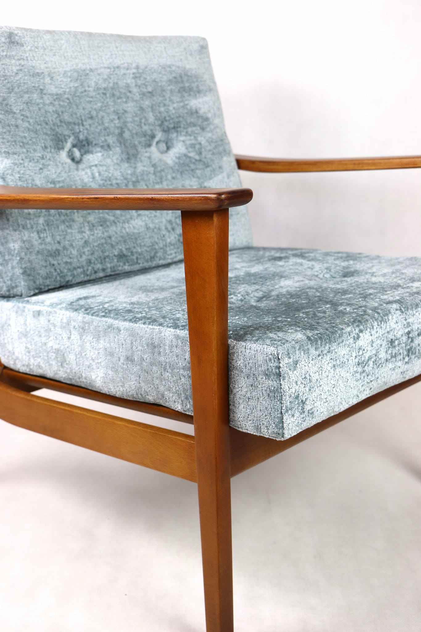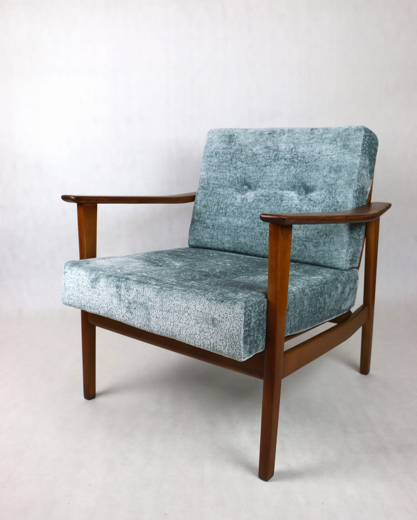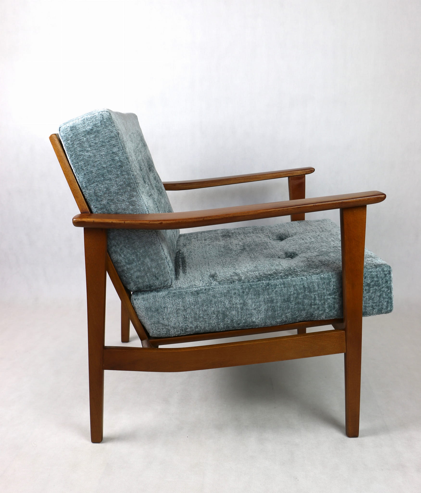 Fotel drewniany produkcji niemieckiej Vintage błękitny Bergen - dostępne 2 sztuki