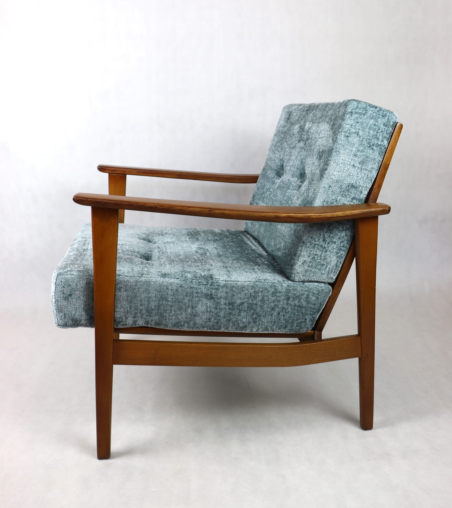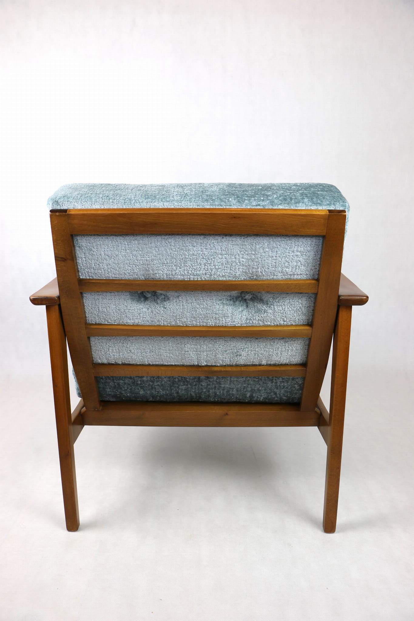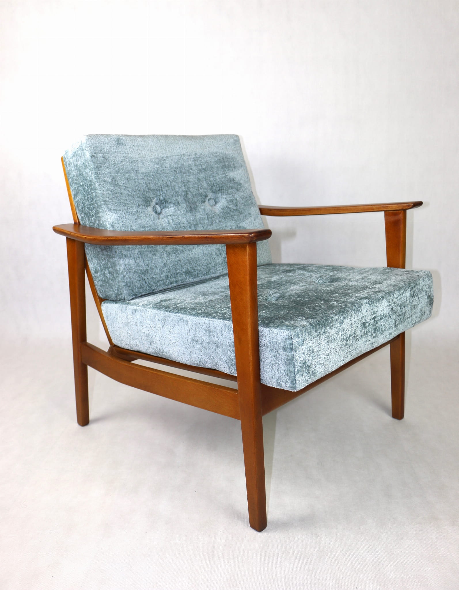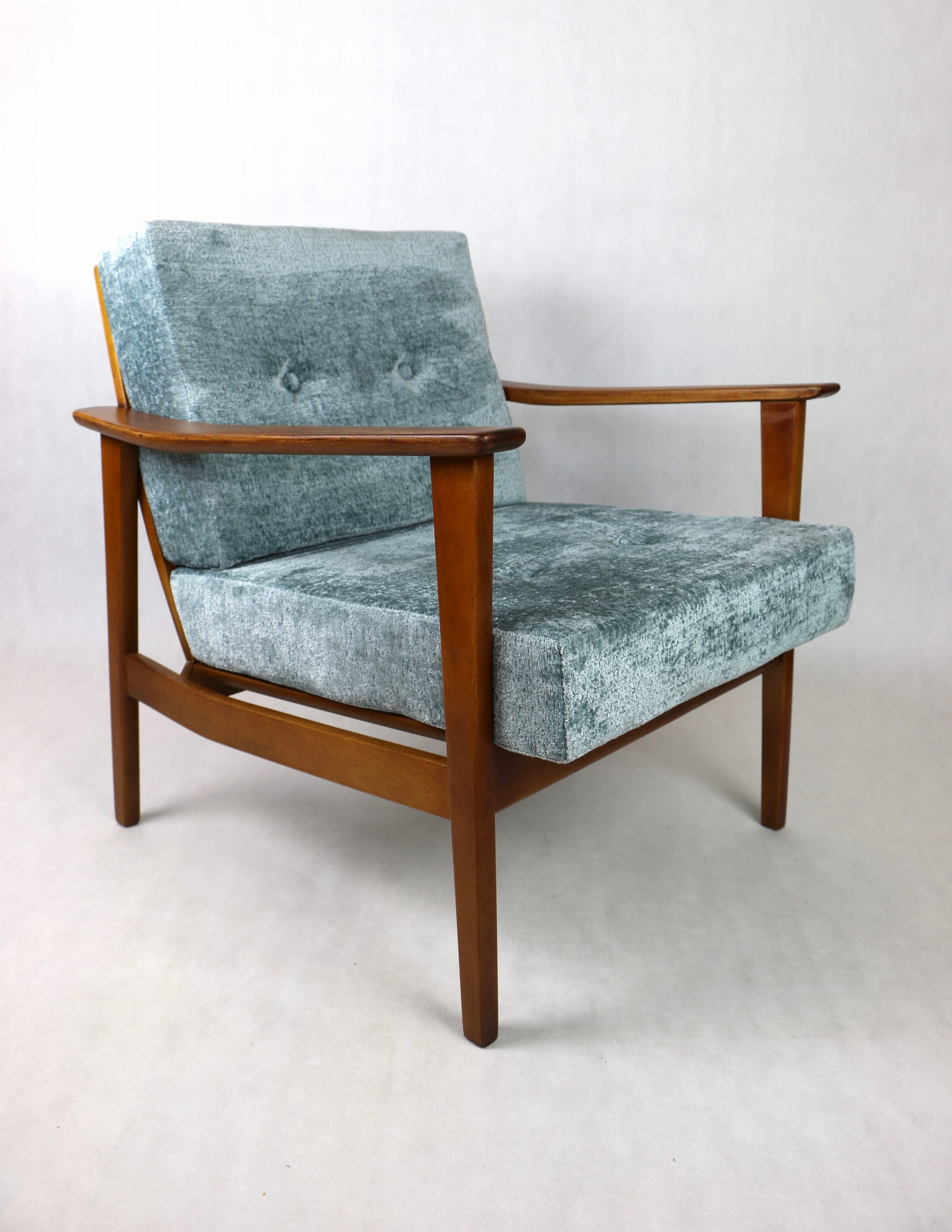 Fotel drewniany produkcji niemieckiej Vintage błękitny Bergen - dostępne 2 sztuki