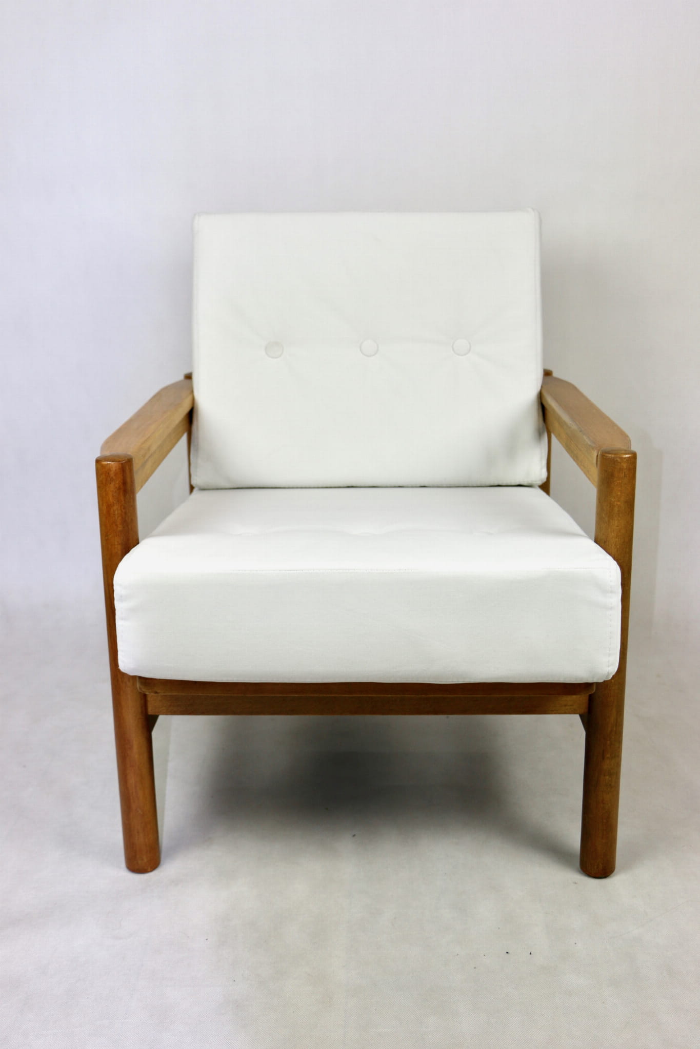 Fotel drewniany projektu Z. Baczyk naturalny buk Vintage śnieżno biały - welwet easy to clean