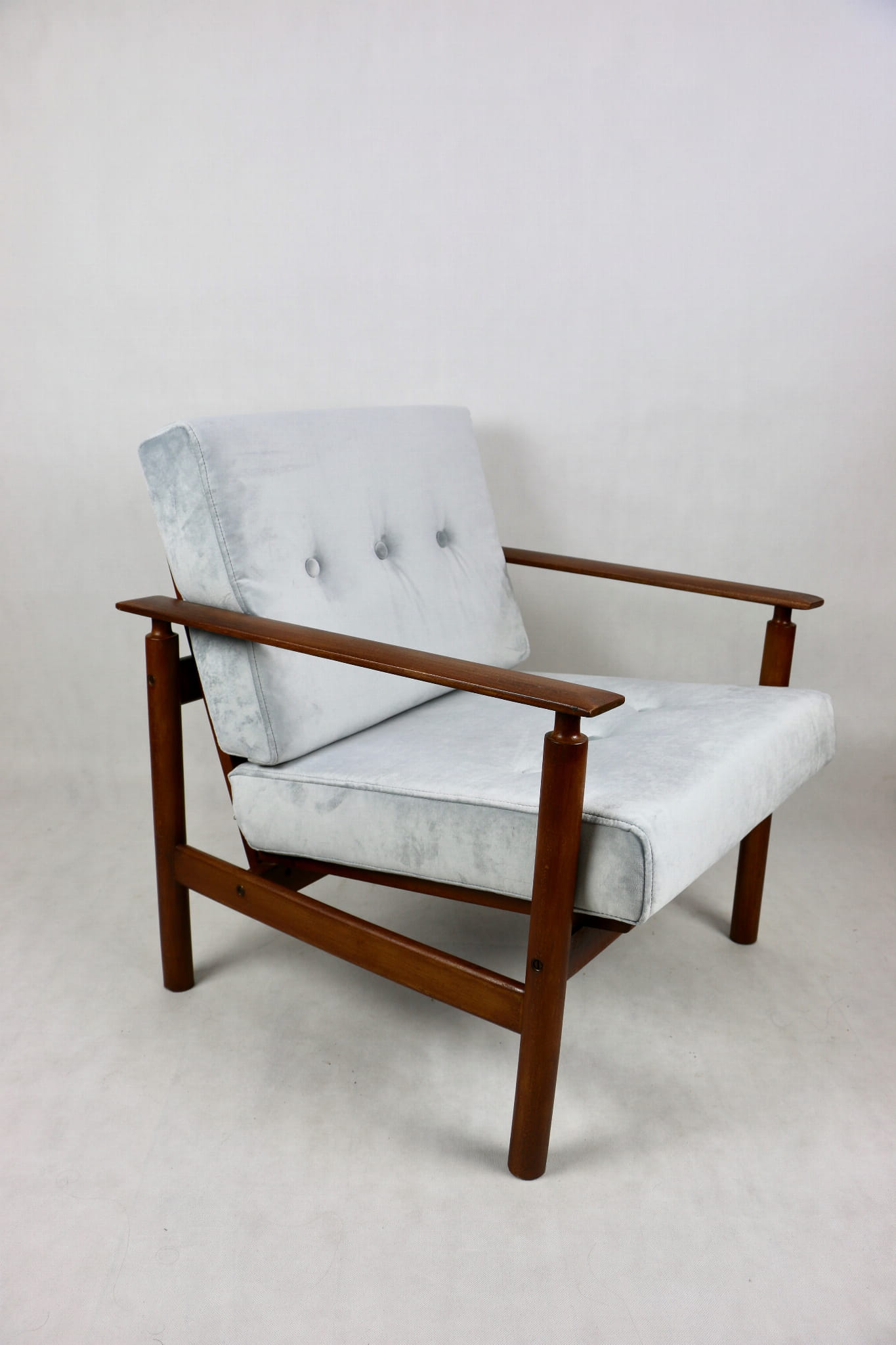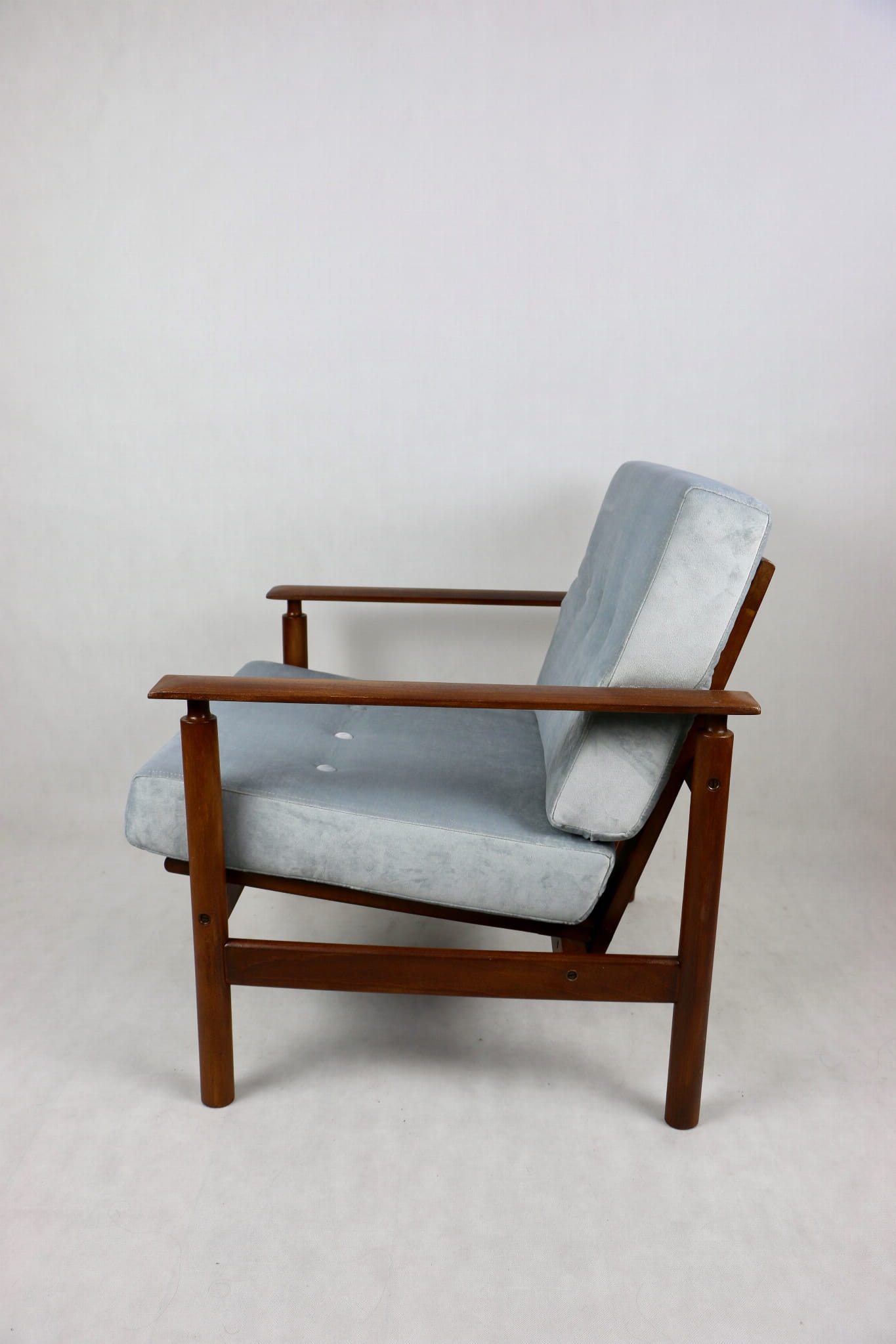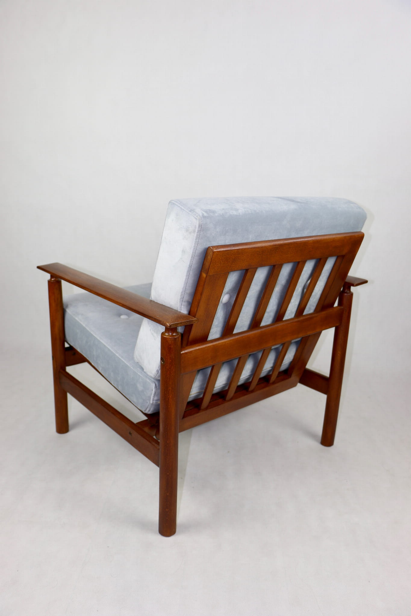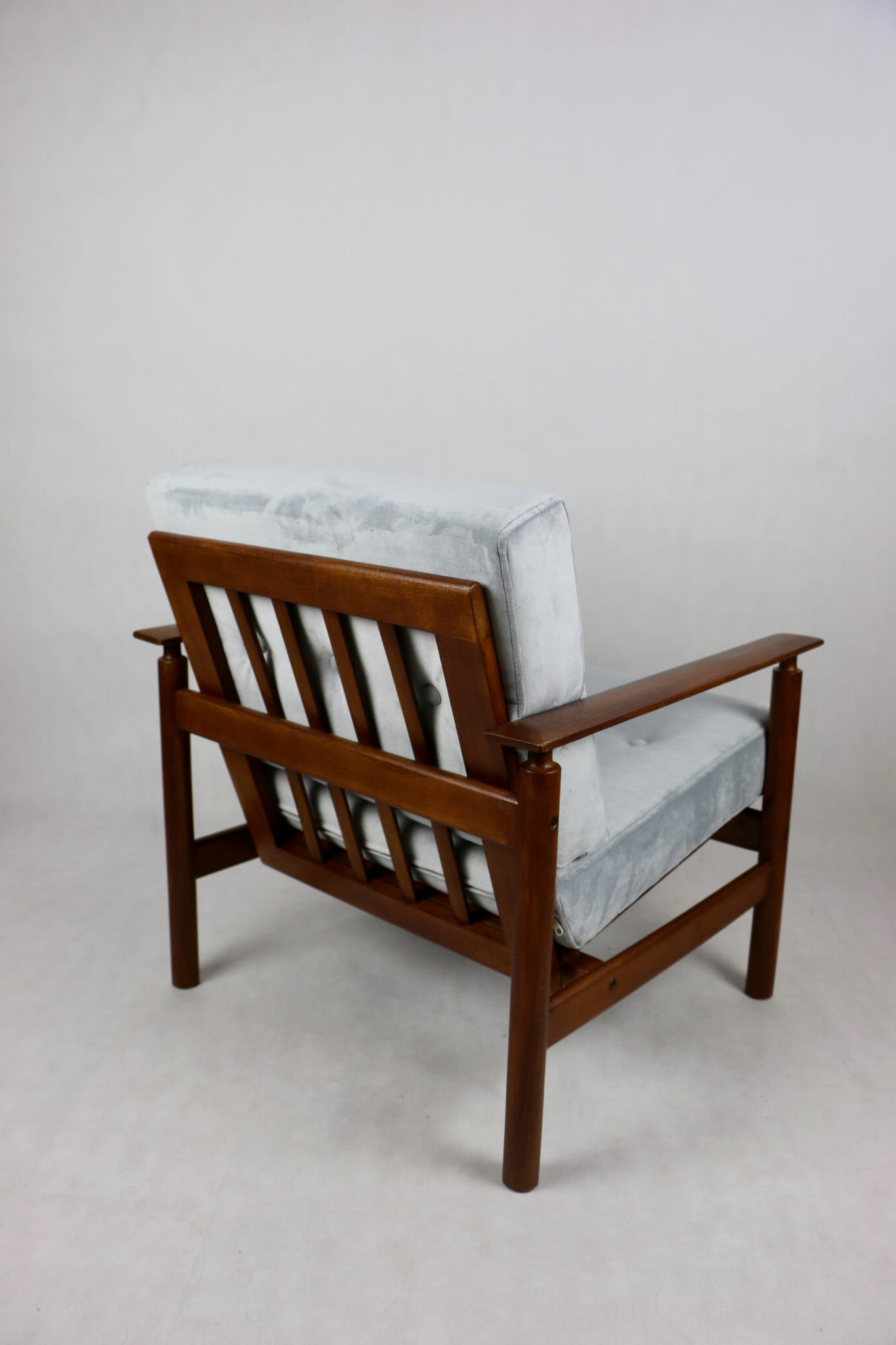 Fotel drewniany projektu Z. Baczyk - srebrny - ciemne drewno