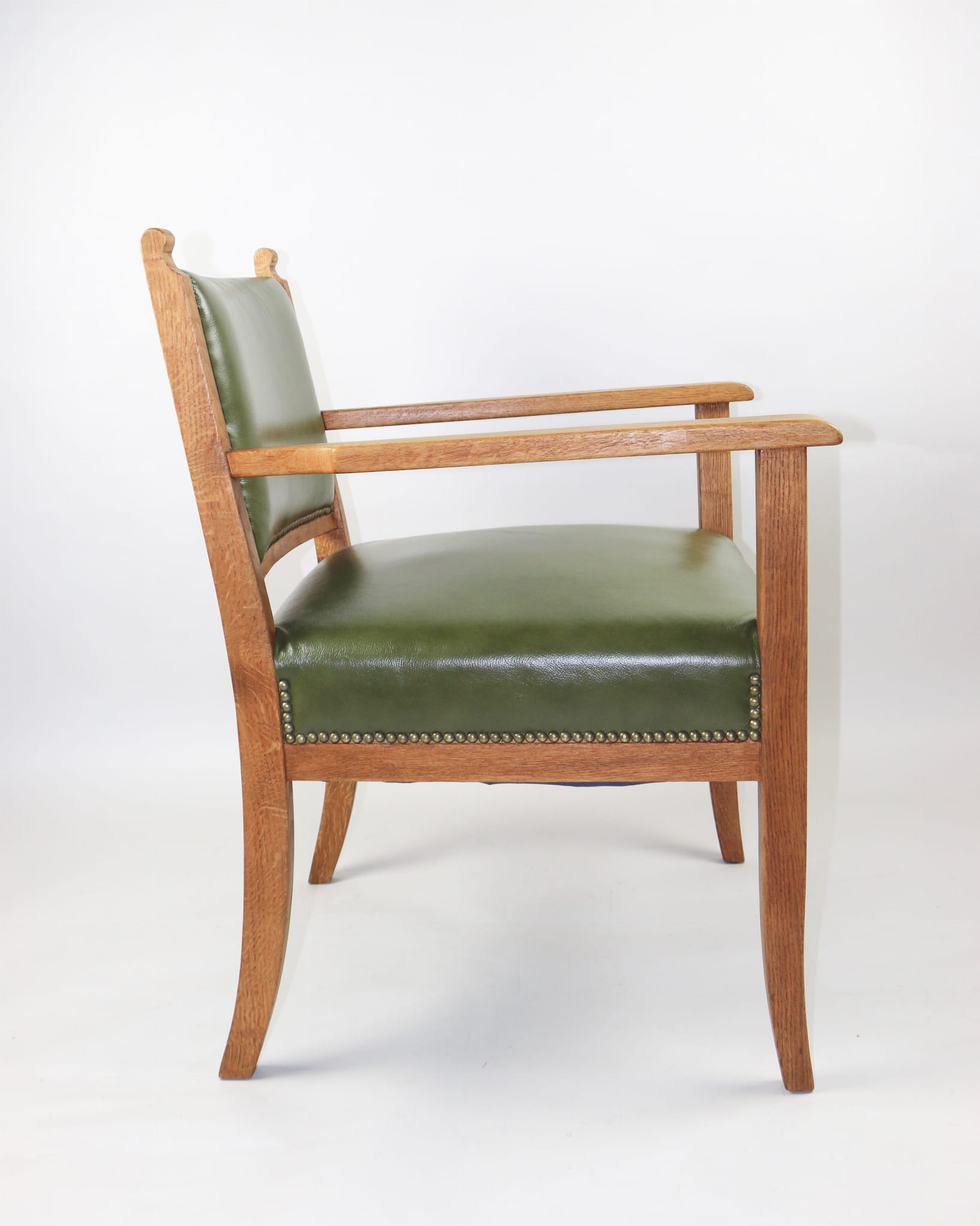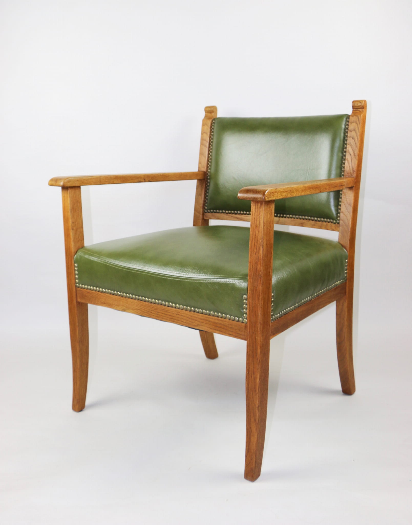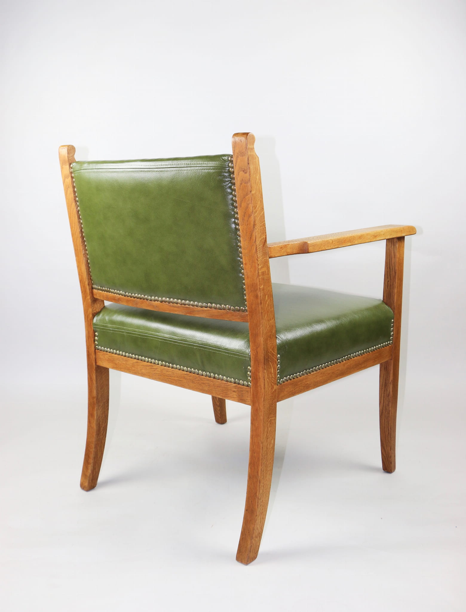 Fotel gabinetowy Vintage dąb naturalny skóra zielony