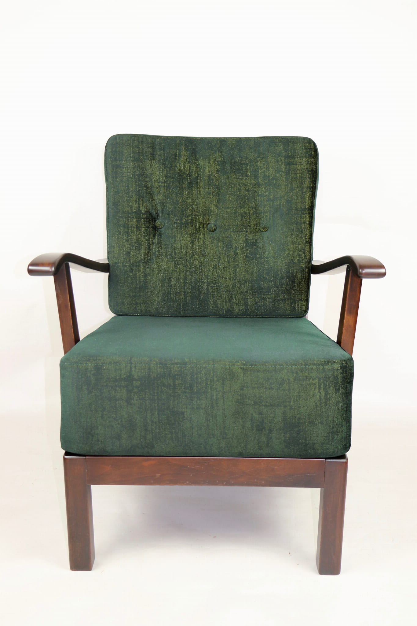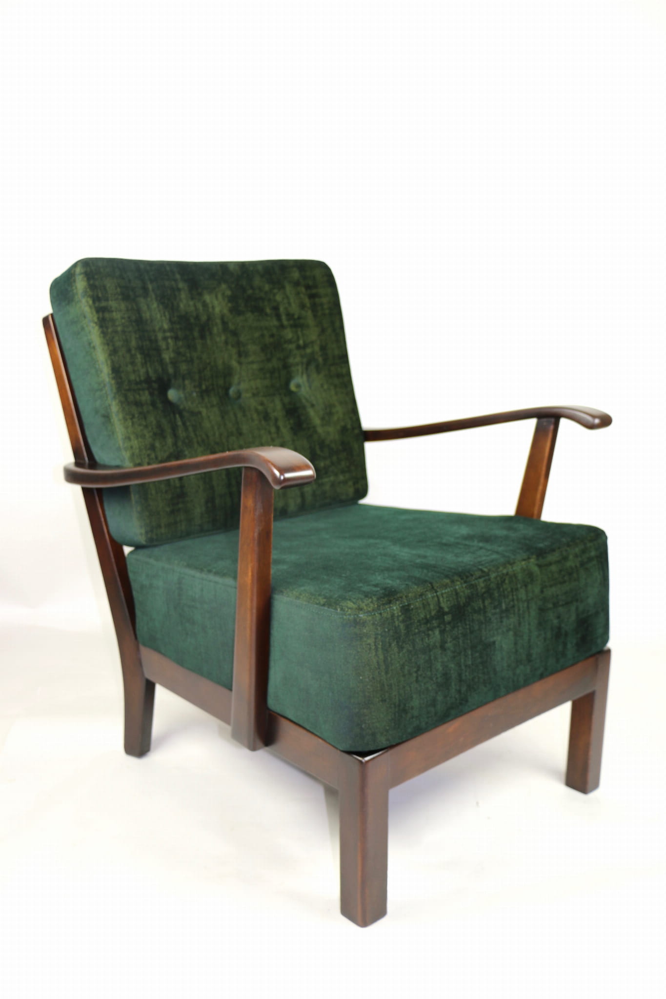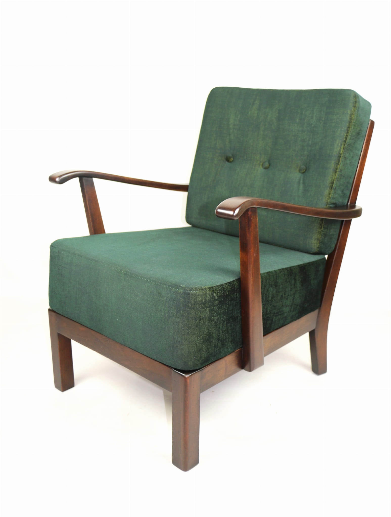 Fotel zielony w stylu Art Deco w tkaninie typu welwet Chameleon