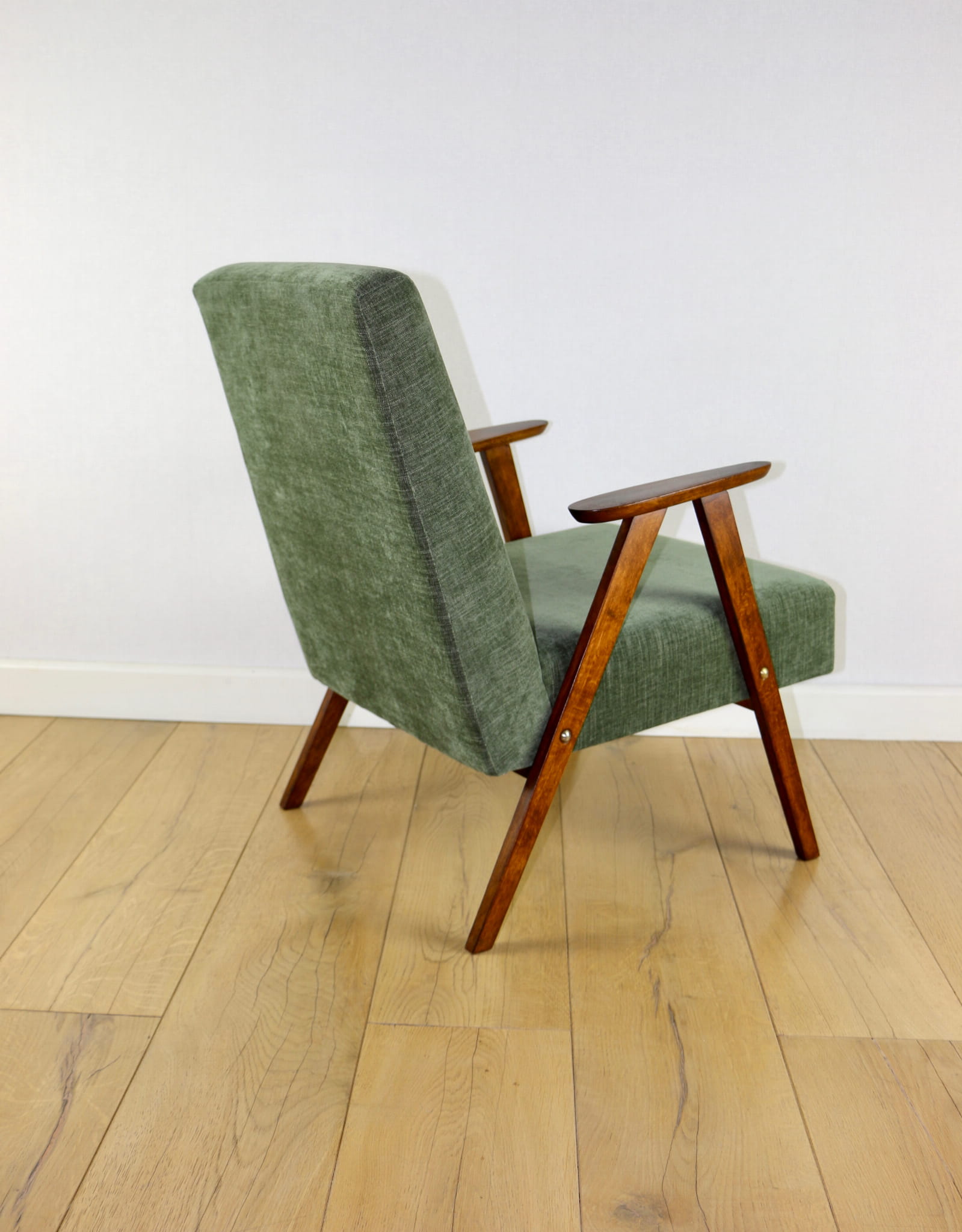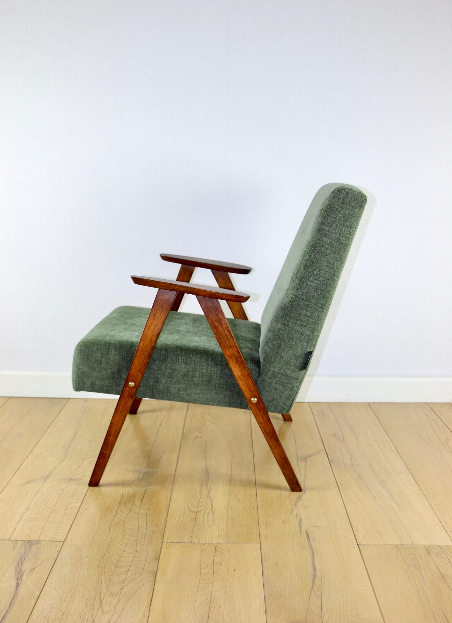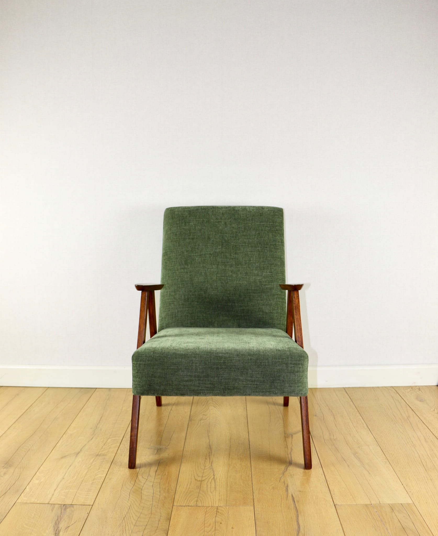 Fotel klasyczny Vintage podobny do fotelu projektu Chierowskiego z lat 70-tych - kolor zielony oliwkowy