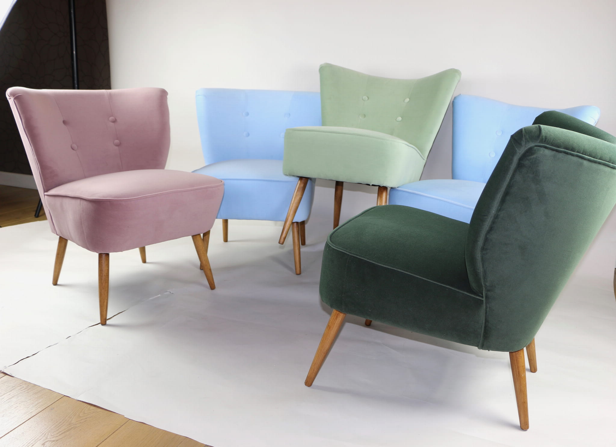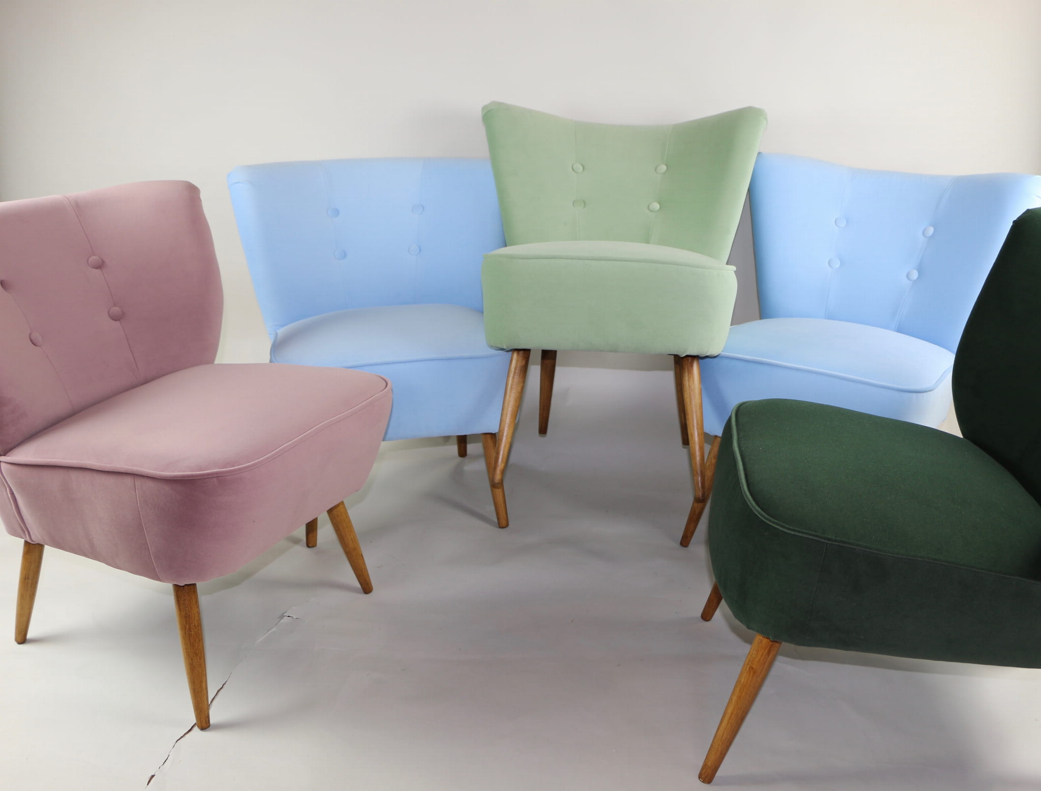 Fotel klubowy vintage w tkaninie Jade 700