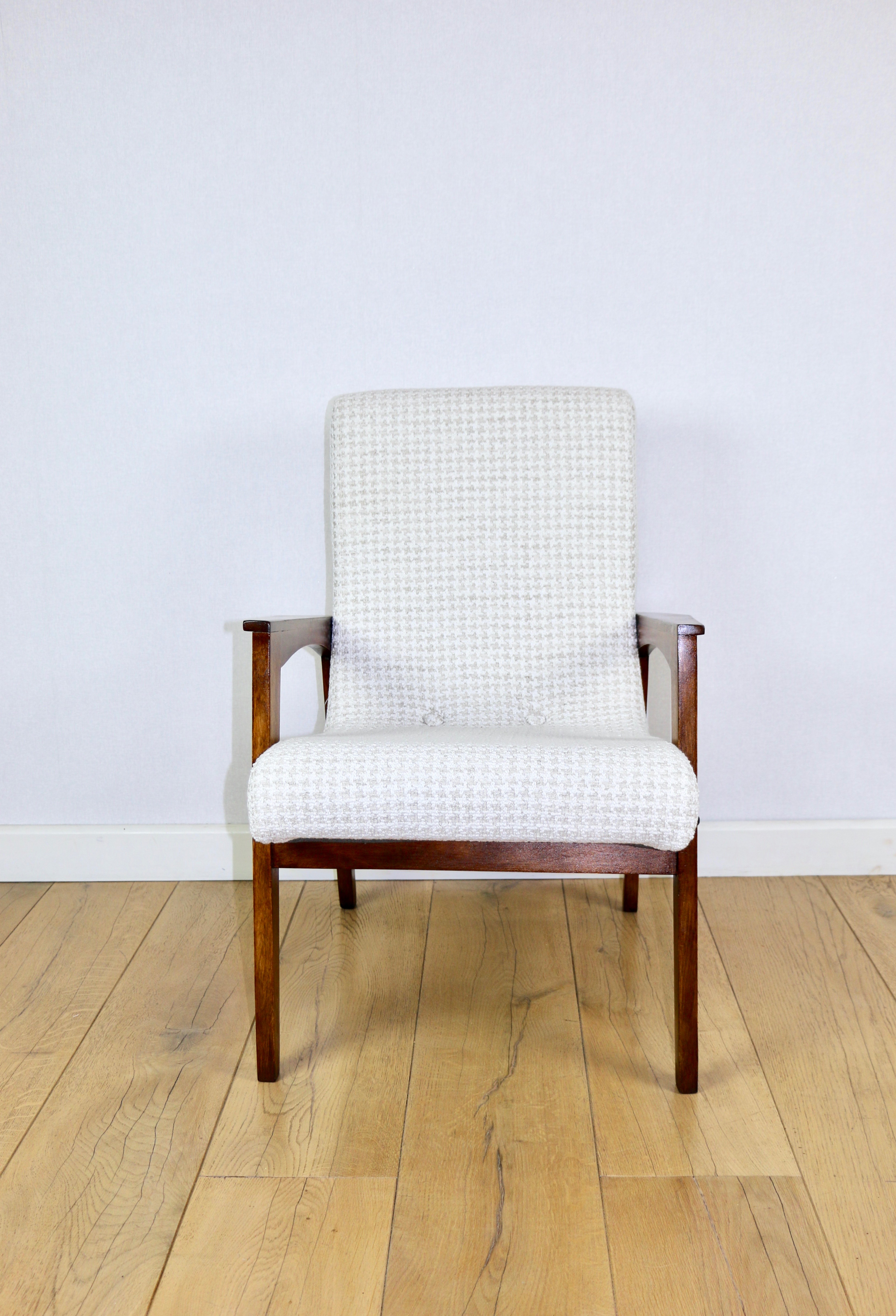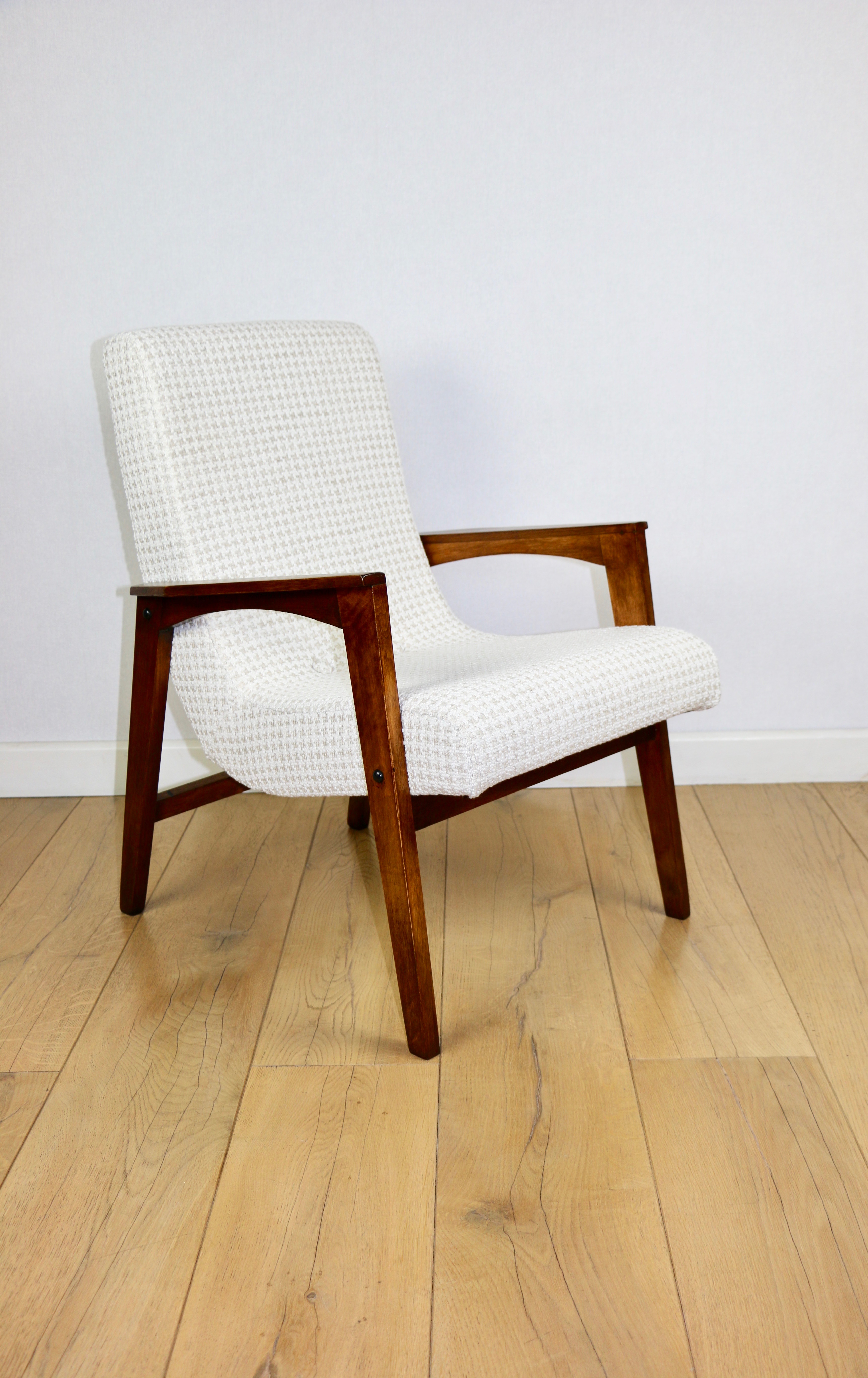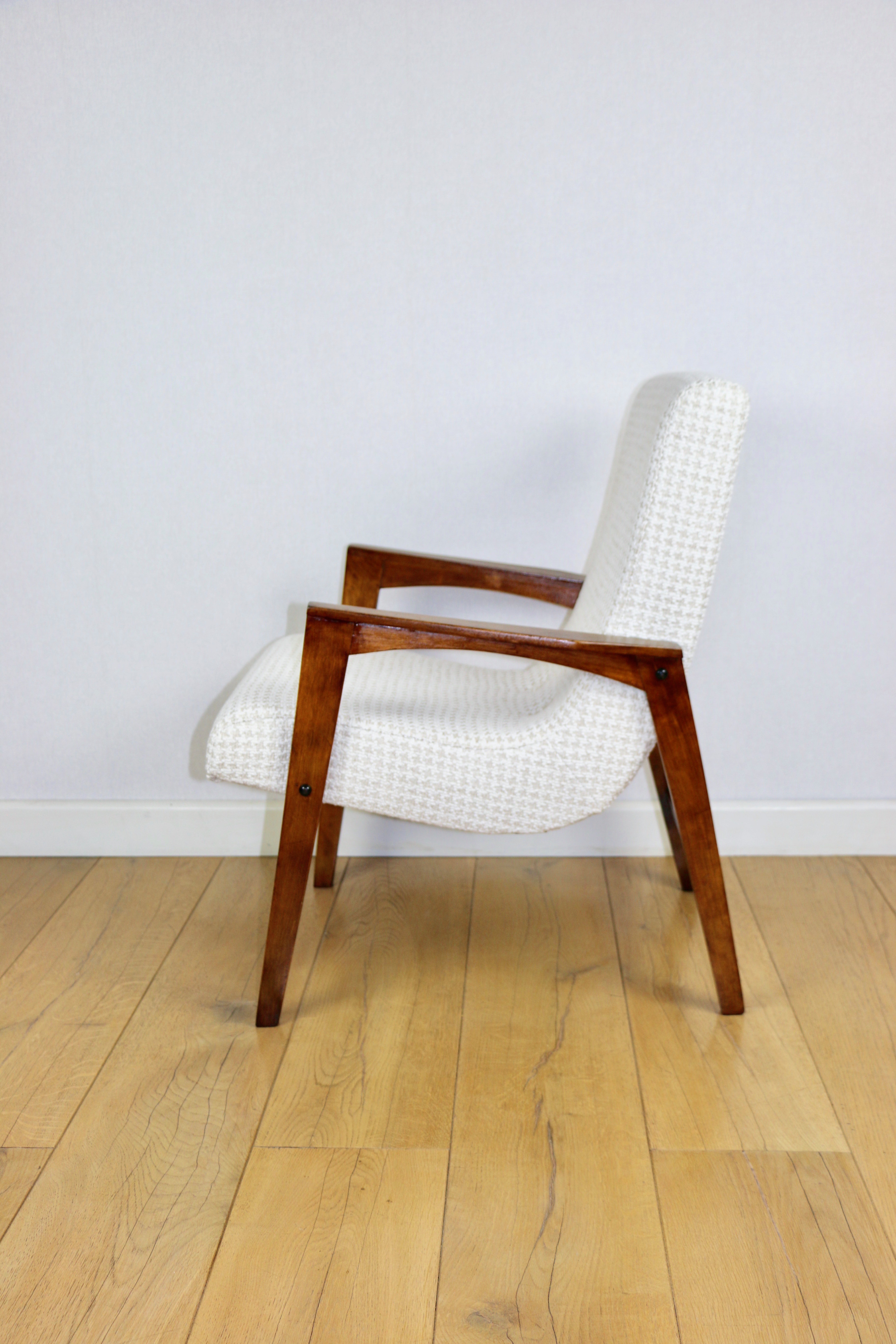 Fotel loft vintage jodełka tkanina naturalna model z lat 70tych