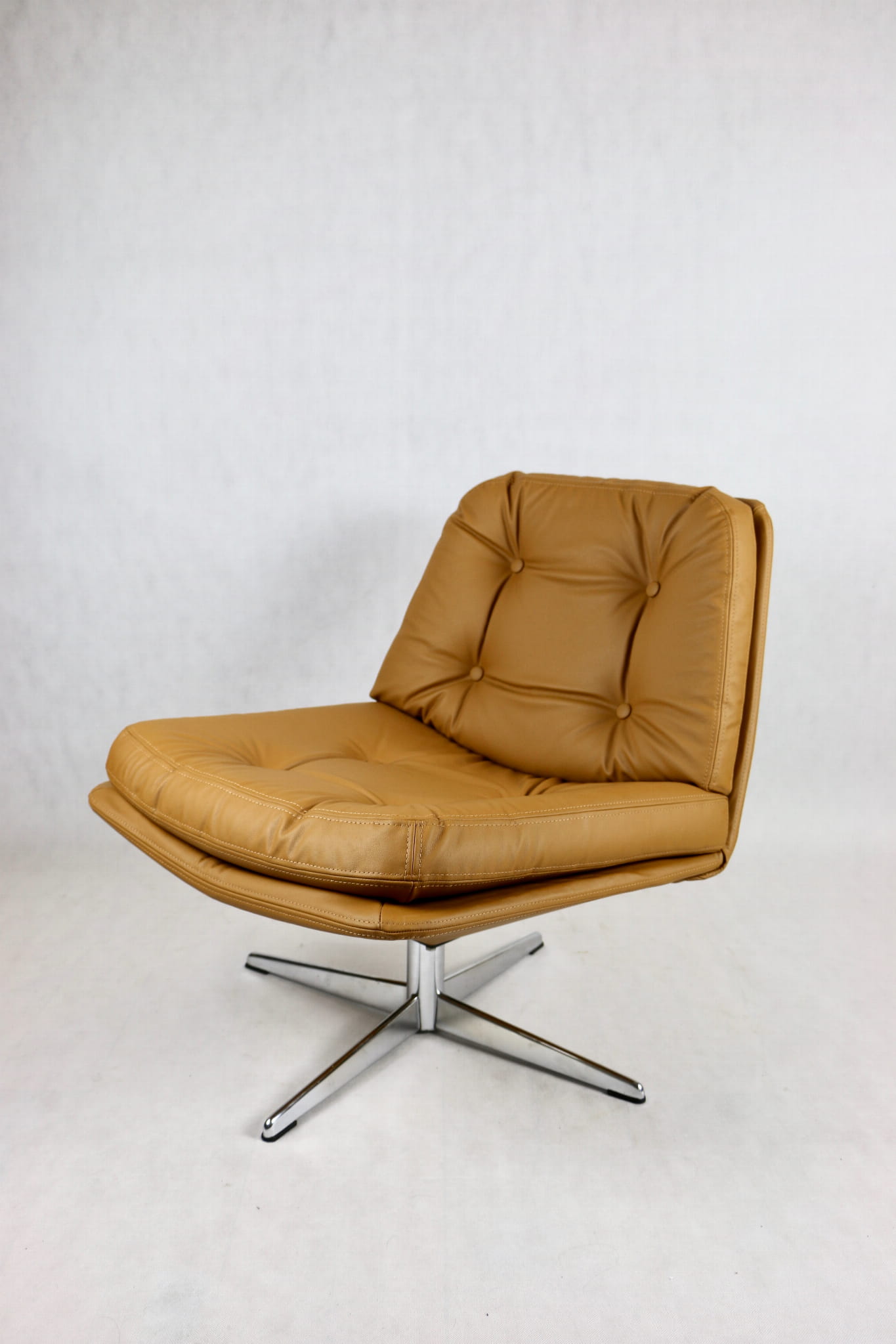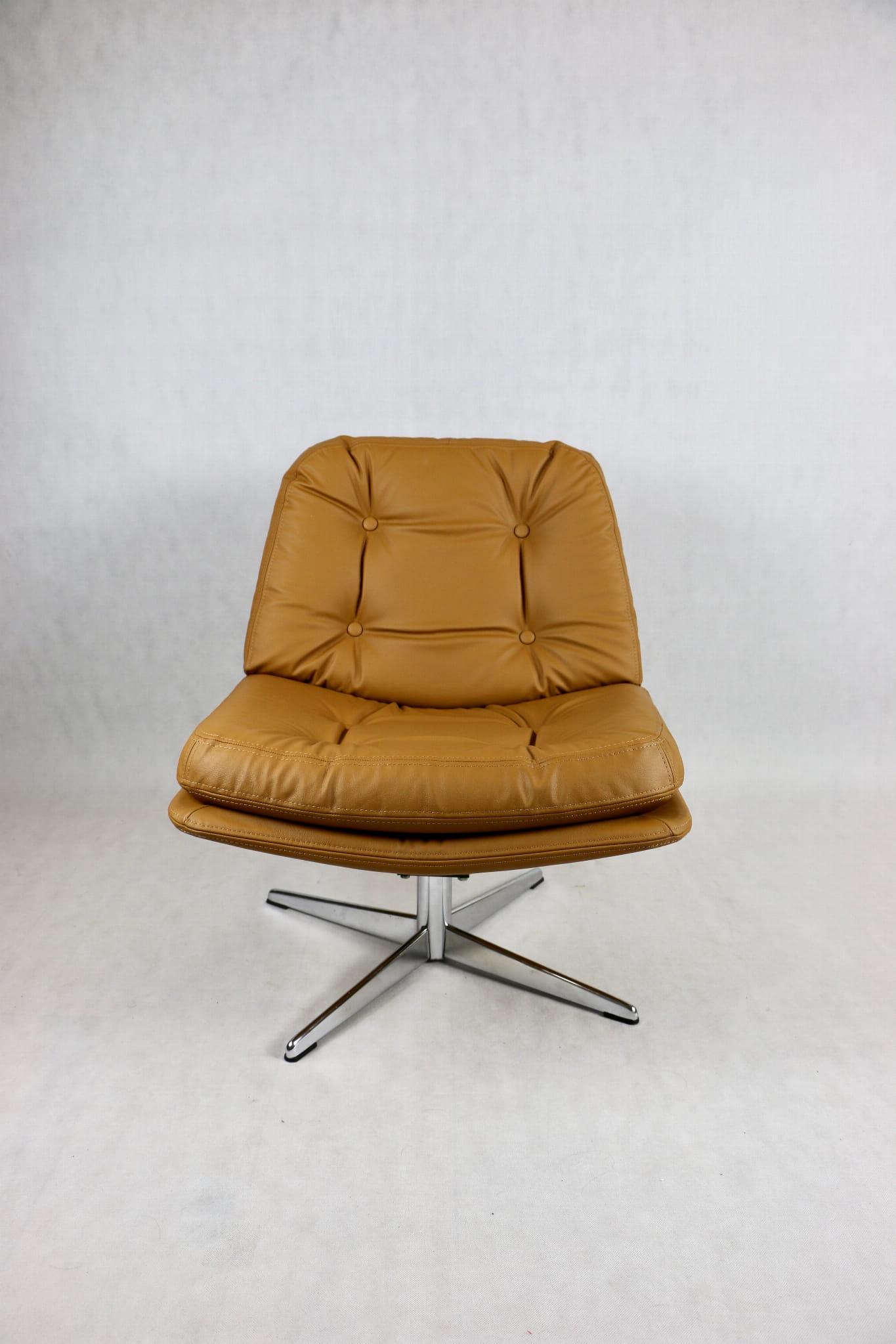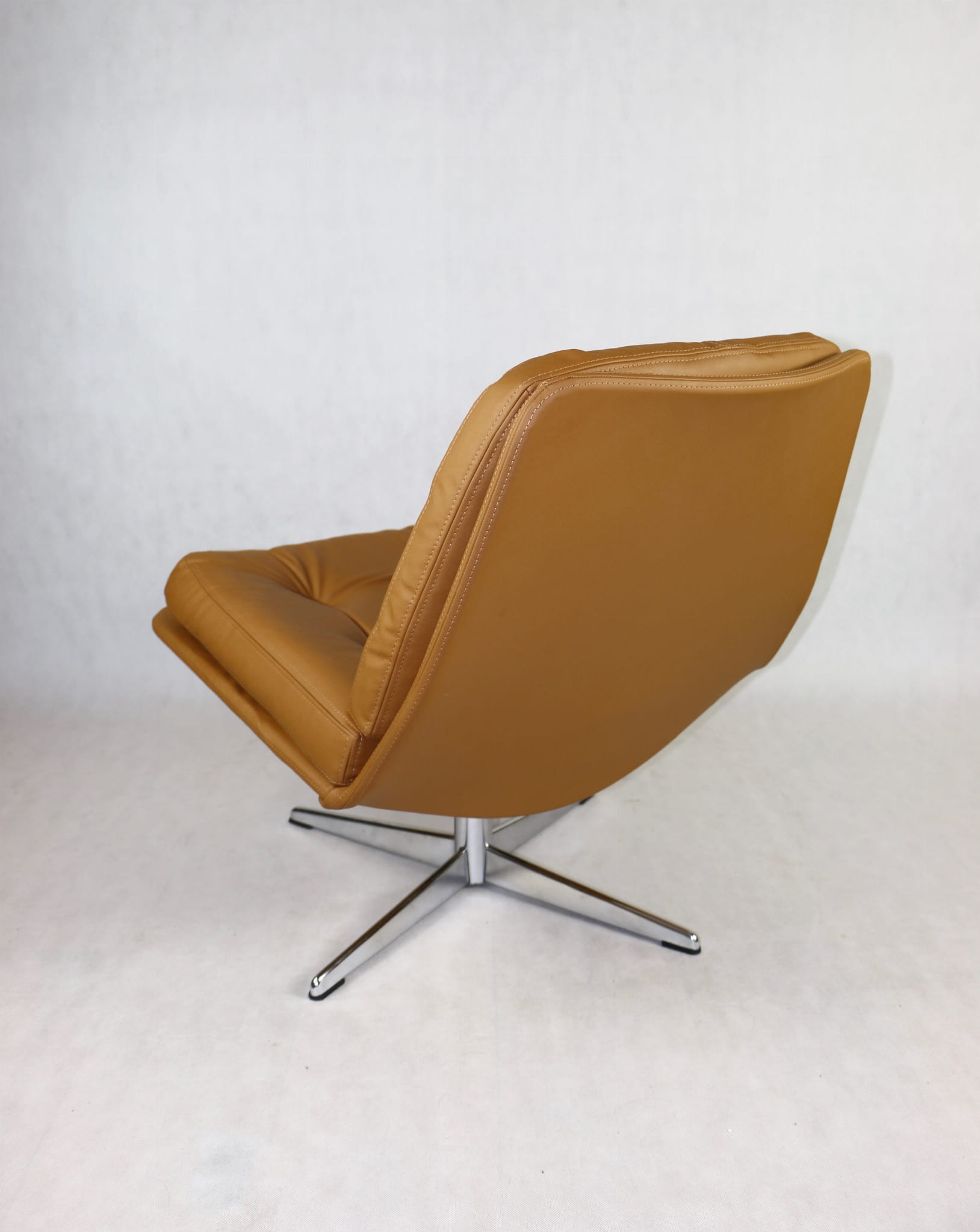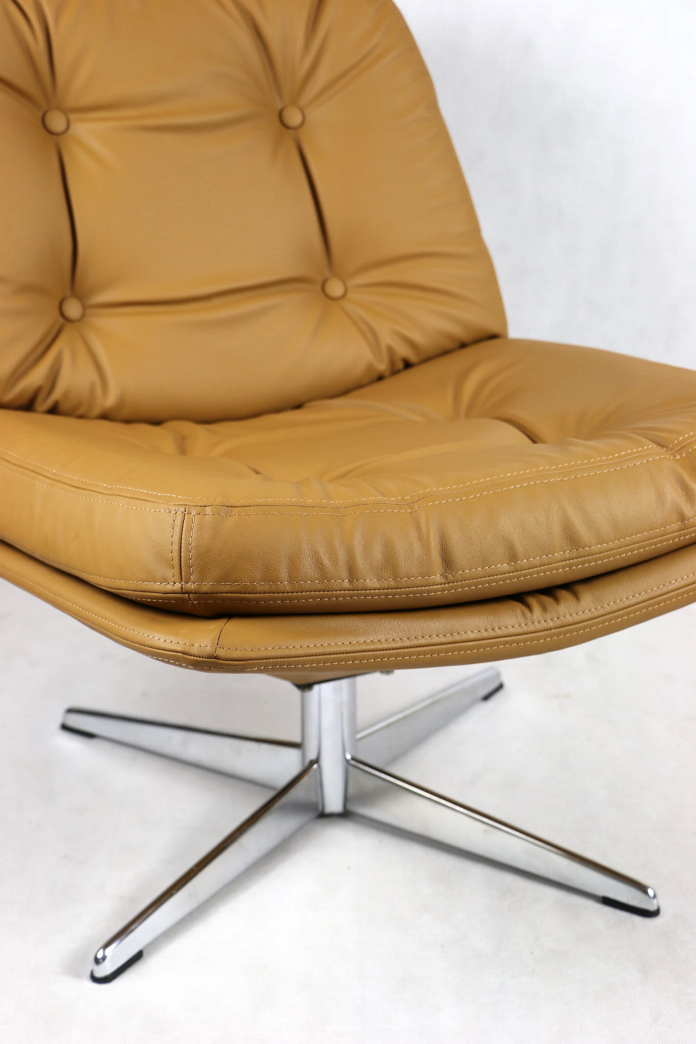 Fotel obrotowy z lat 70 - skóra w kolorze Camel/Cognac - beżowa