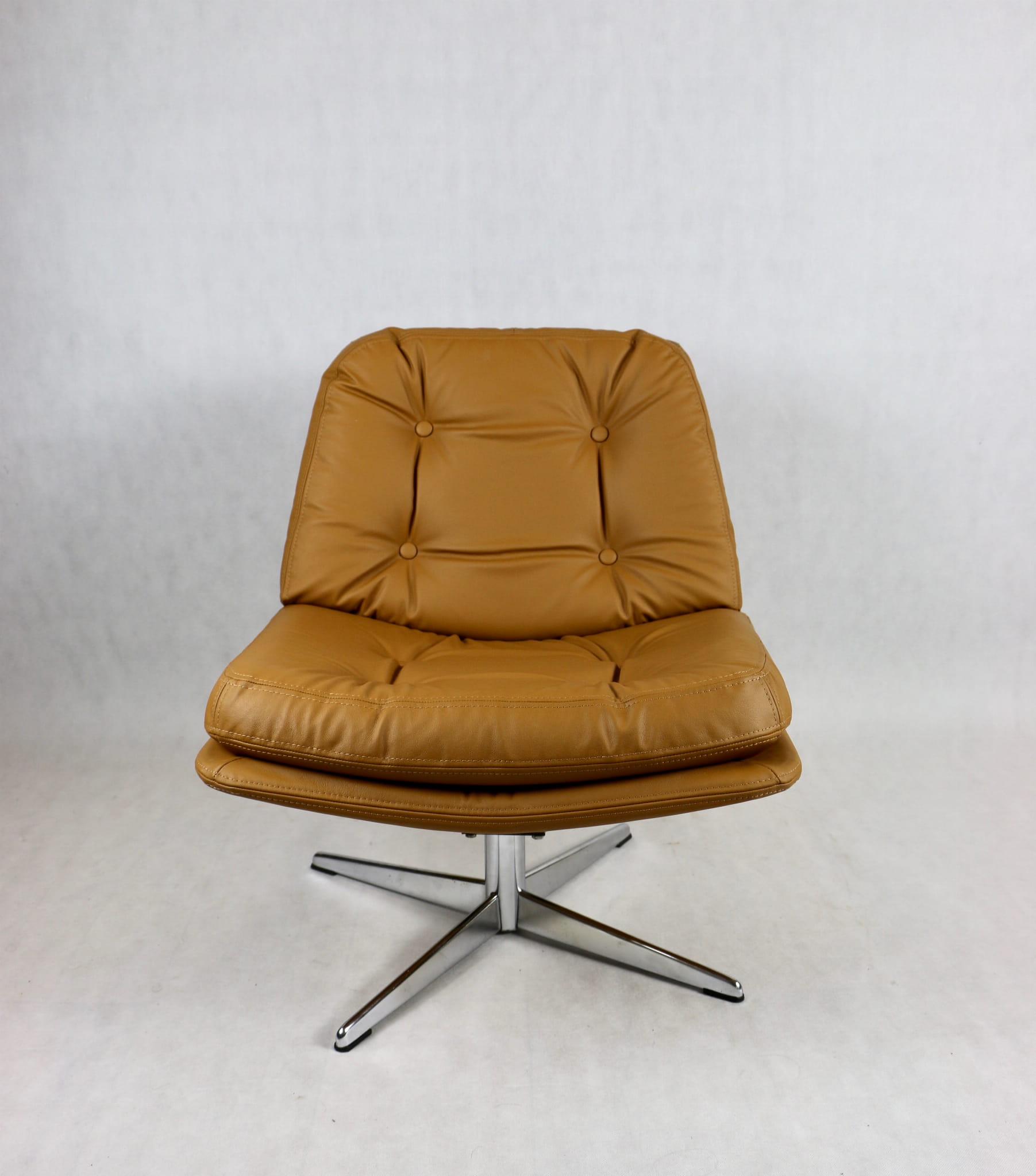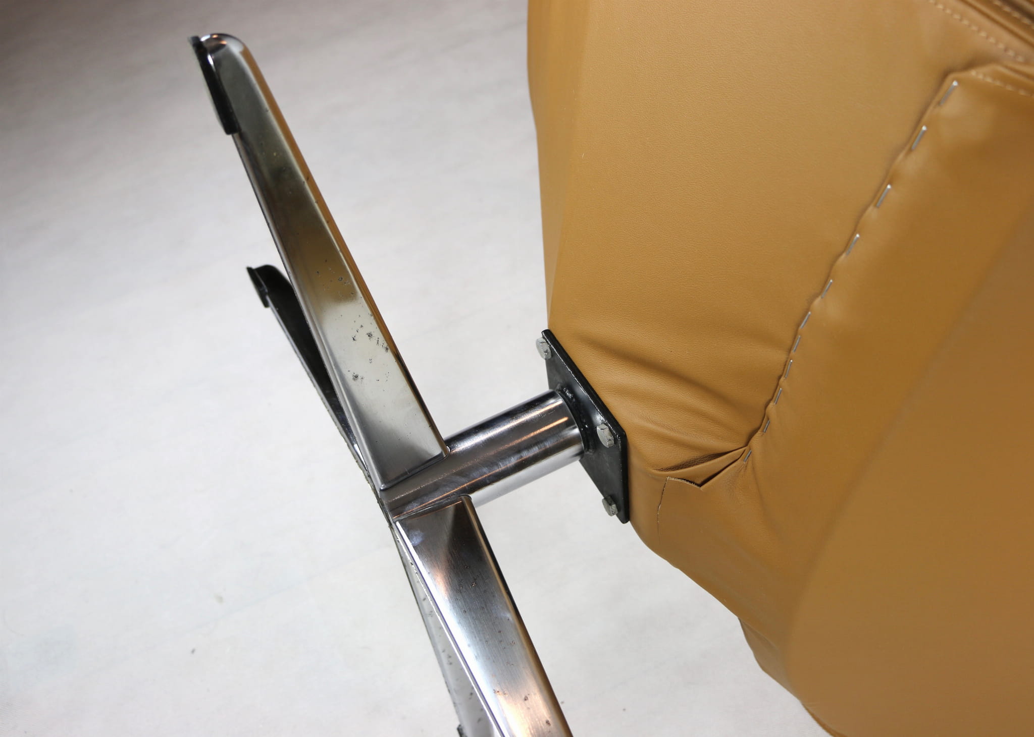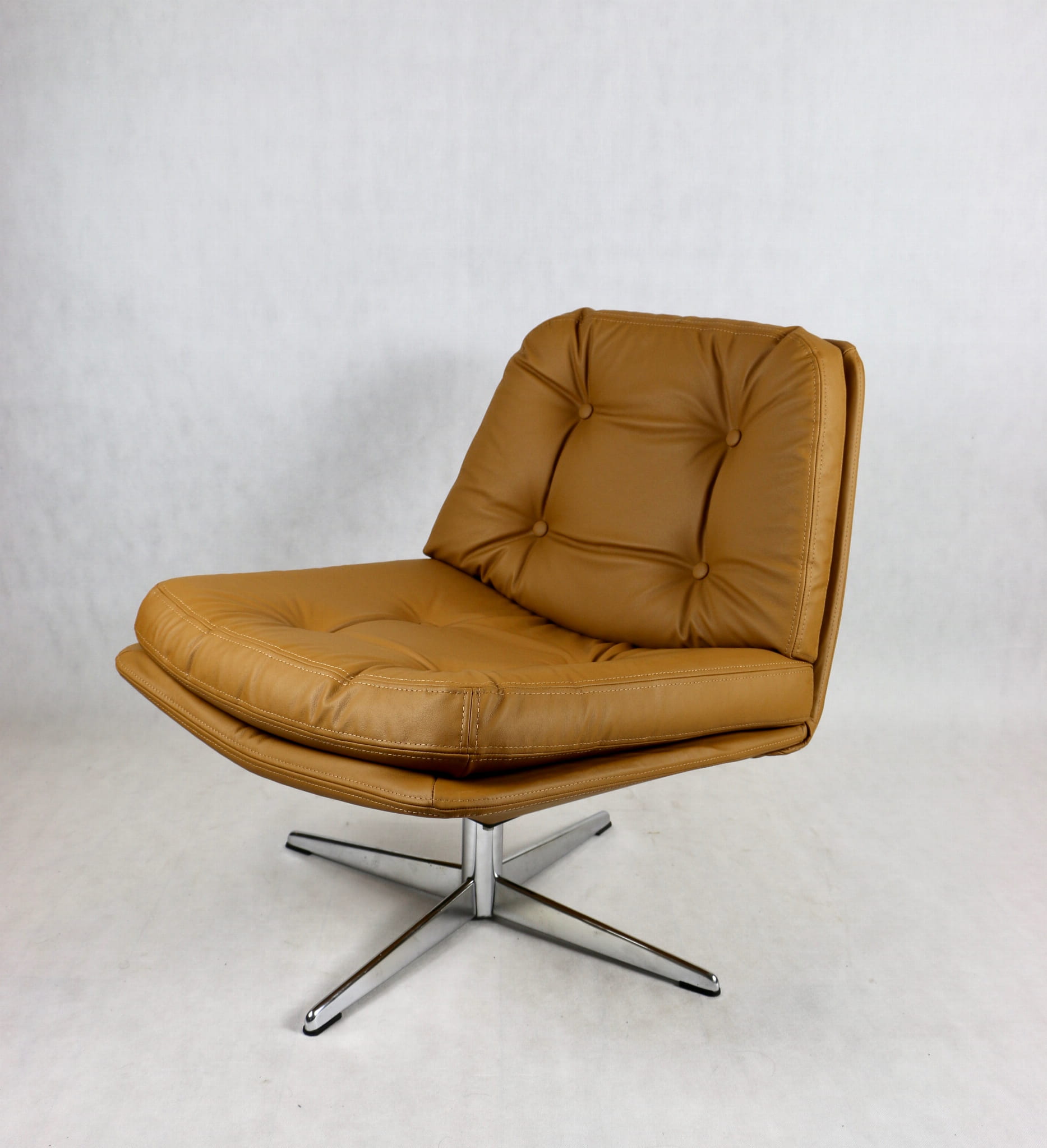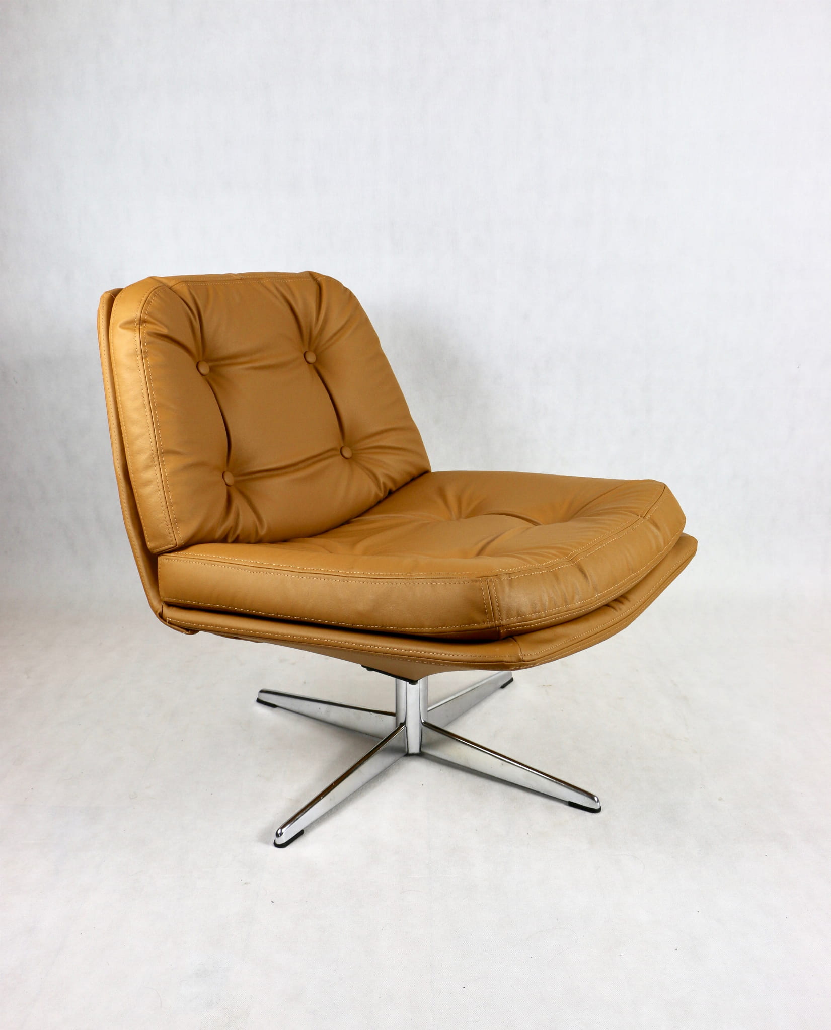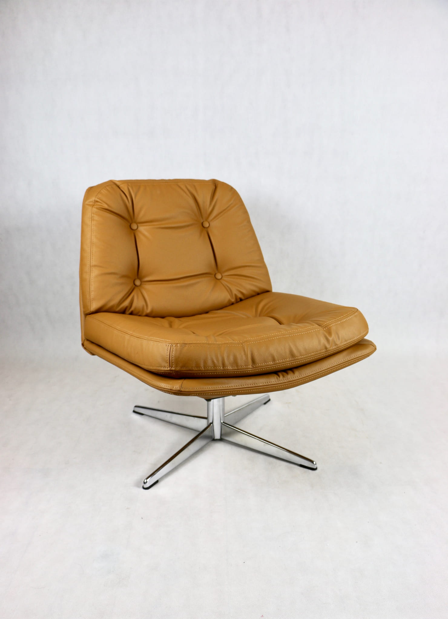 Fotel obrotowy z lat 70 - skóra w kolorze Camel/Cognac - beżowa