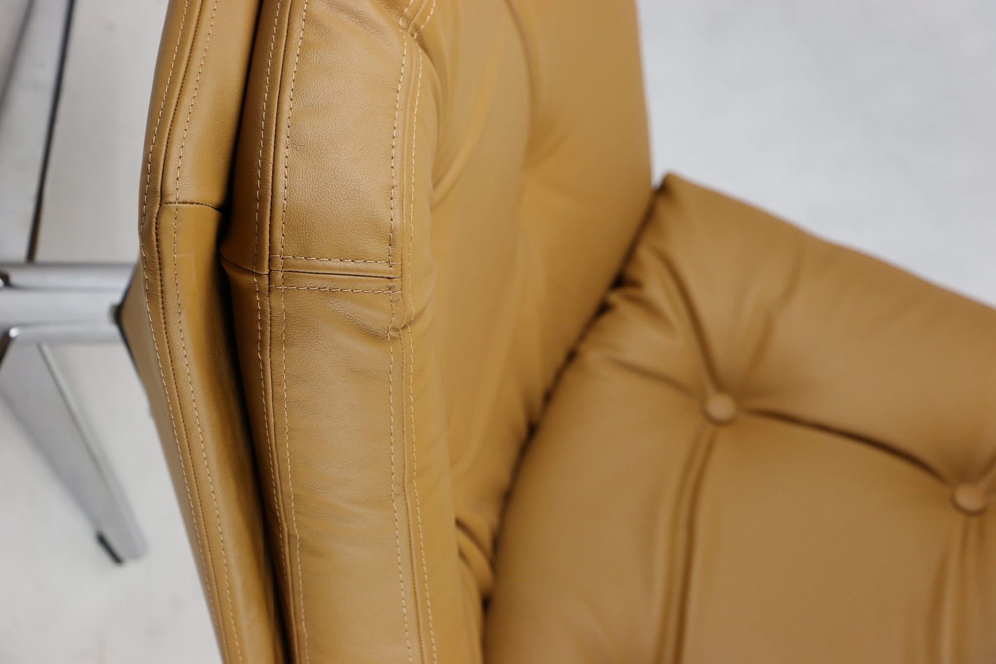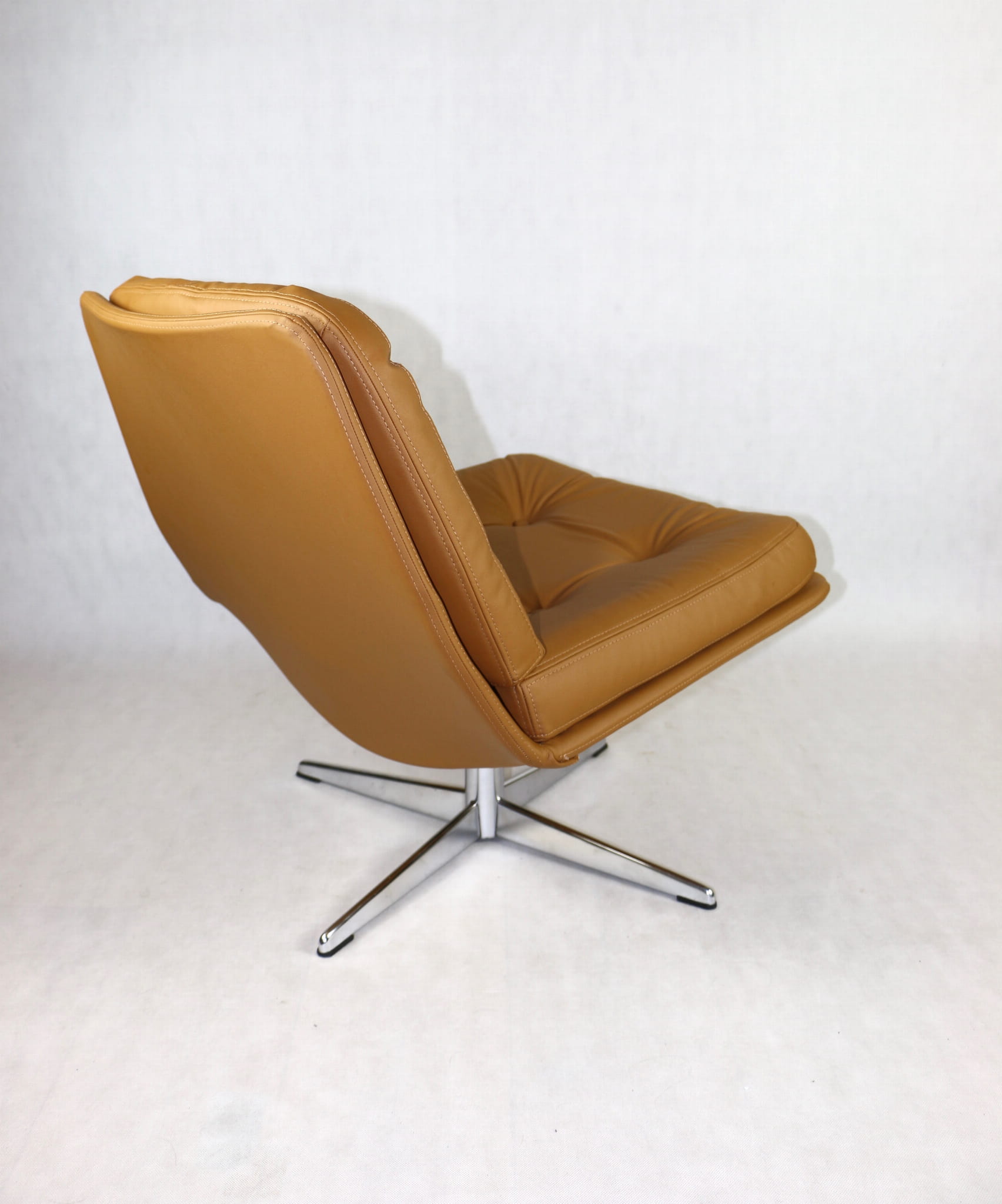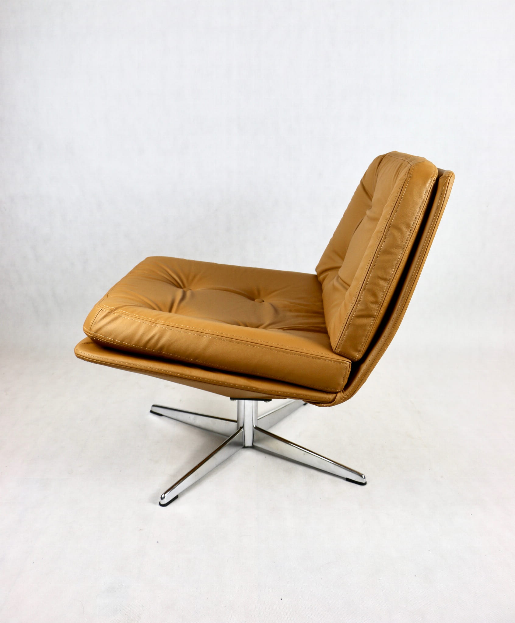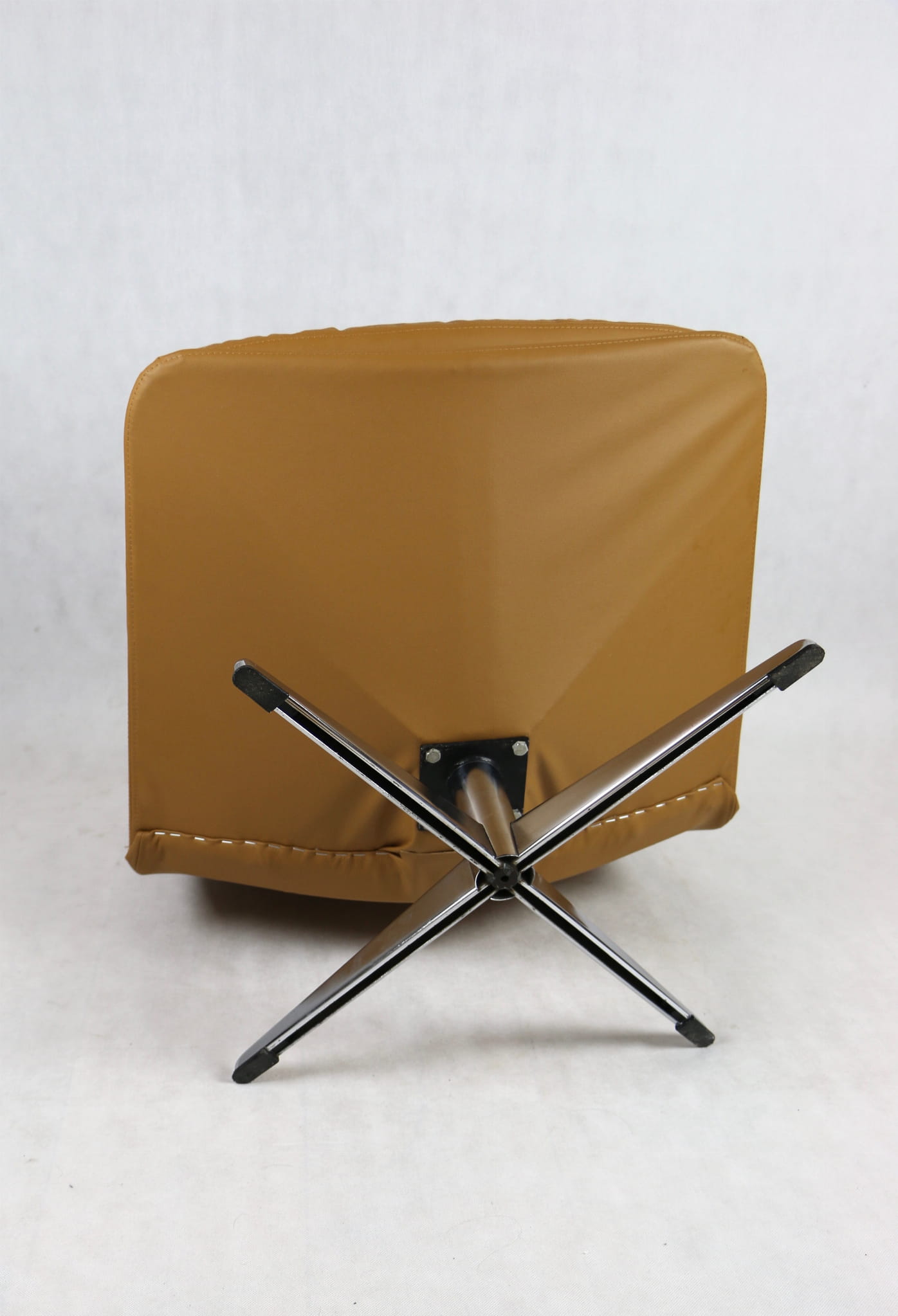 Fotel obrotowy z lat 70 - skóra w kolorze Camel/Cognac - beżowa