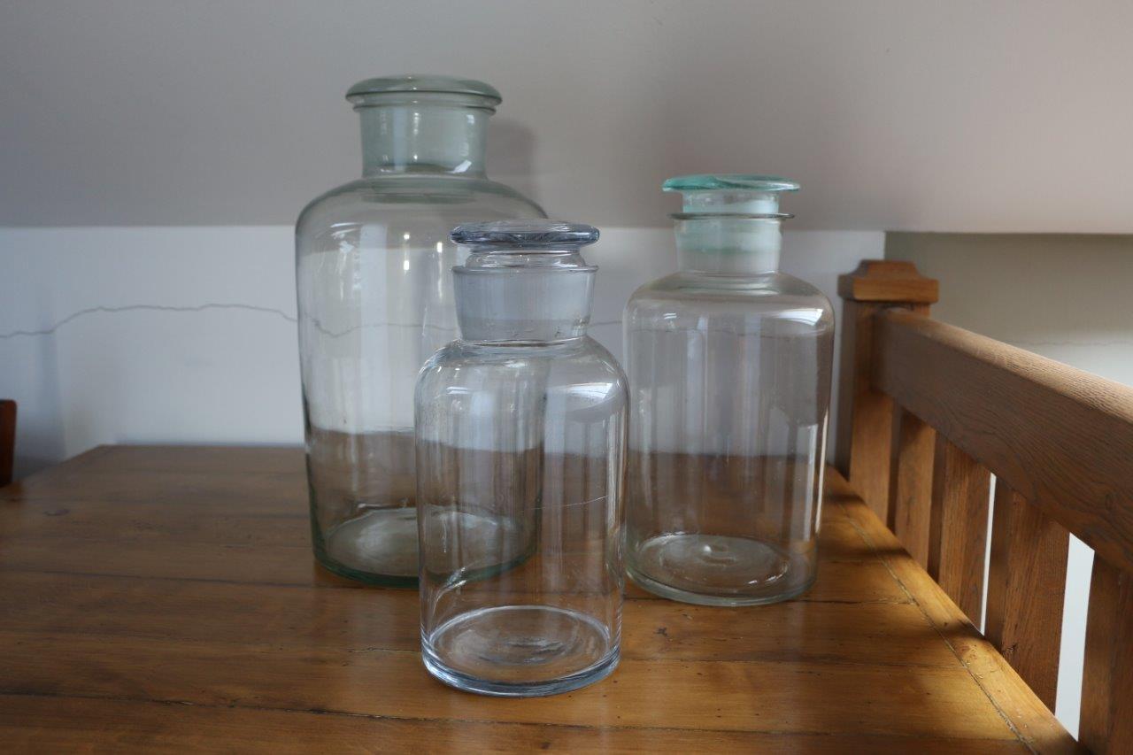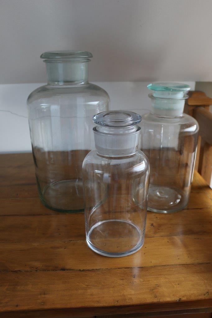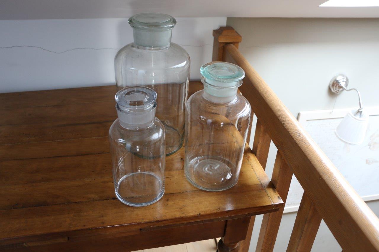 Komplet 3 słoików szklanych aptecznych różnej wielkości - vintage dekoracja