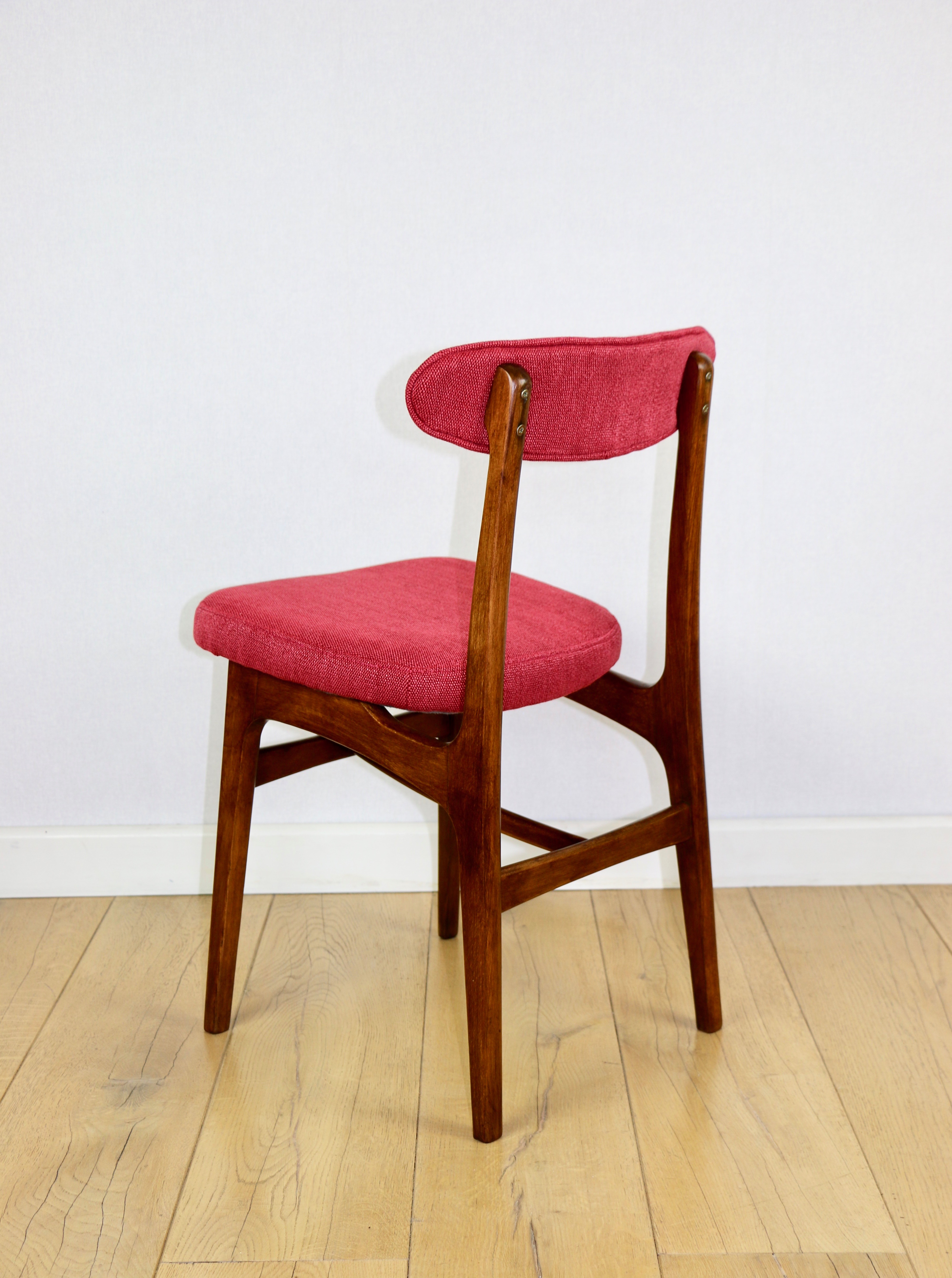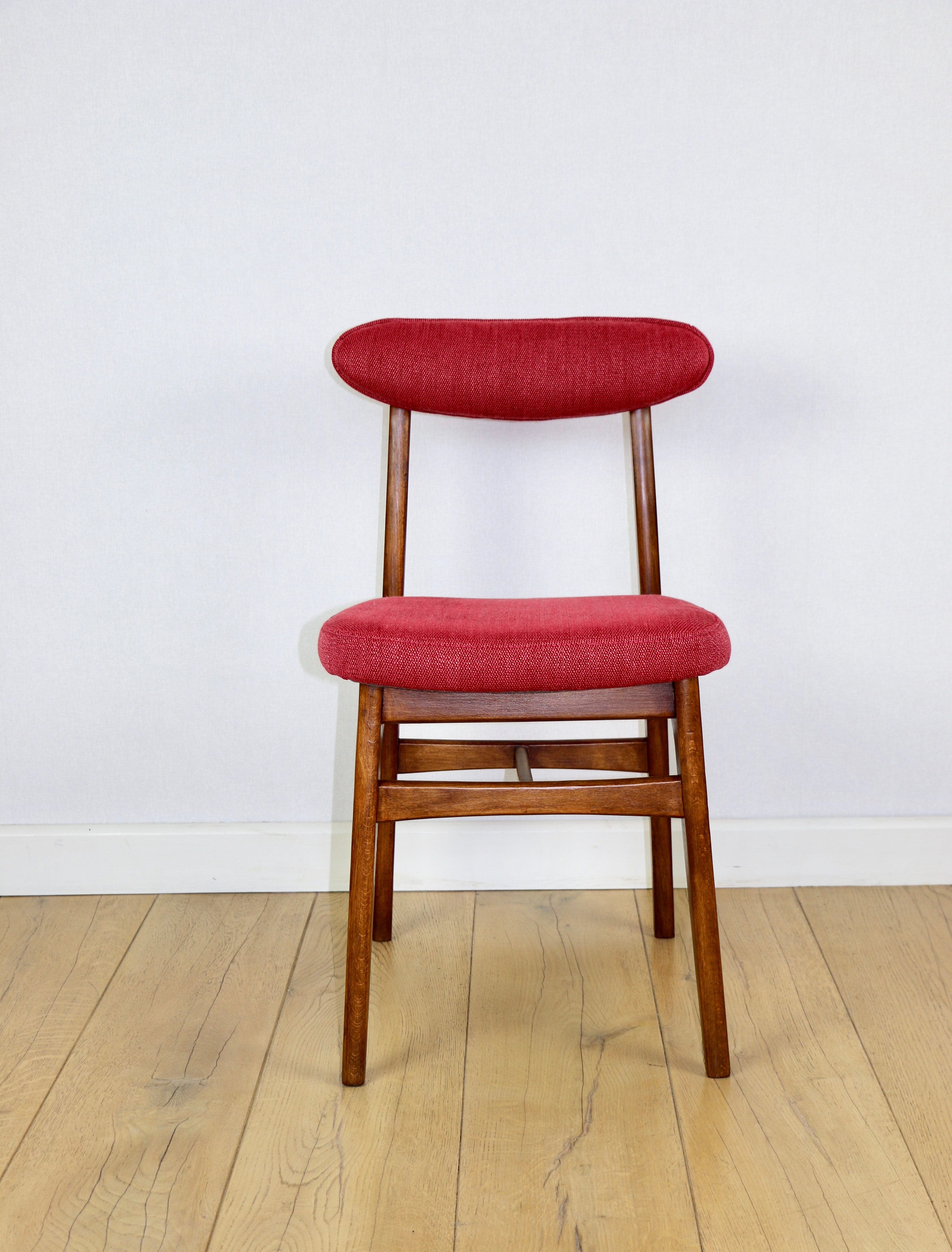 Krzesło Hałas Vintage tapicerowane w kolorze malinowym truskawkowym vintage