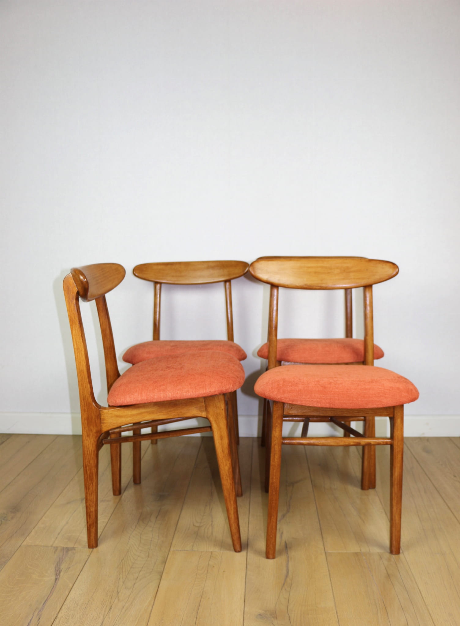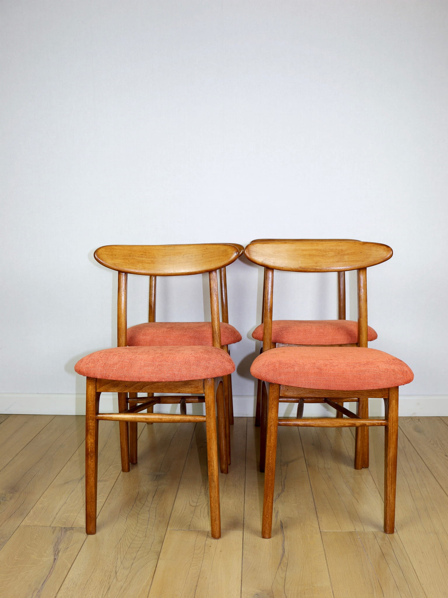 Komplet Krzeseł Vintage Designu Projektu R. Hałas z oparciem drewnianym - 4 sztuki