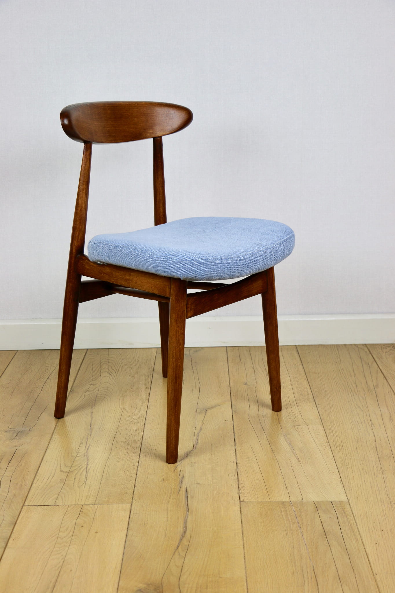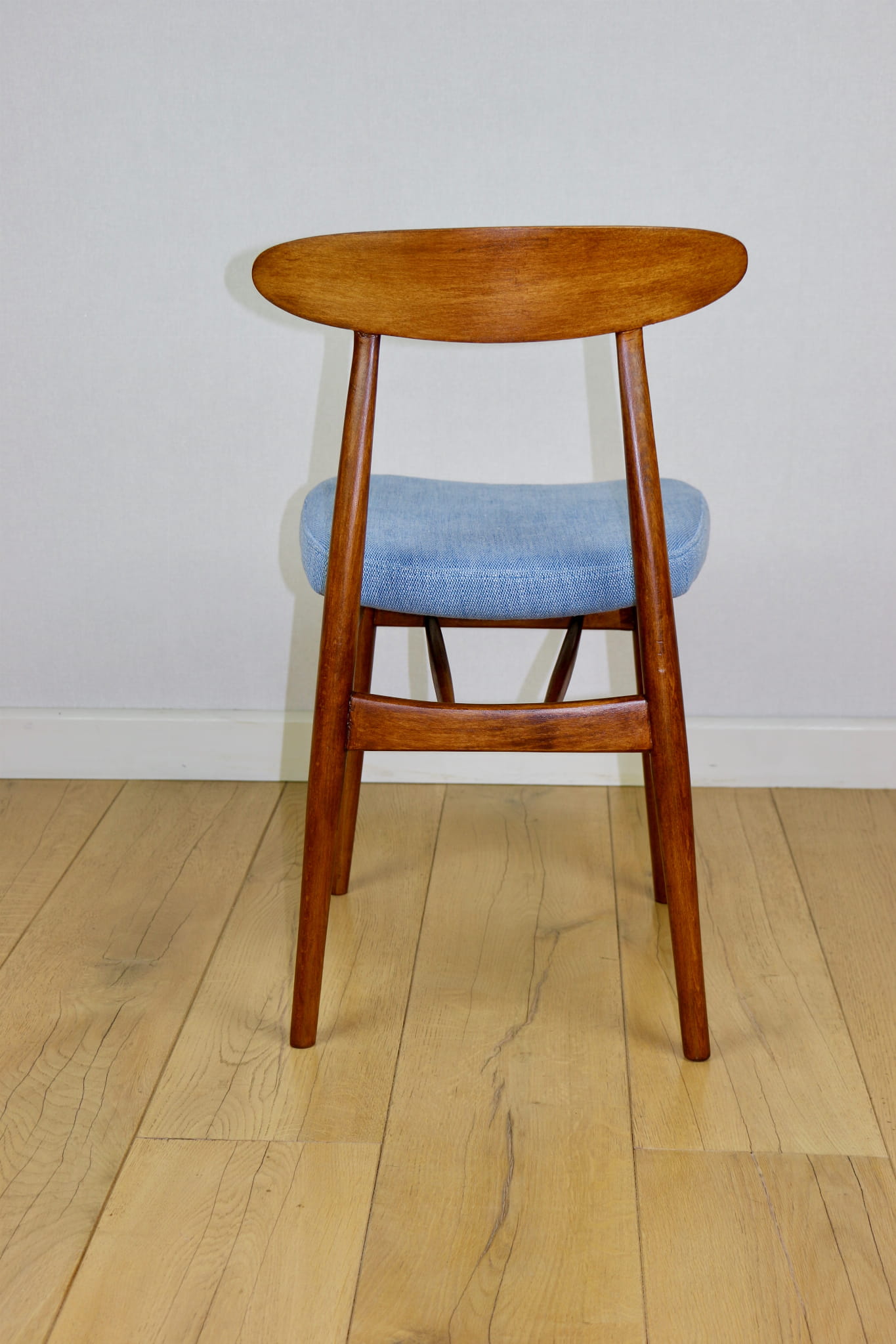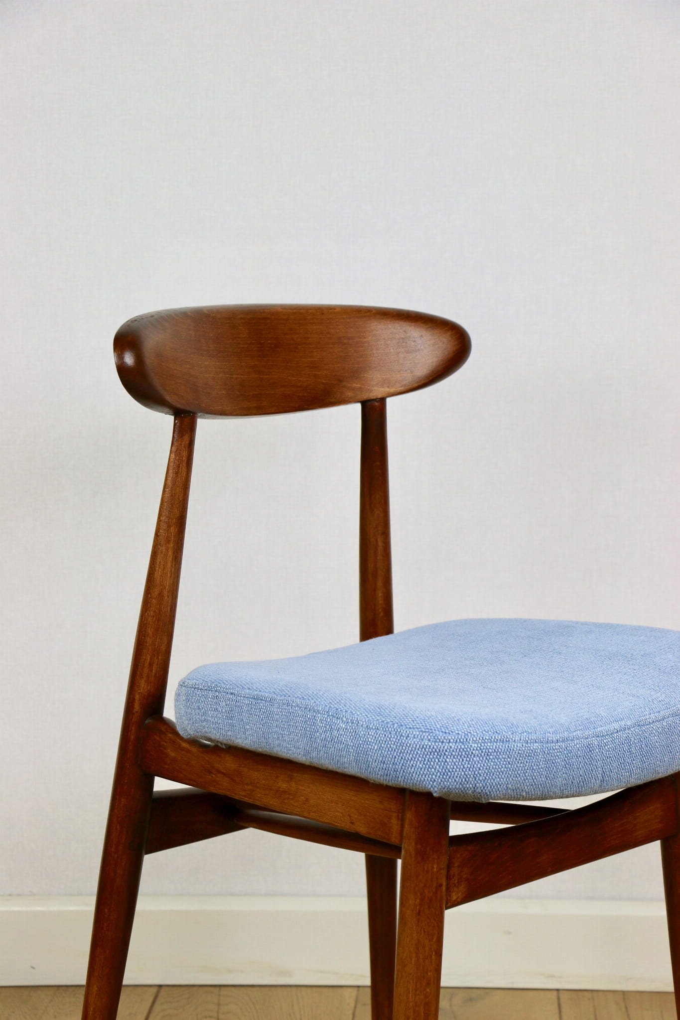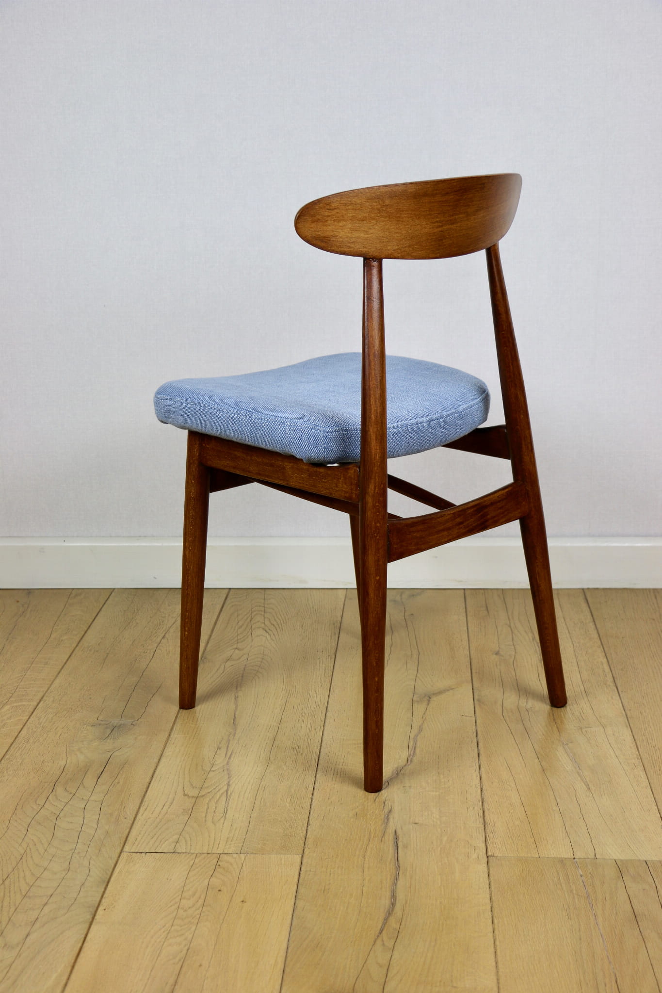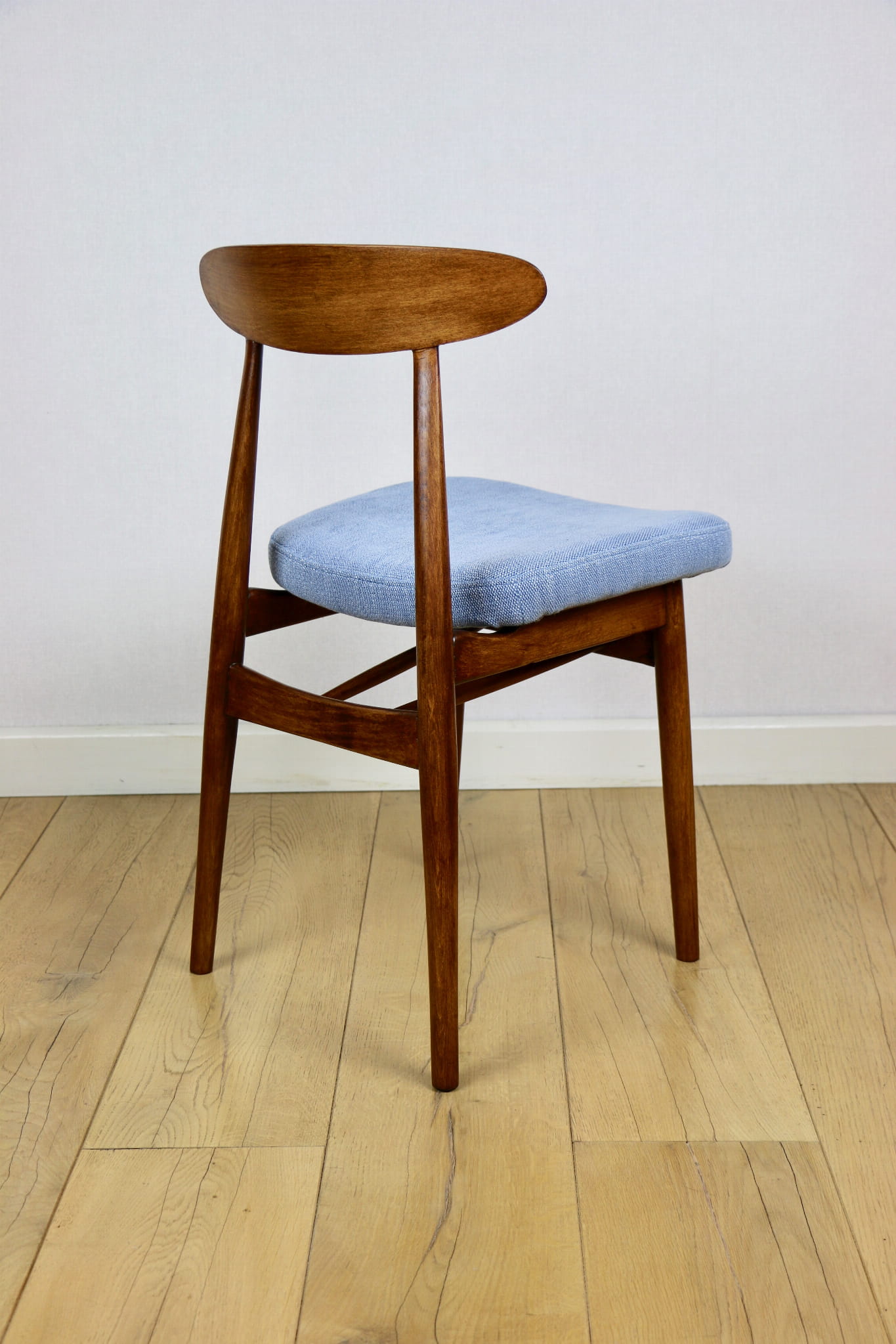 Krzesło duńskie Vintage niebieski błękit - oparcie drewniane