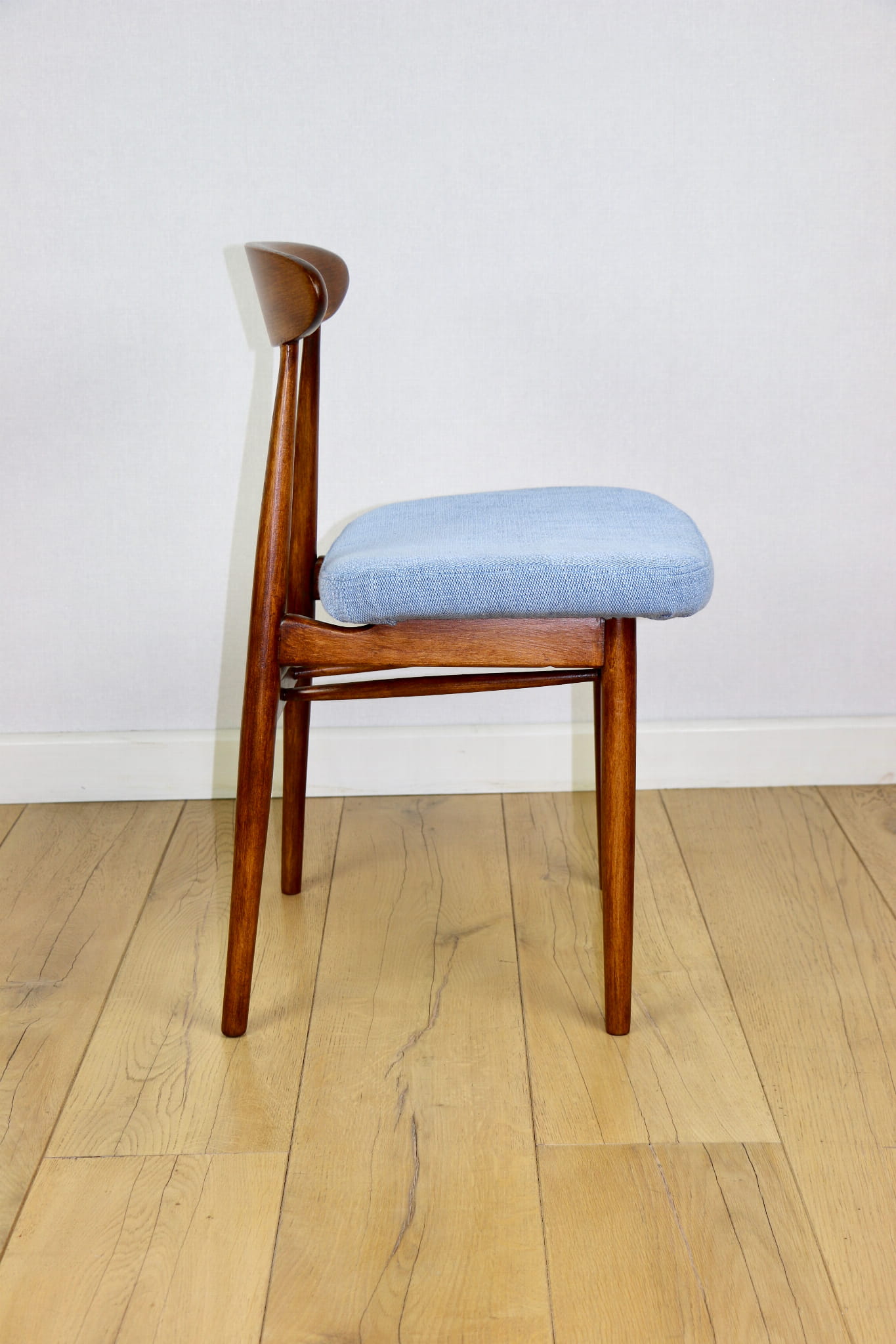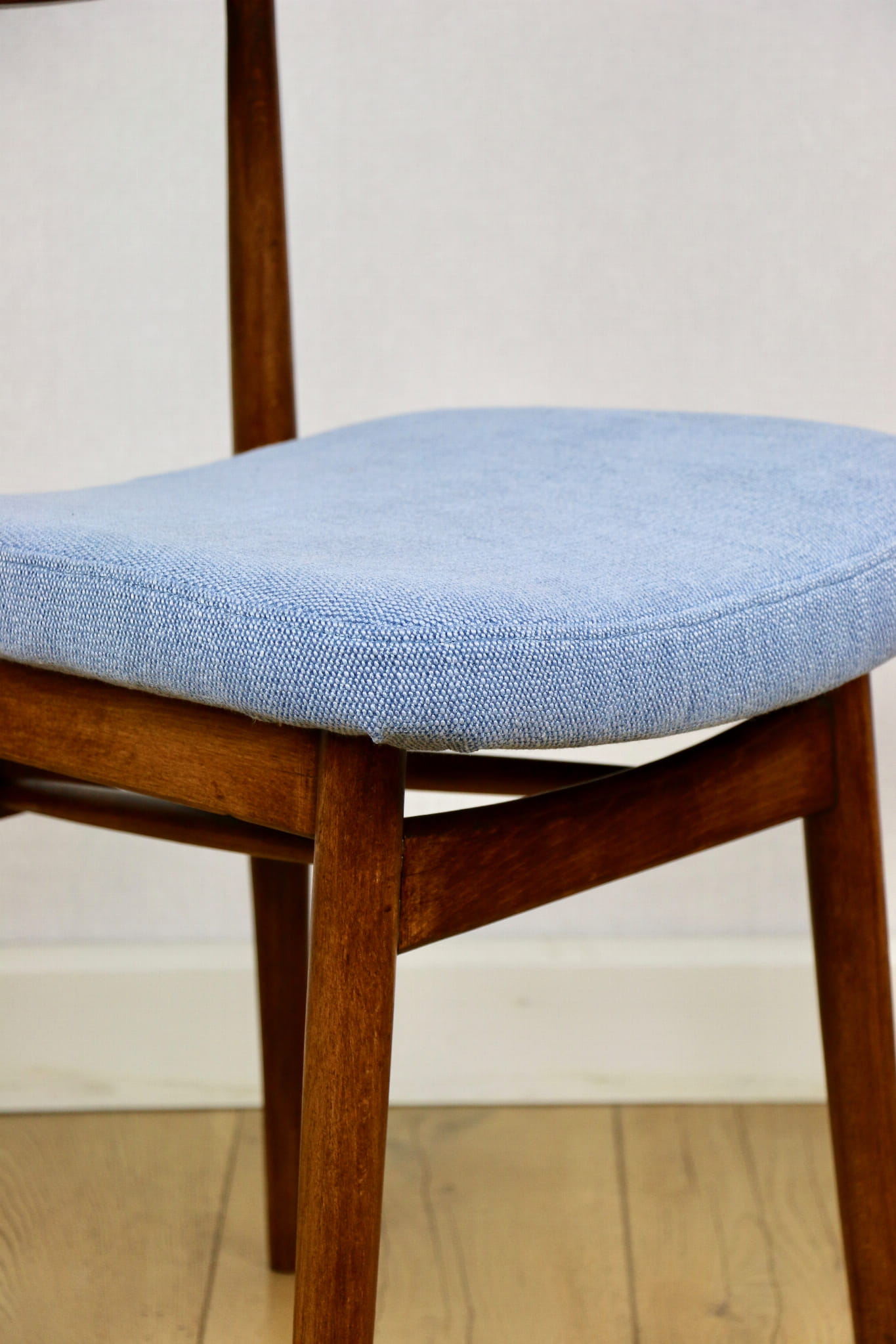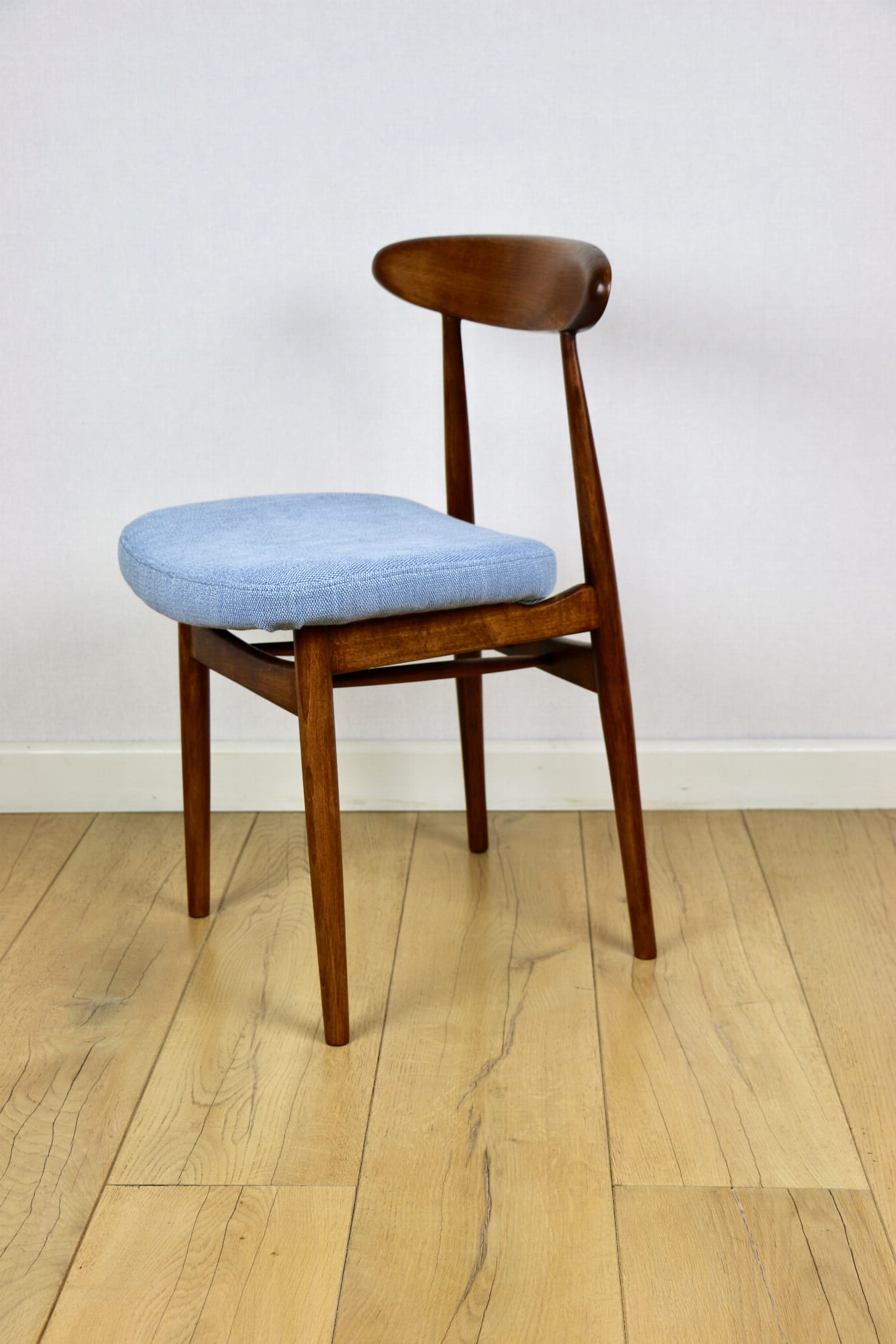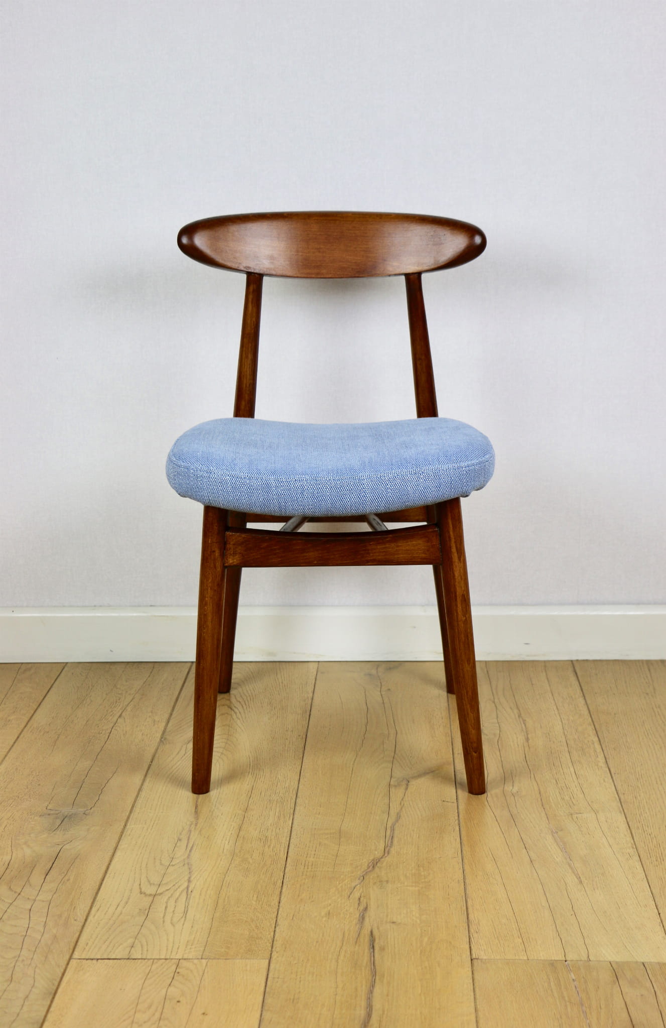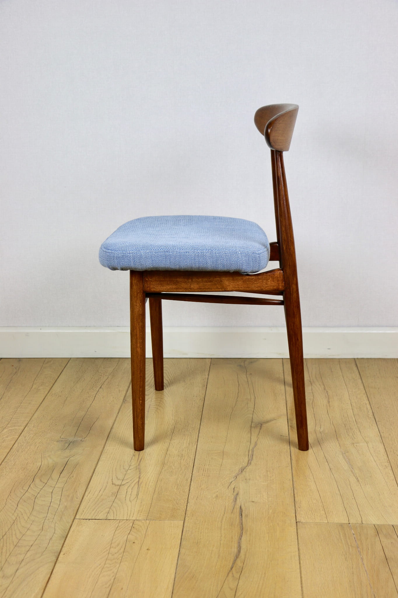 Krzesło duńskie Vintage niebieski błękit - oparcie drewniane