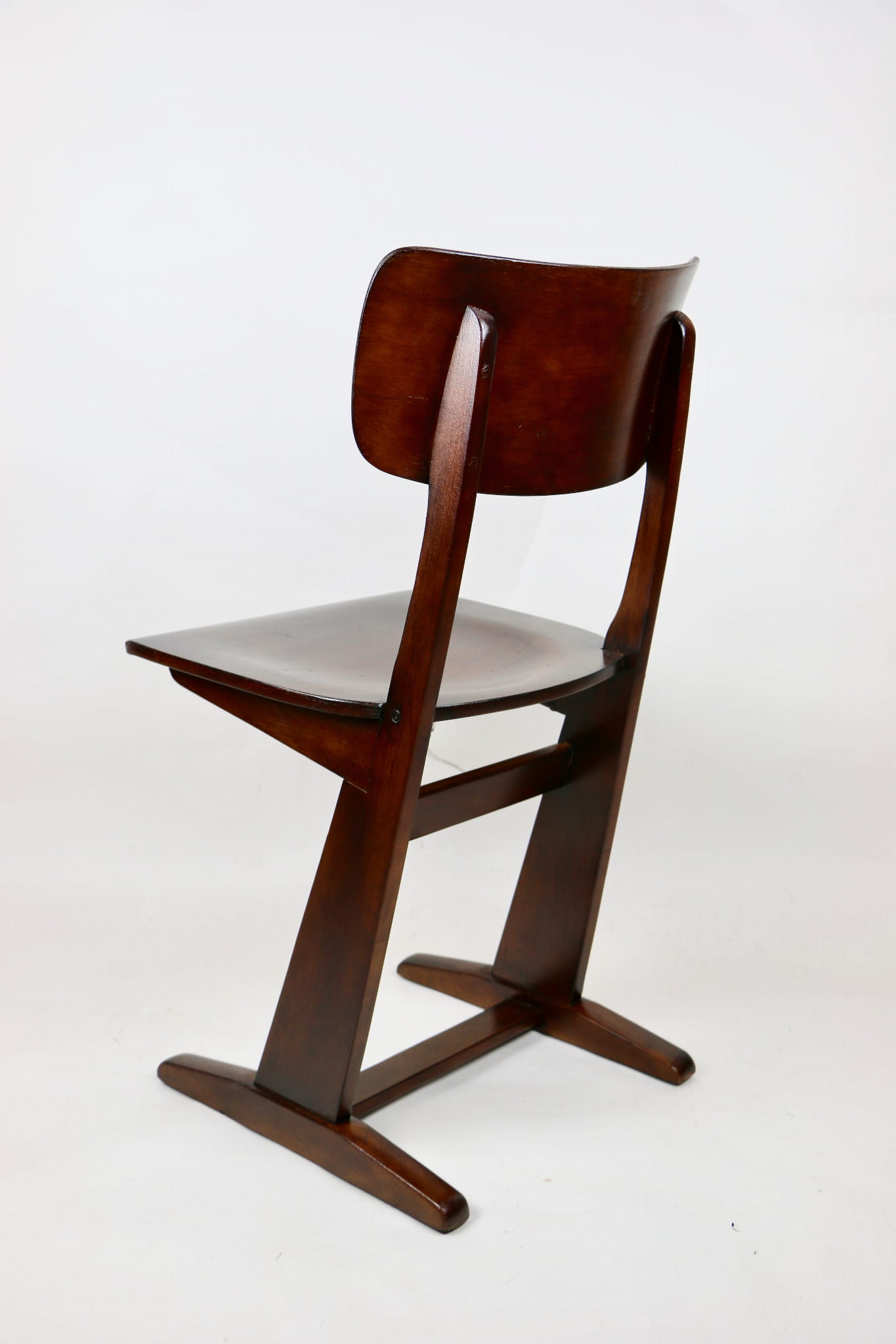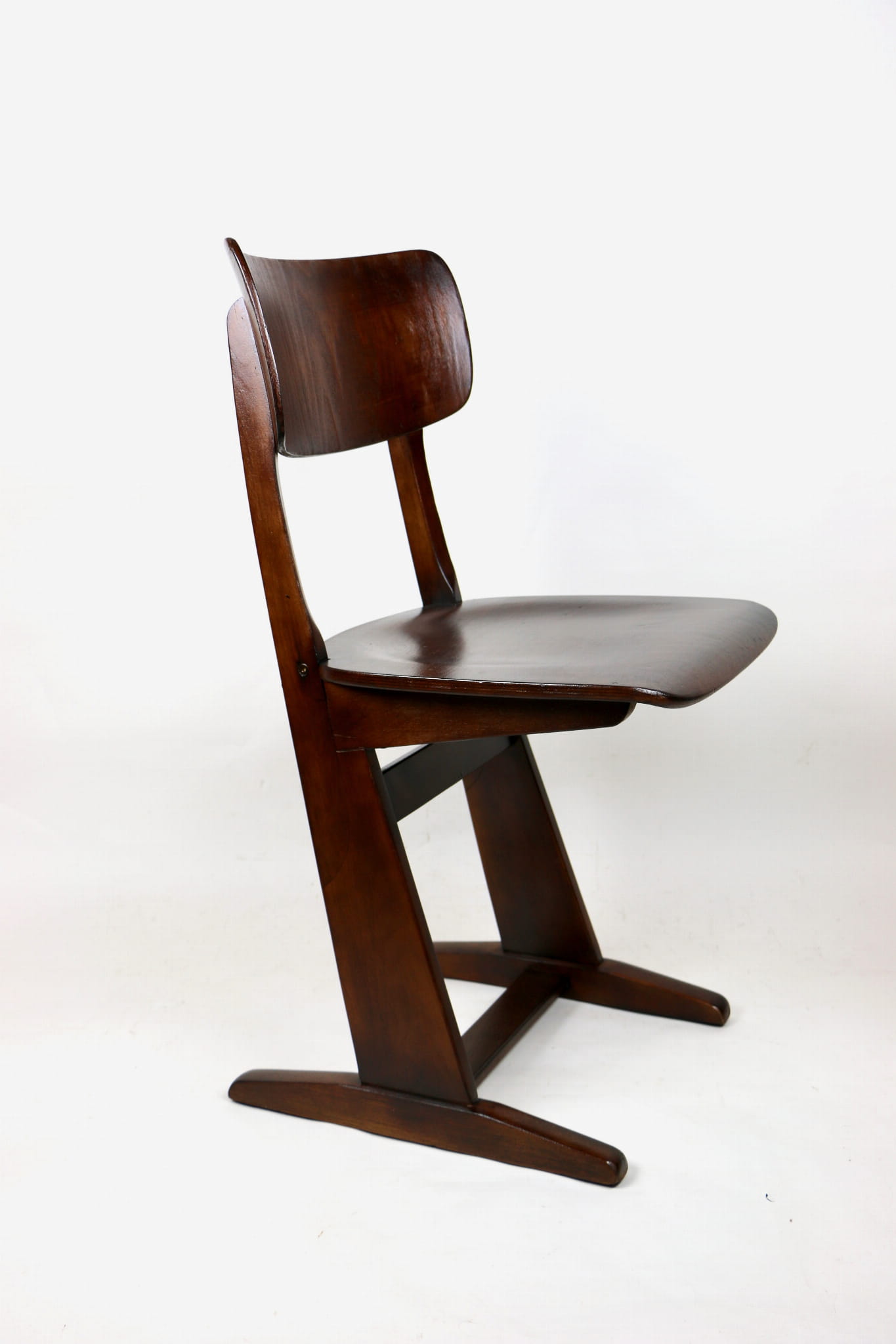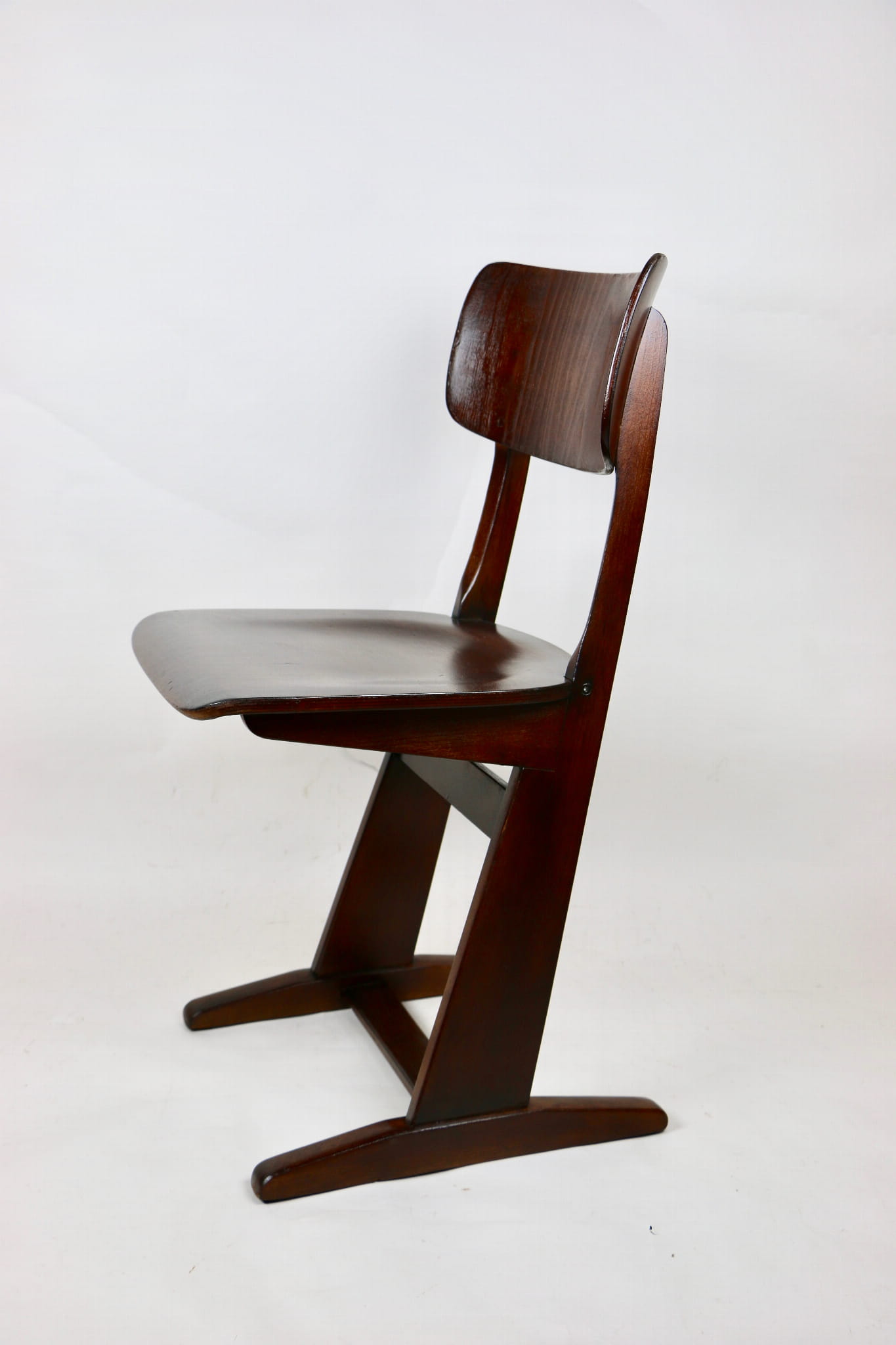 Krzesło gięte niemieckiej firmy Casala o niepowtarzalnym designie. Wykonane z drewna bukowego i sklejki, które zostało pomalowane lakierobejcą w kolorze ciemnego dębu.