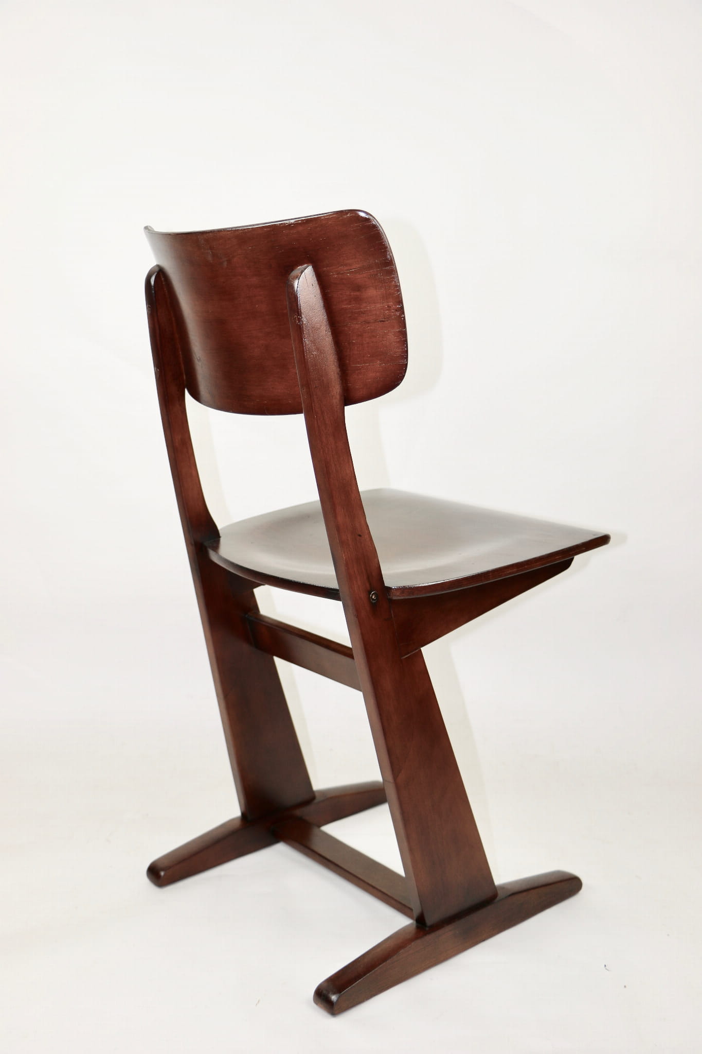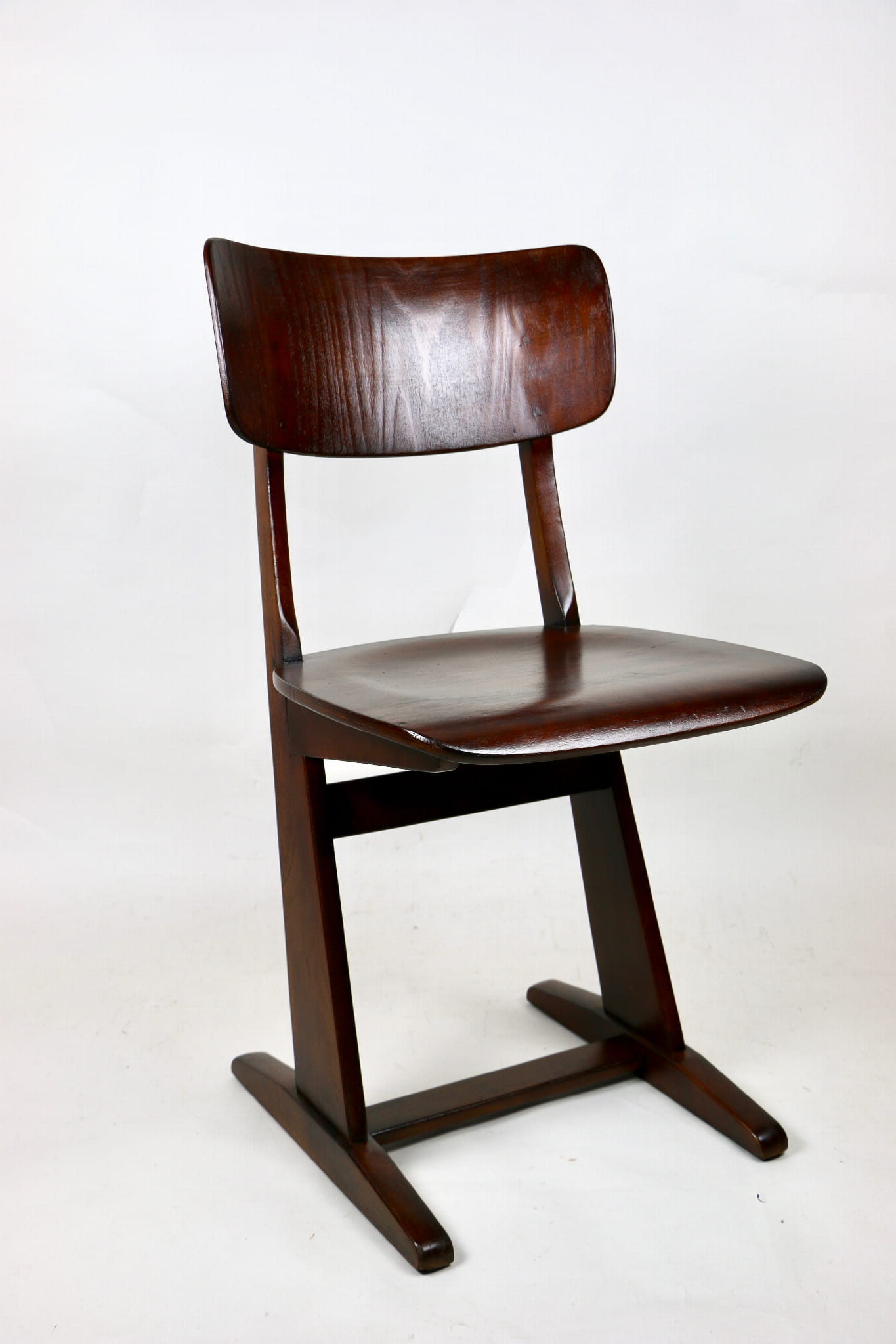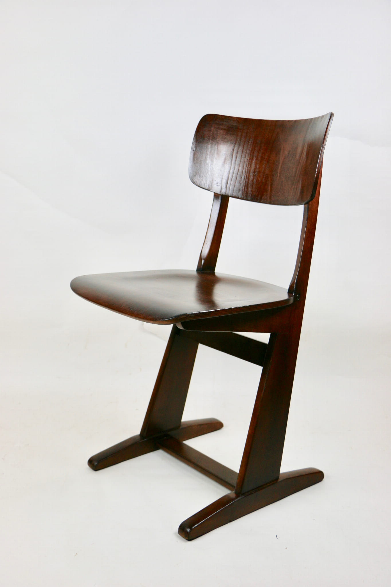 Krzesło gięte niemieckiej firmy Casala o niepowtarzalnym designie. Wykonane z drewna bukowego i sklejki, które zostało pomalowane lakierobejcą w kolorze ciemnego dębu.